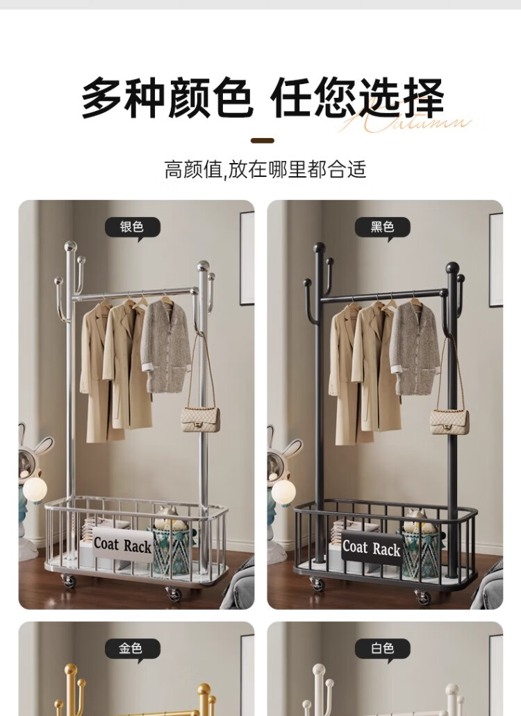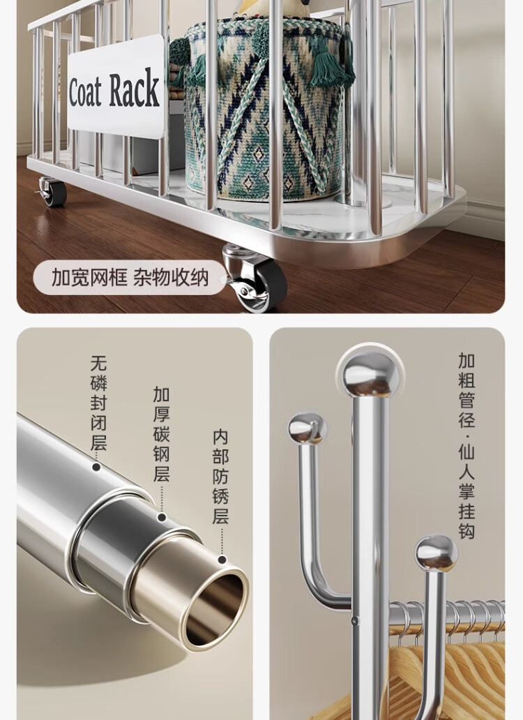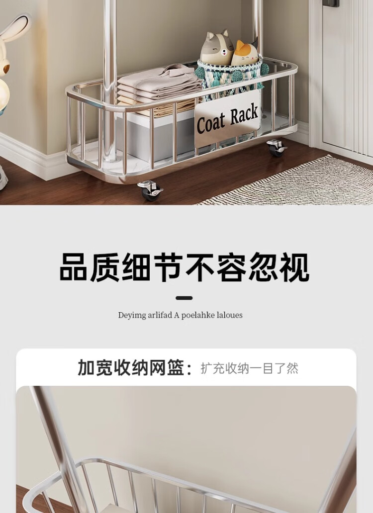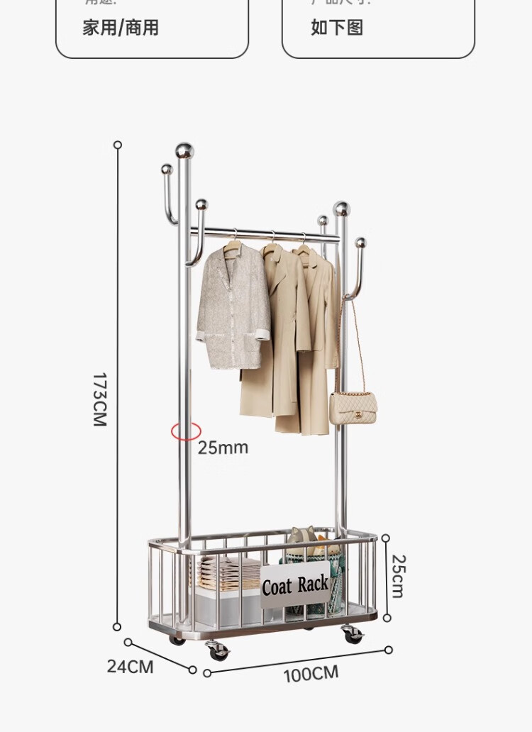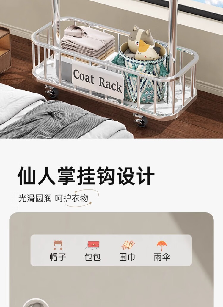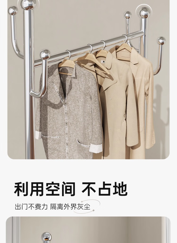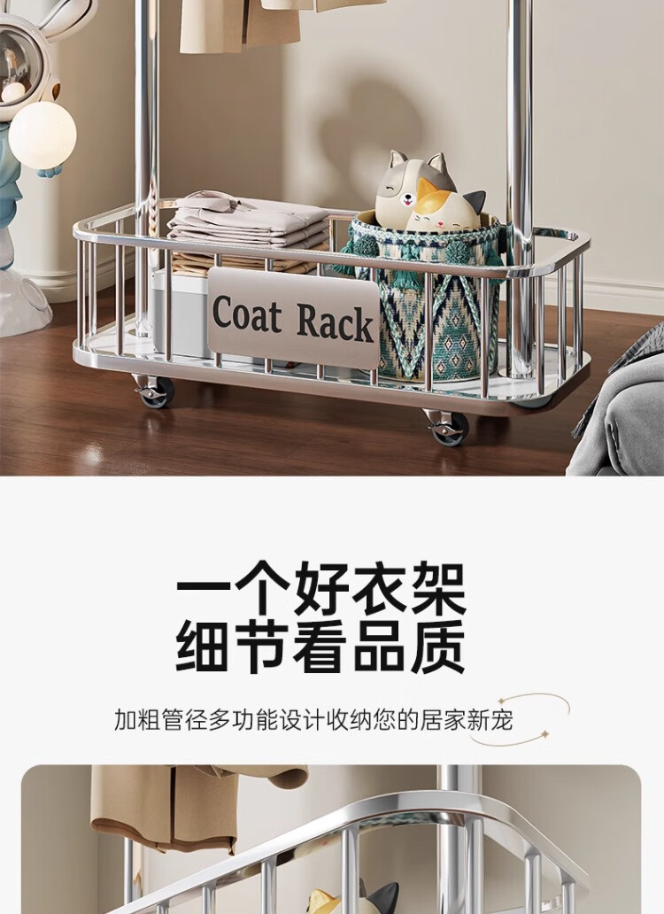 衣炫衣架落地立式衣帽架双杆晾衣架挂衣架家用卧室专用室内挂衣神器 水晶银60cm【加深网框】