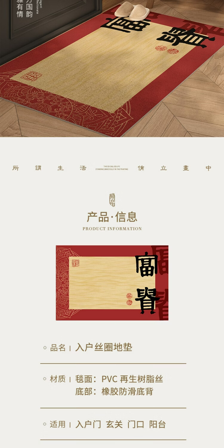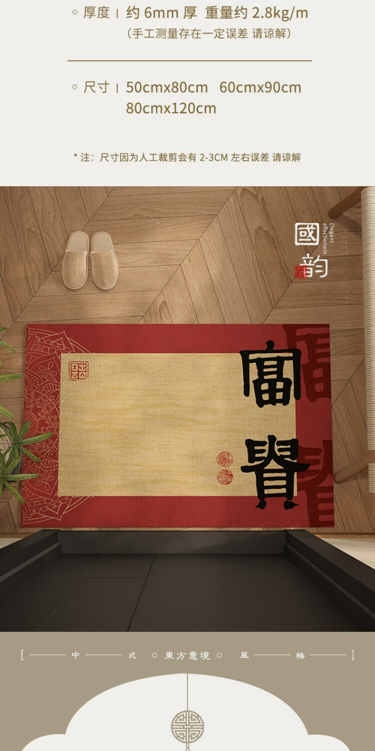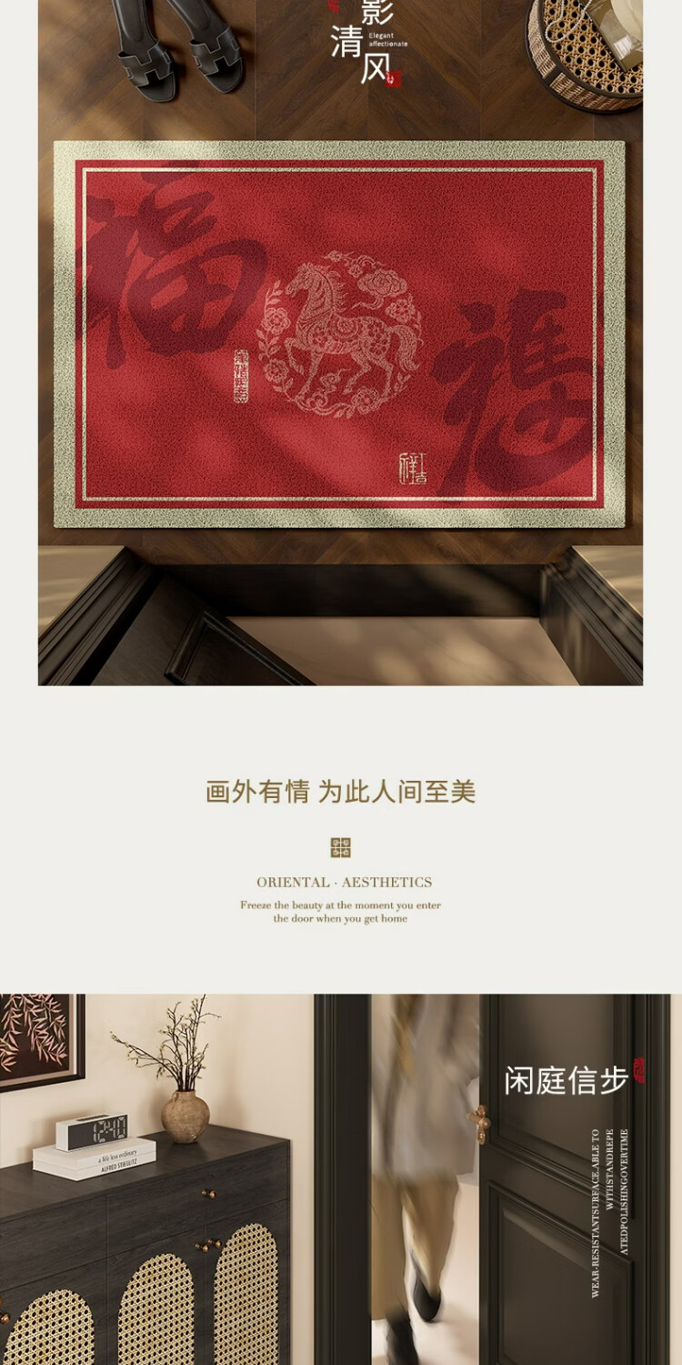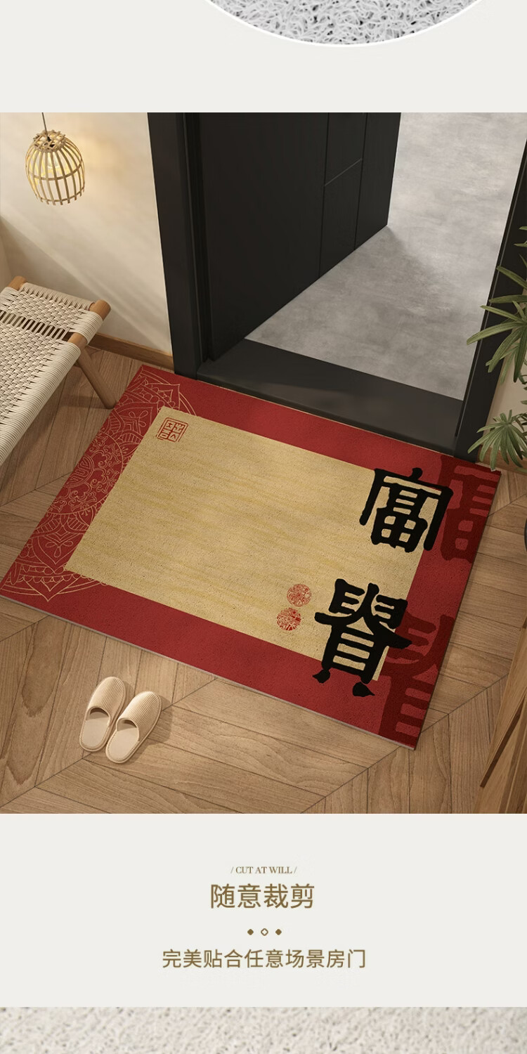 京华马年入户门地垫新中式丝圈喜庆可裁剪防滑免洗红色家用进门口脚垫 闲庭信步80客户的选择 50cm*80cm 蹭土除尘
