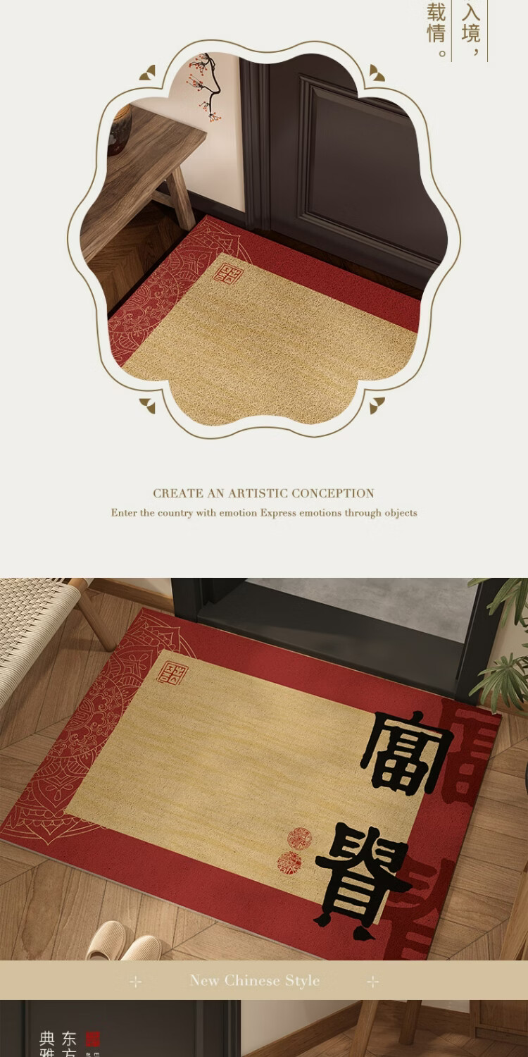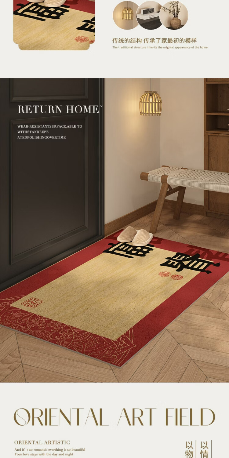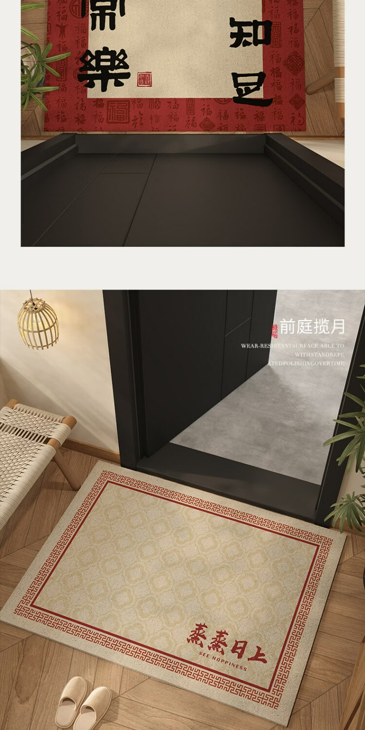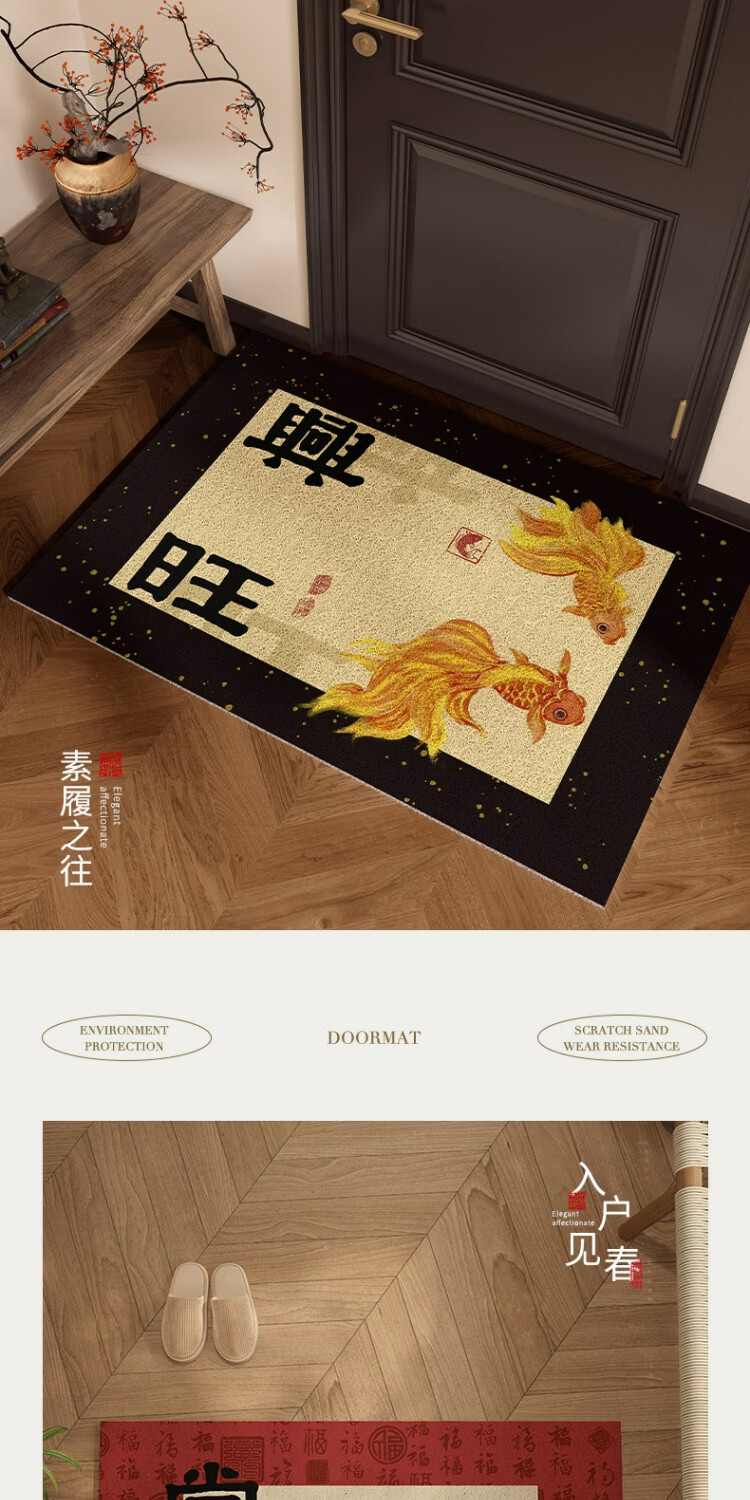 京华马年入户门地垫新中式丝圈喜庆可裁剪防滑免洗红色家用进门口脚垫 闲庭信步80客户的选择 50cm*80cm 蹭土除尘