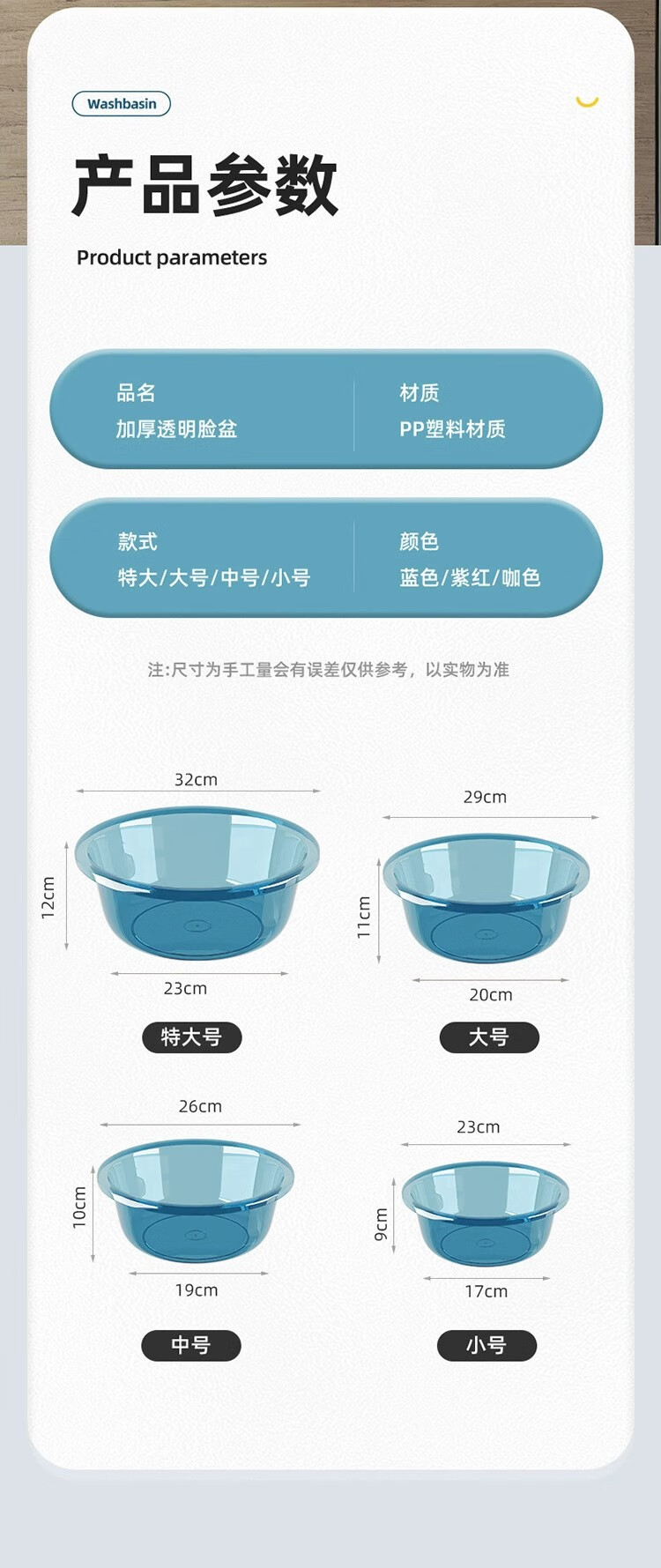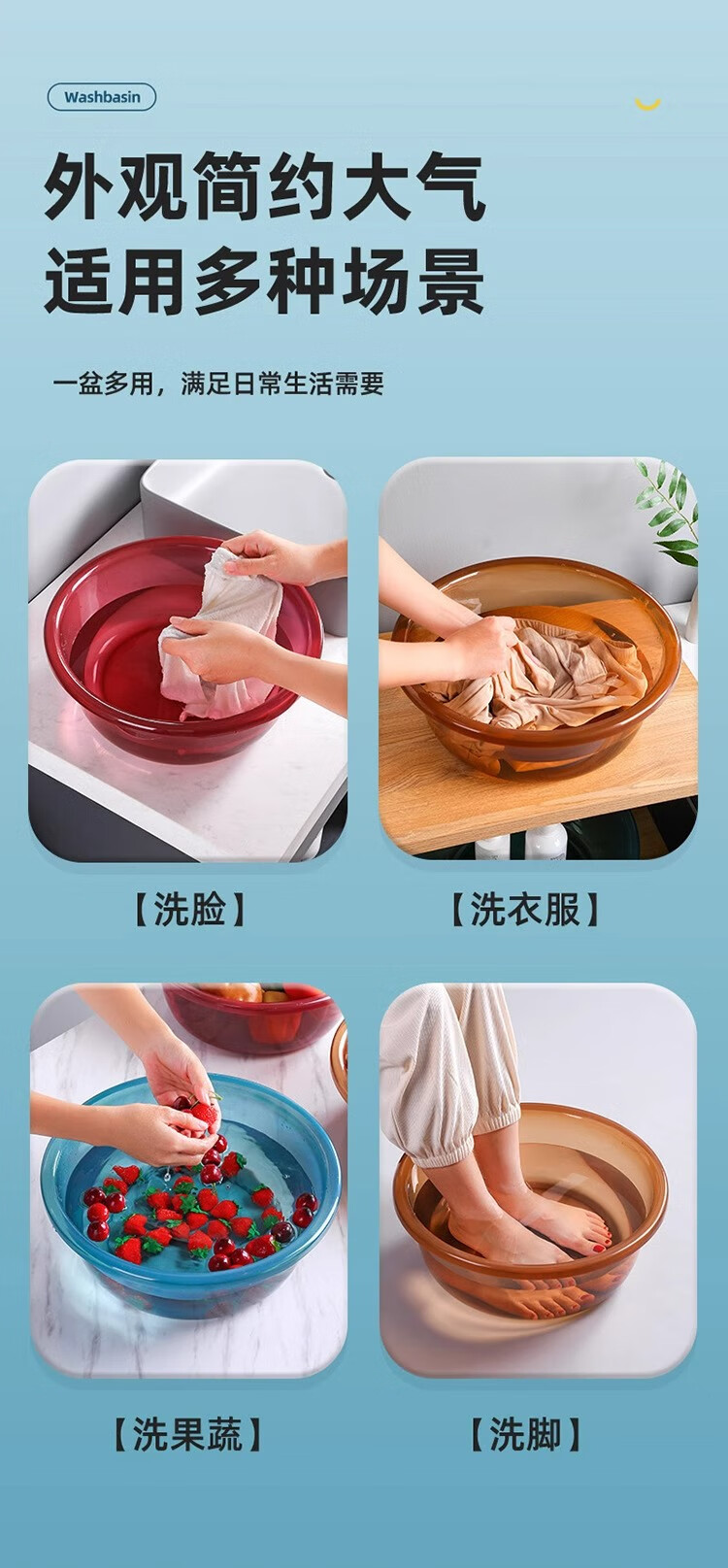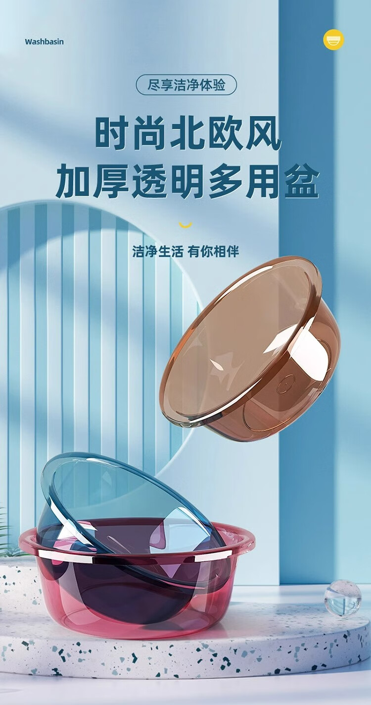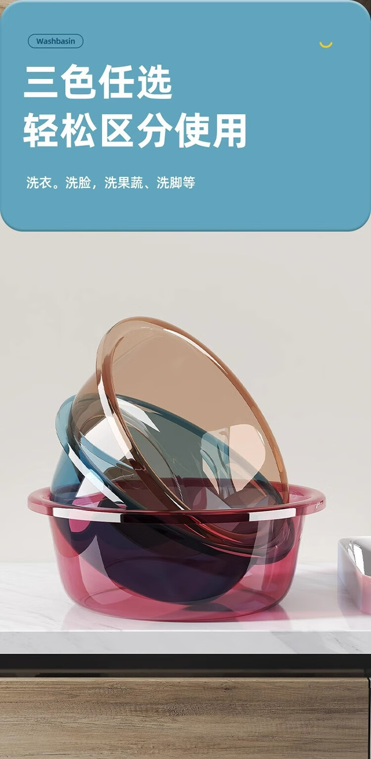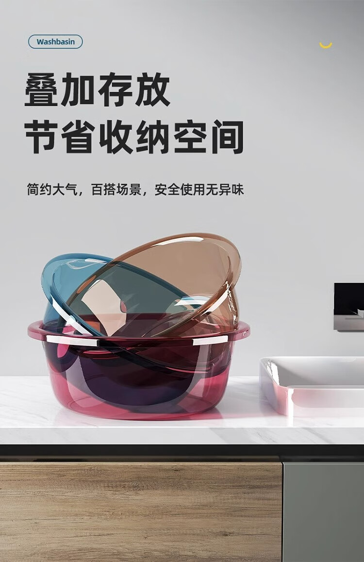 加大加厚洗脸盆家用大号洗菜盆洗衣盆浴室专用内裤收纳盆子 咖色 中号摔不烂【直径26cm】