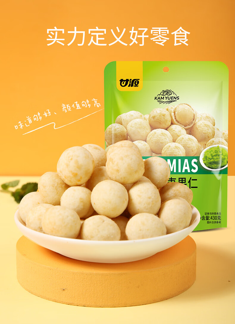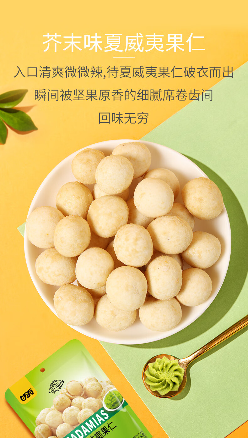 甘源牌芥末味夏威夷果仁430g每日坚果炒货休闲零食风味干果小吃年货送礼