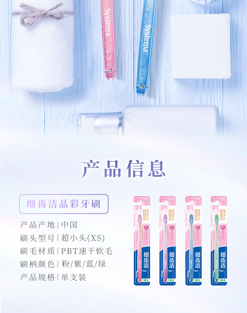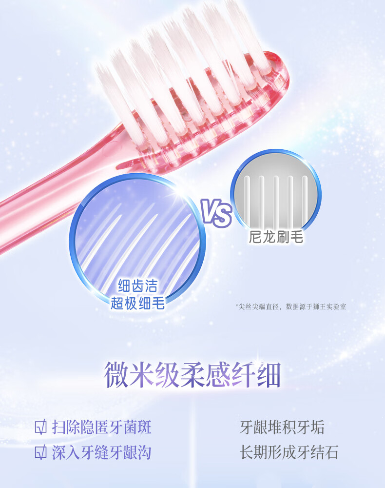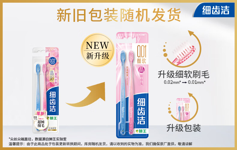 狮王(Lion)细齿洁0.01晶彩牙刷2支软毛小巧刷头细致护龈呵护口腔家庭装