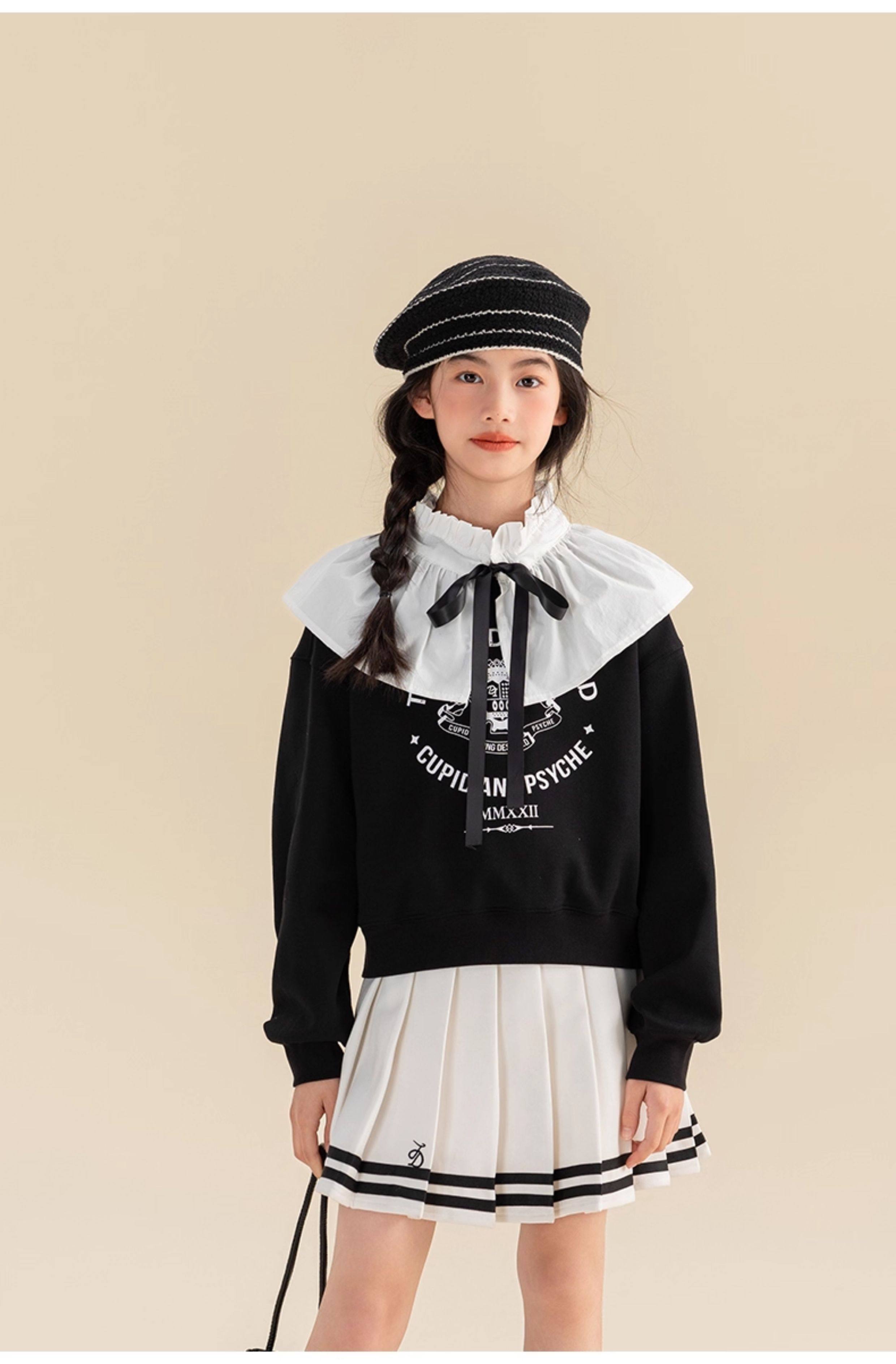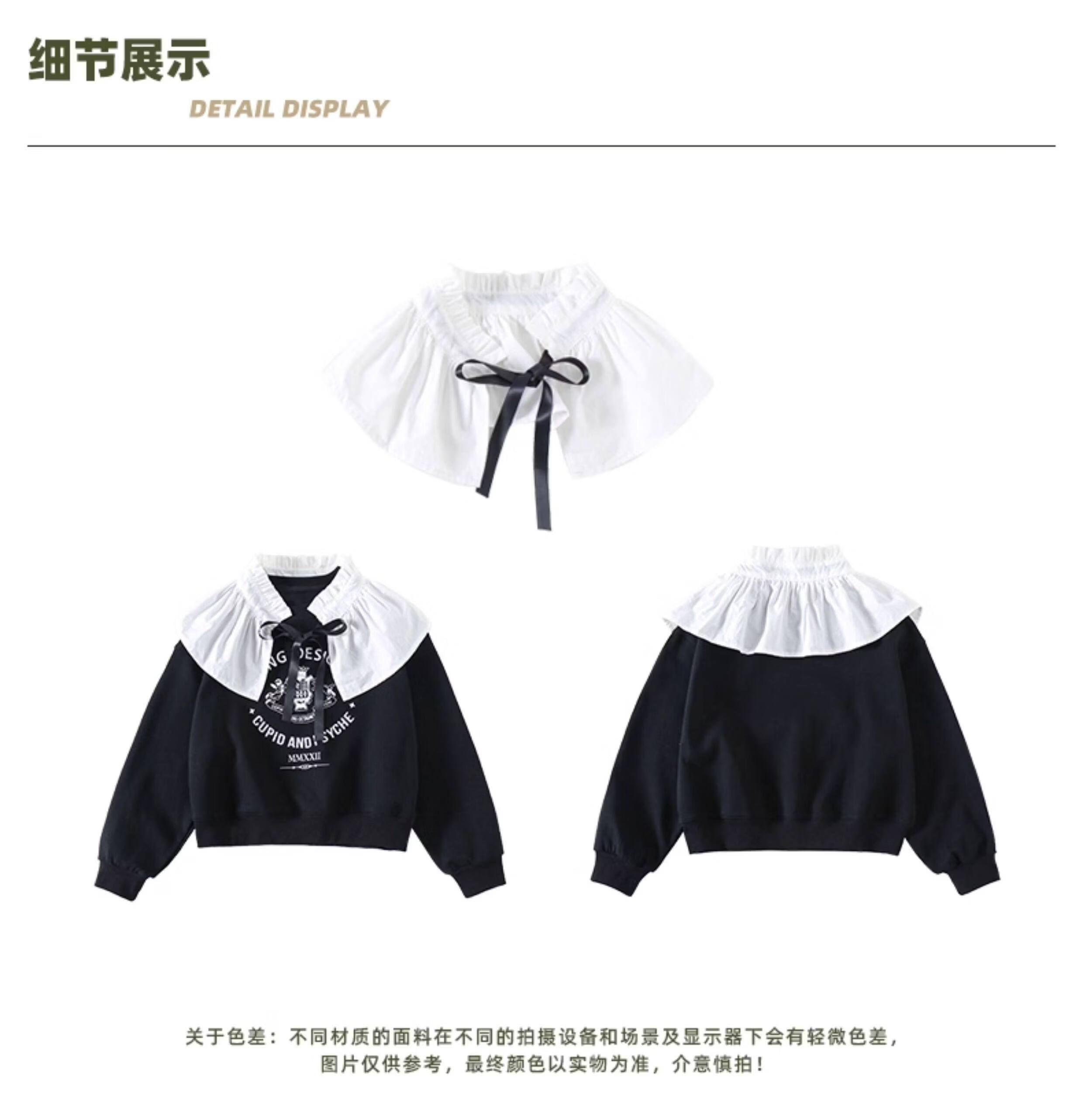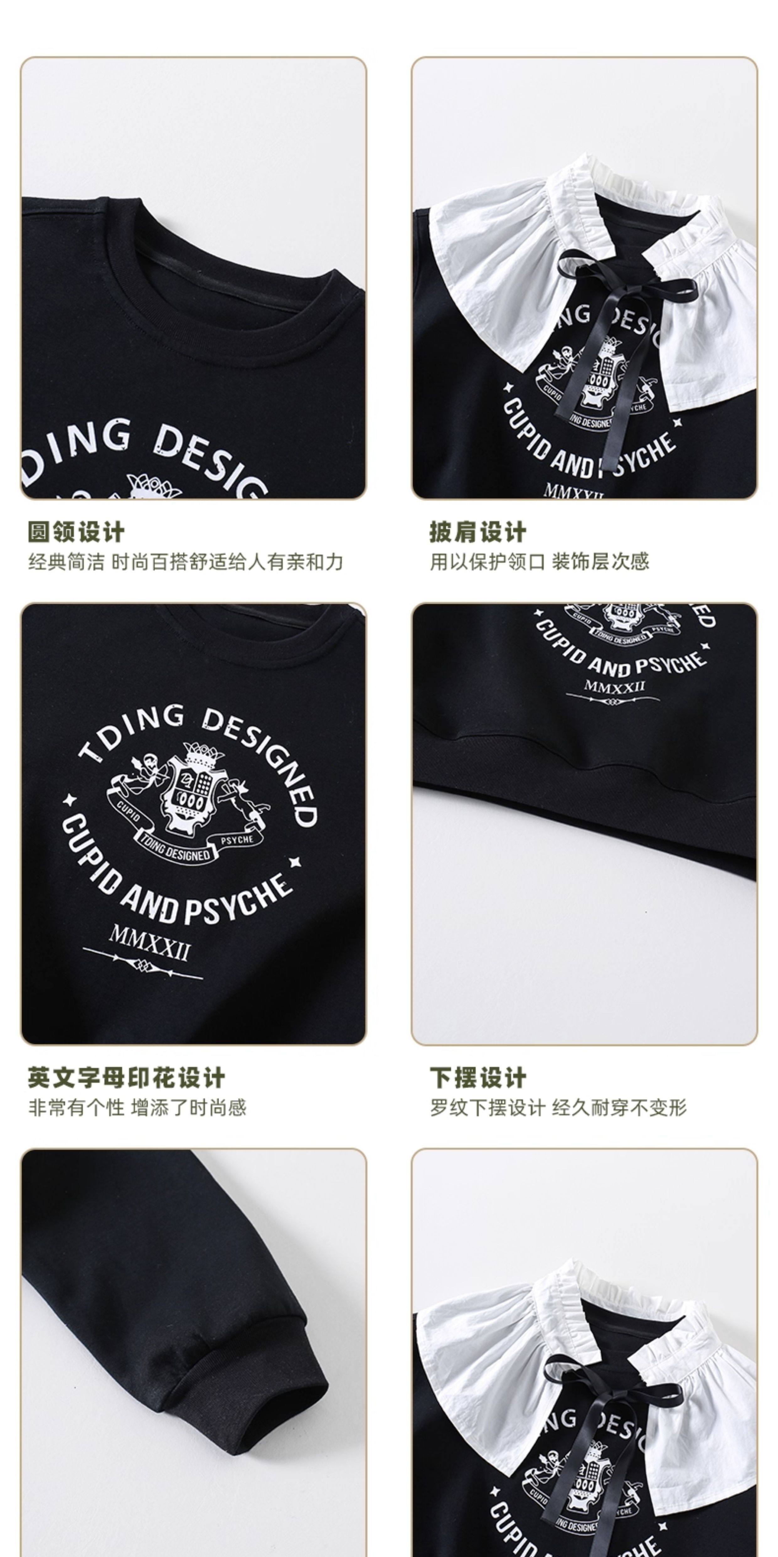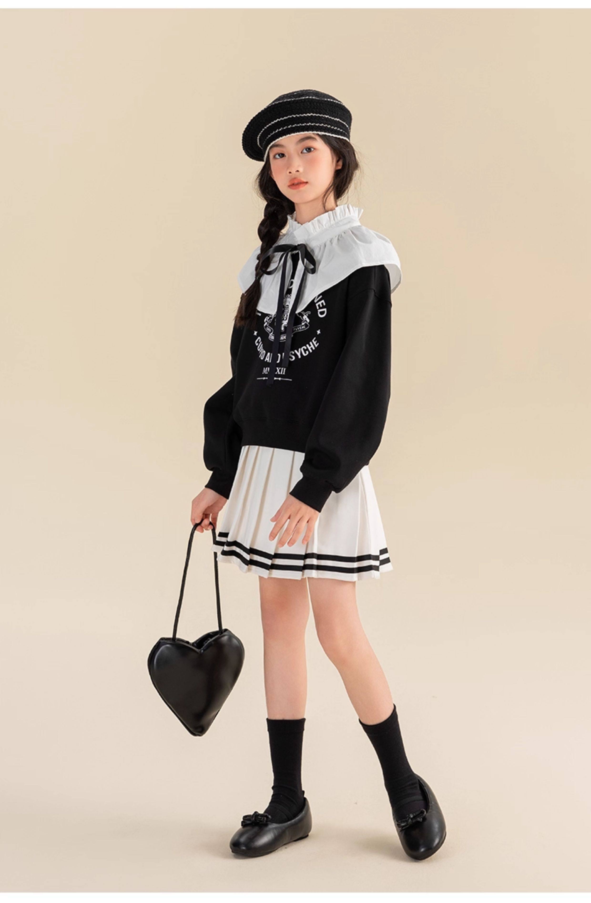 淘町女童赫克林卫衣春秋季新款中大童套头美式印花圆领学院风上衣 黑色 卫衣+送可拆披肩 170