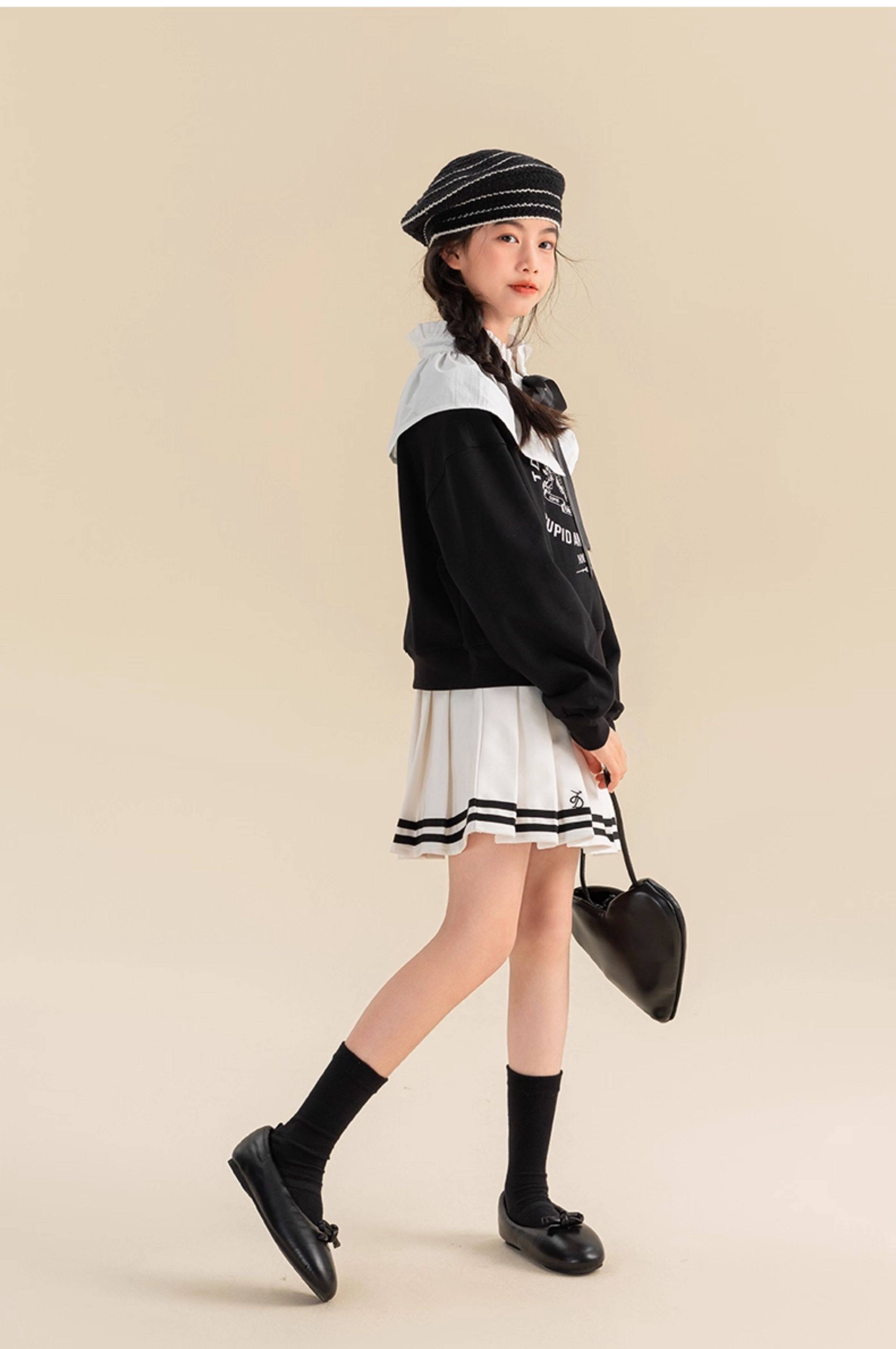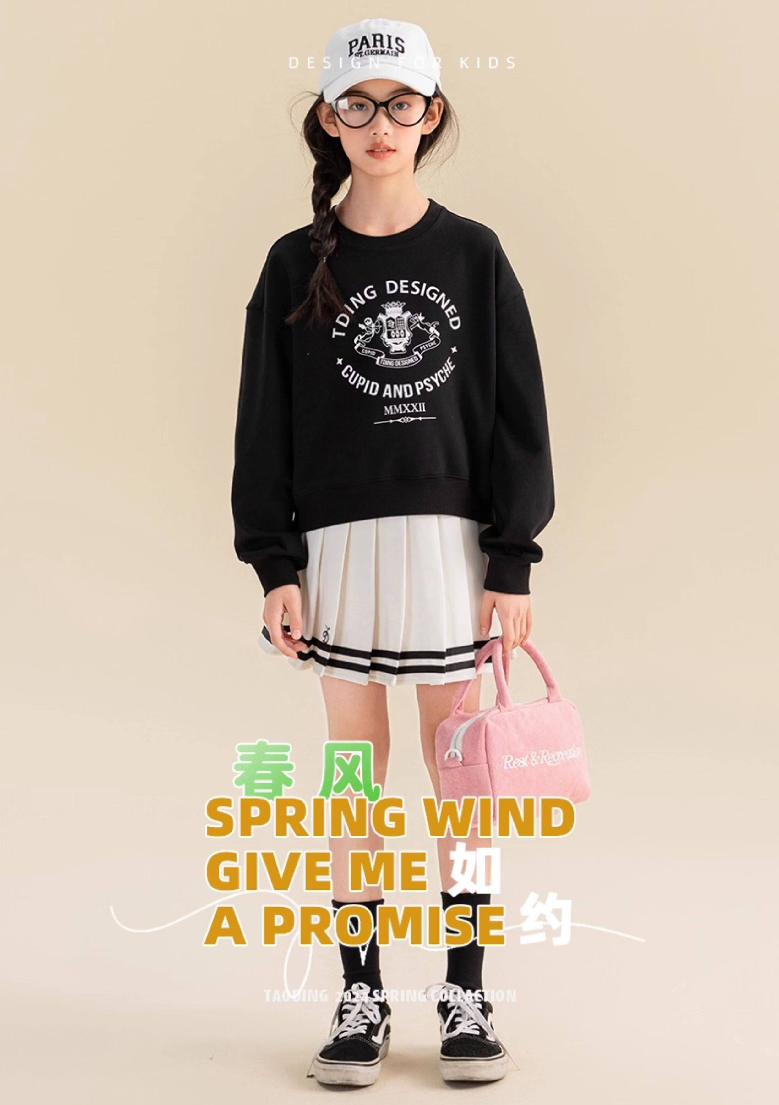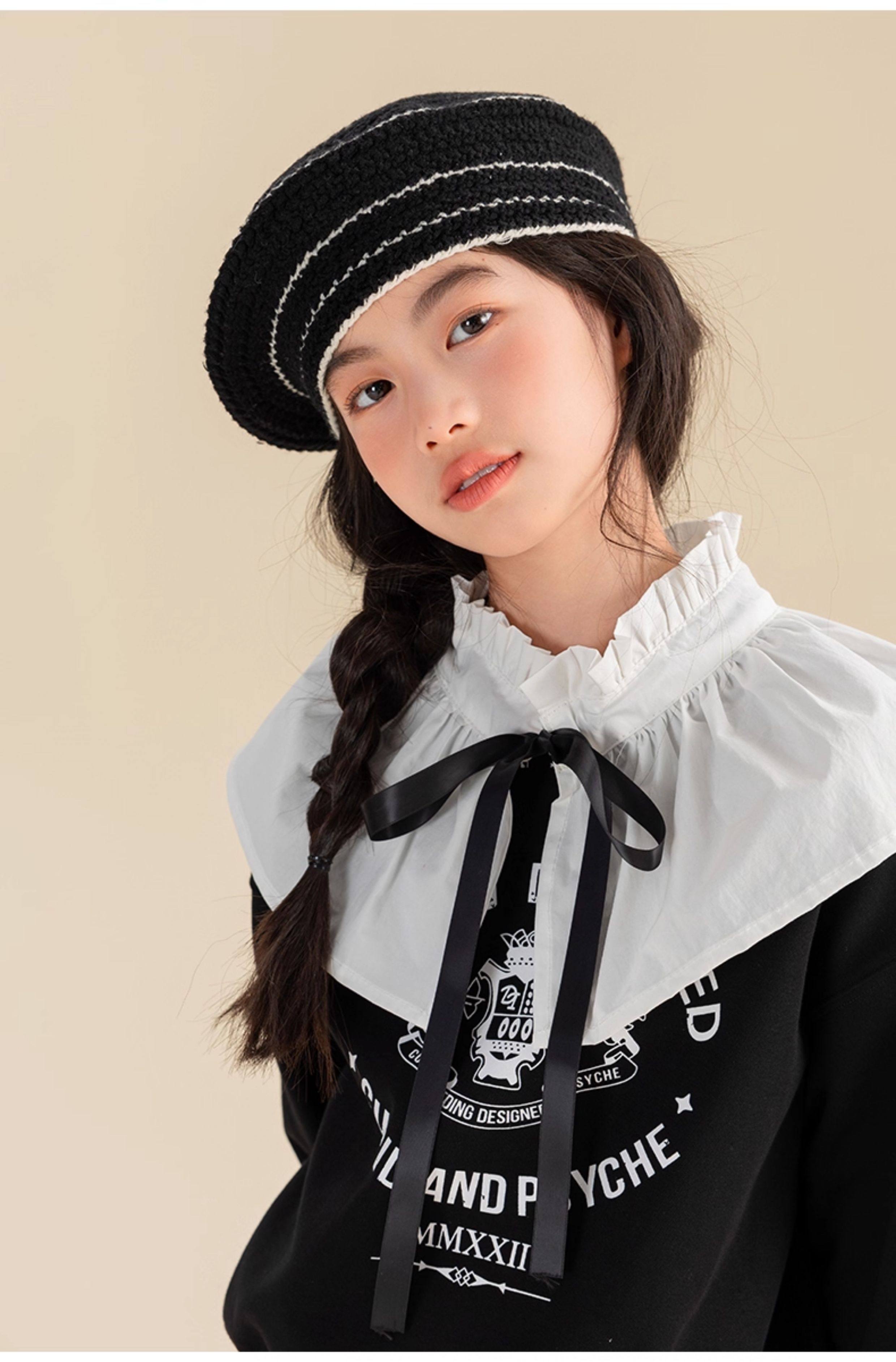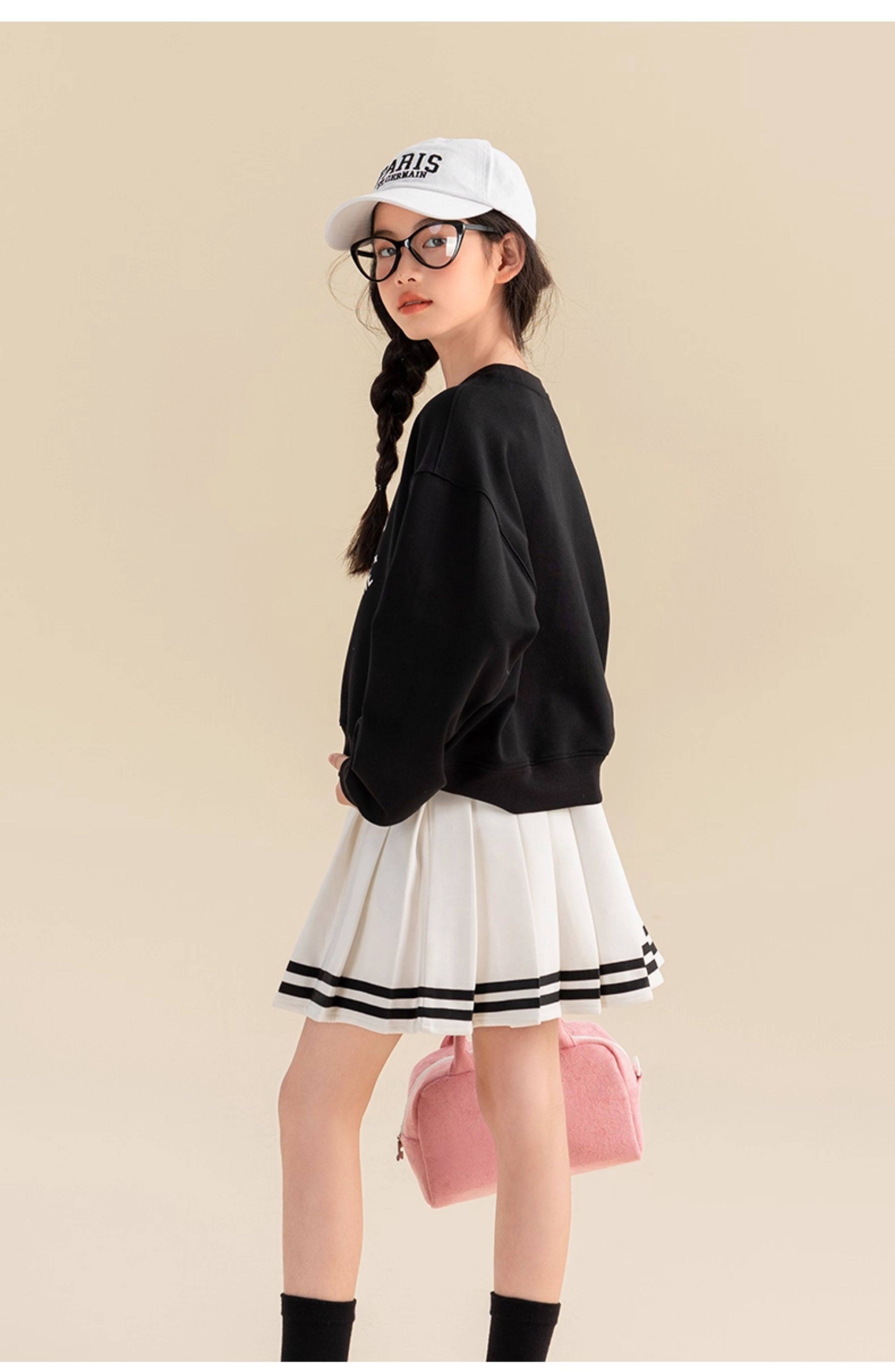 淘町女童赫克林卫衣春秋季新款中大童套头美式印花圆领学院风上衣 黑色 卫衣+送可拆披肩 170