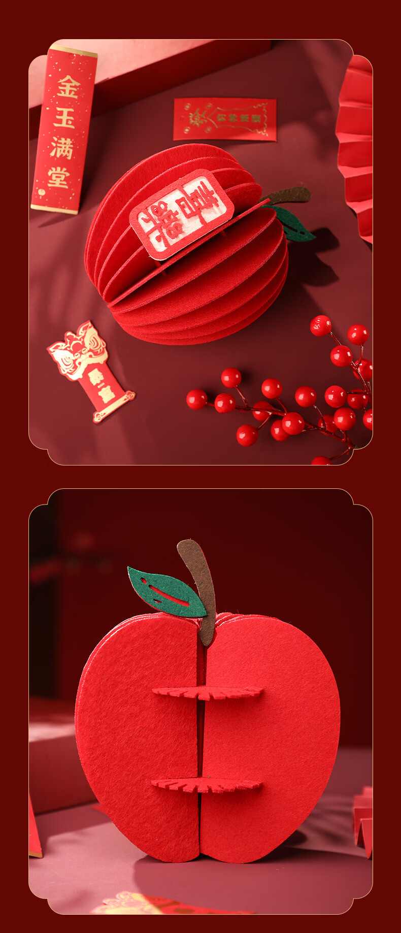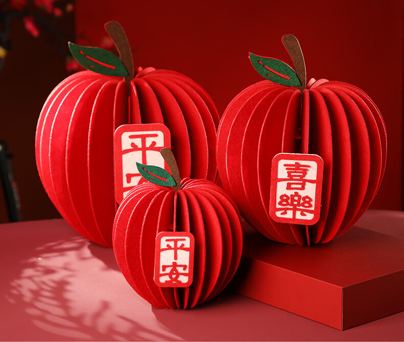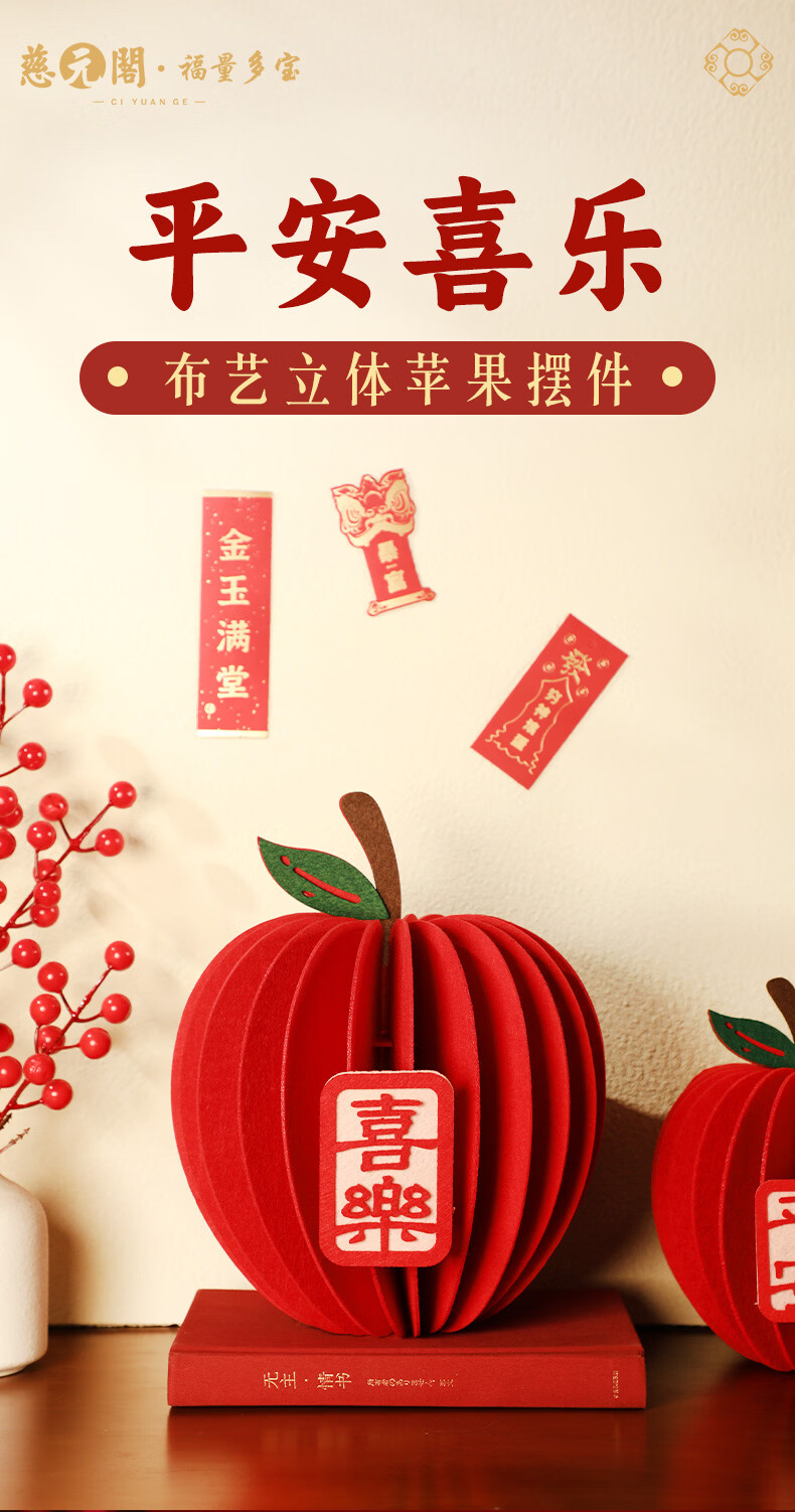 慈元阁新年平安喜乐布艺立体苹果摆件复古简易装饰氛围感春节客厅装饰品 小号15x18cm