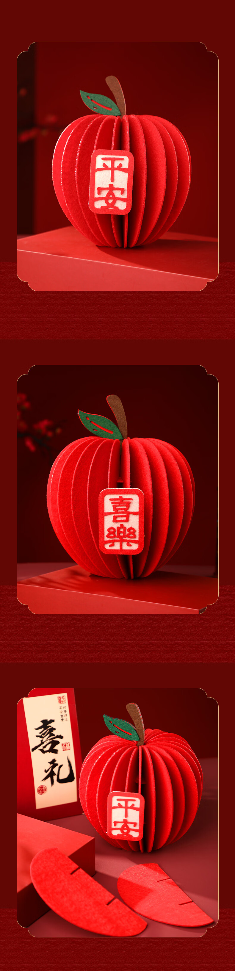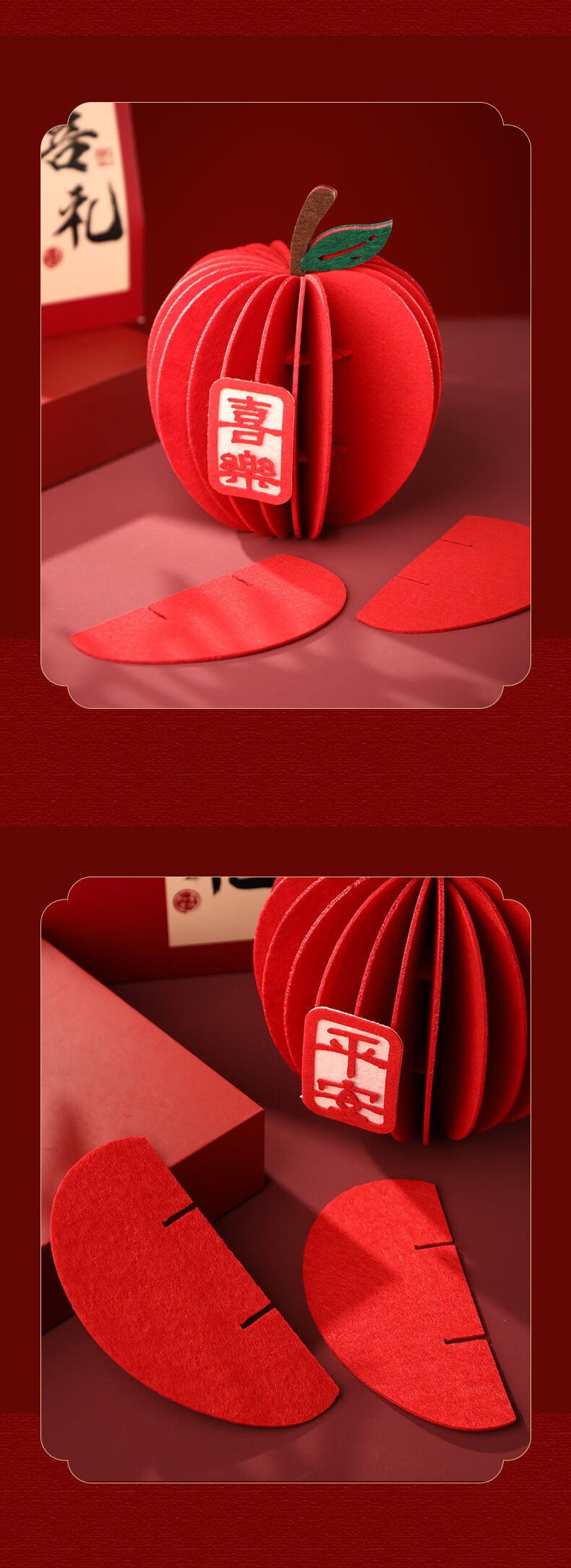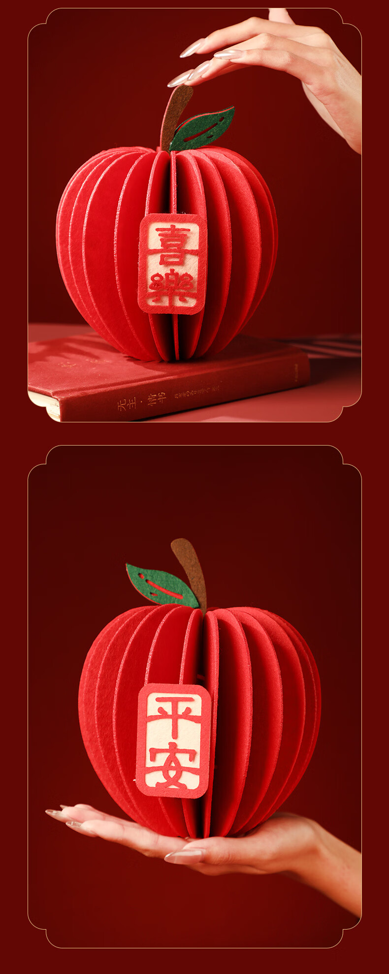 慈元阁新年平安喜乐布艺立体苹果摆件复古简易装饰氛围感春节客厅装饰品 小号15x18cm