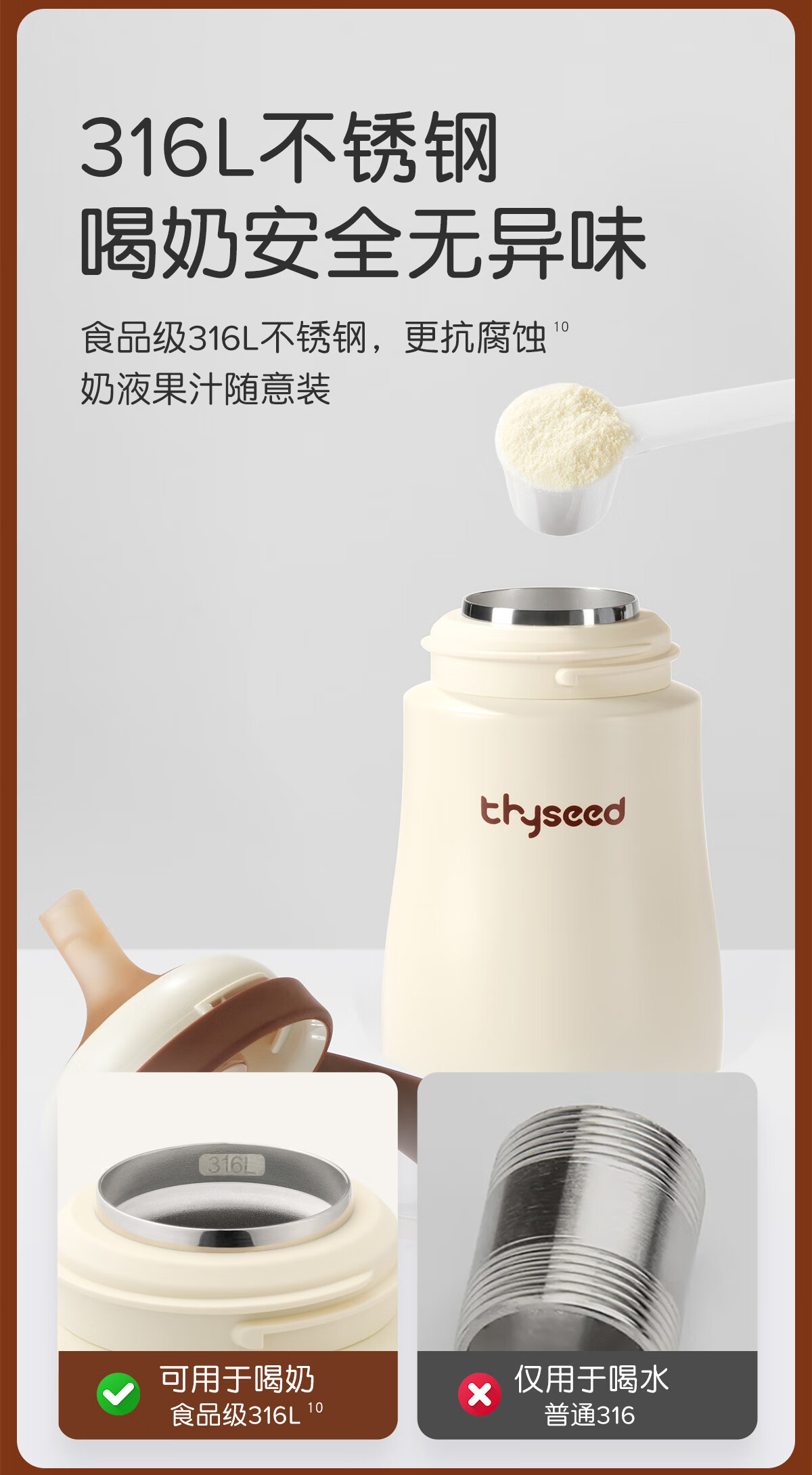 世喜婴儿保温杯幼儿小月龄316L不锈钢吸管学饮水杯外出保温奶瓶幼儿园