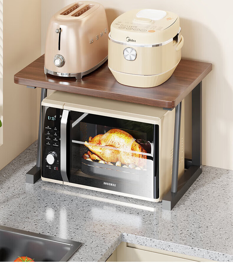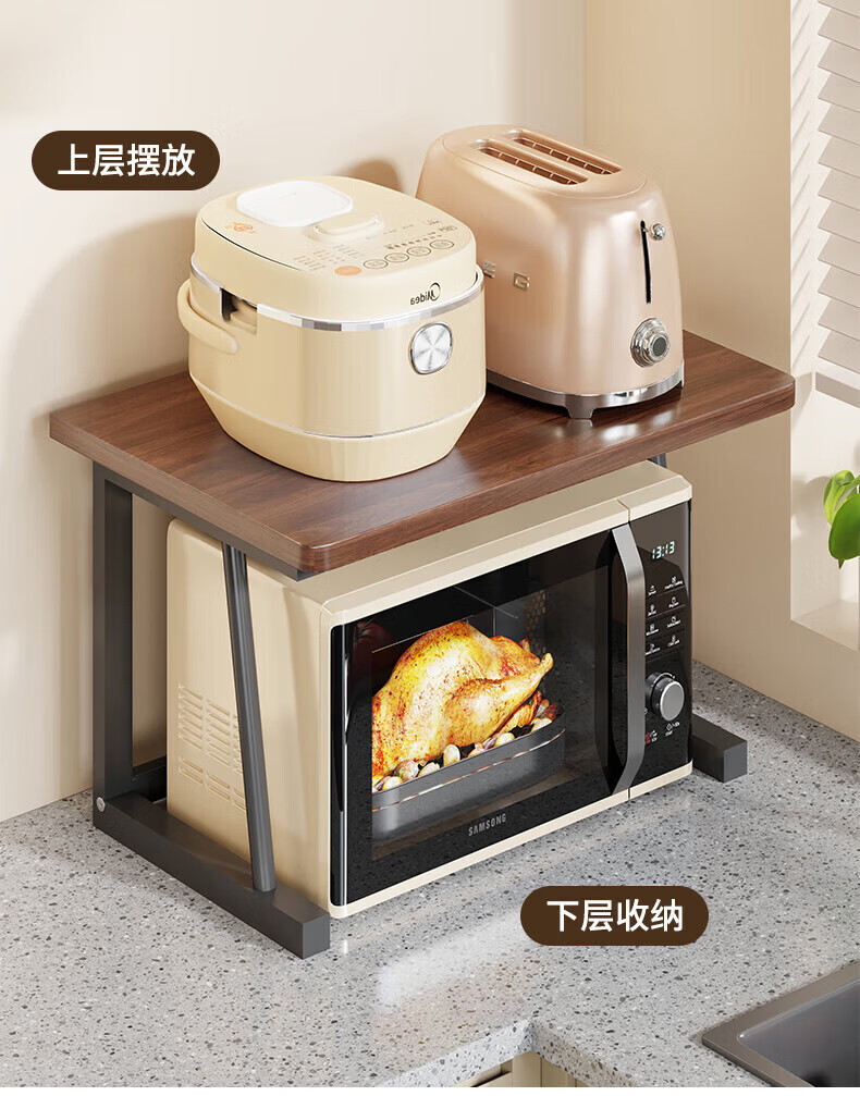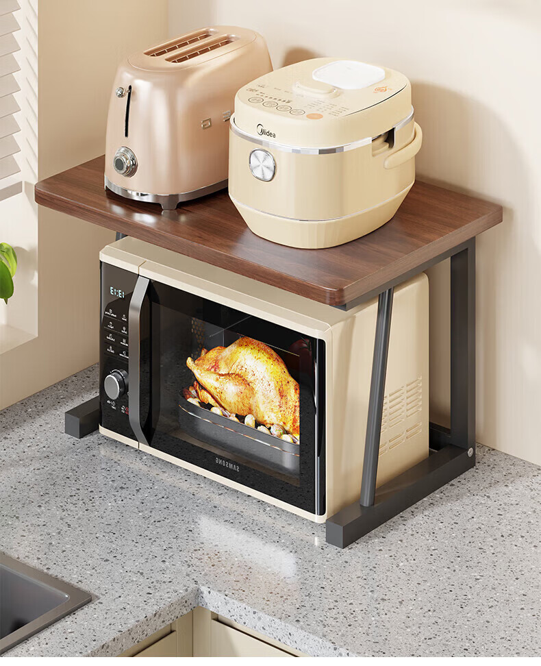 馨婺家微波炉置物架厨房台面电饭煲空气炸锅放置架多层放锅收纳烤箱架子 胡桃色-双层标准款【48*30*27】