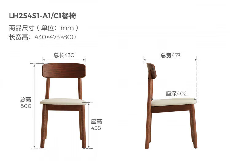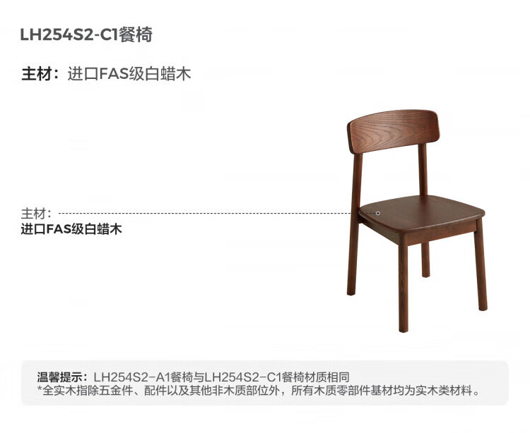 林氏家居实木餐椅客厅家用凳子靠背餐桌椅原木风家具林氏木业LH254S1 【小麦色】生态皮软包餐椅S1*2