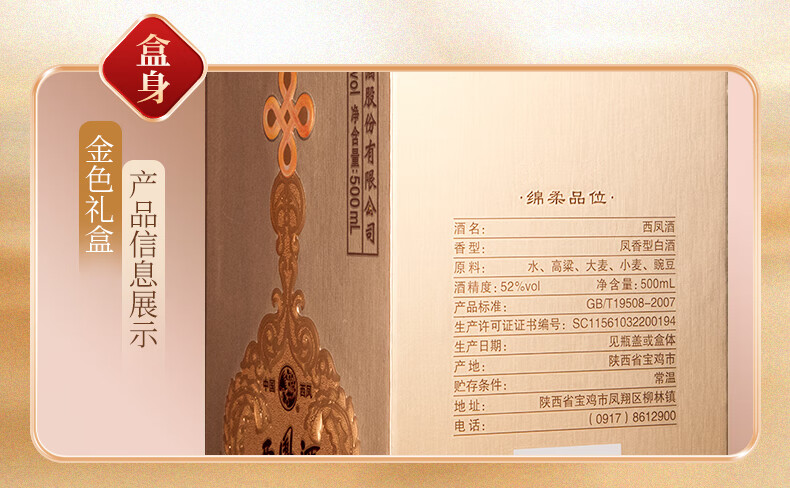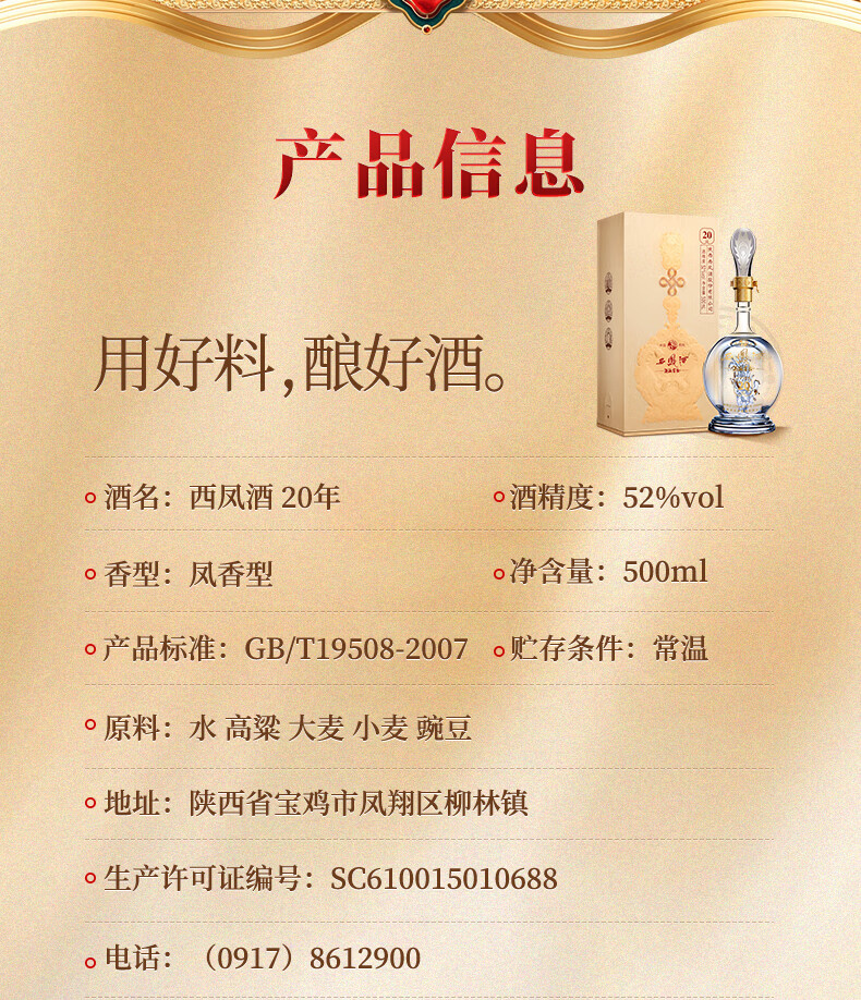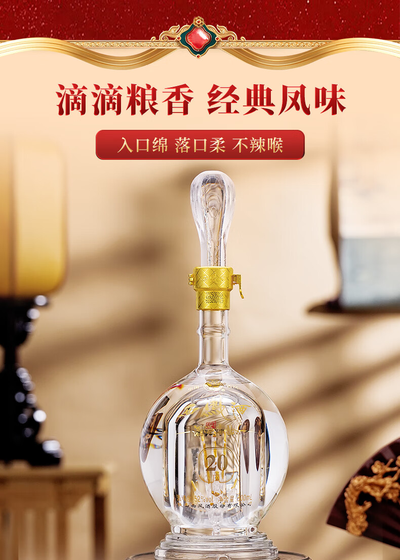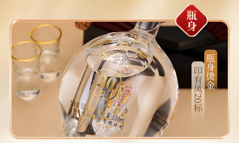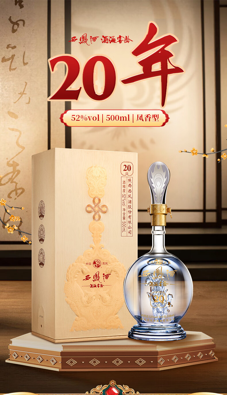 西凤酒 酒海窖龄 20年 52度 500ml 单瓶礼盒装 凤香型白酒 年货送礼