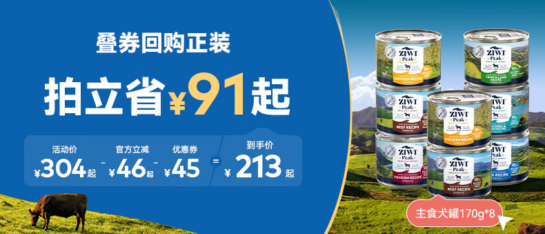 滋益巅峰(ZIWI)【会员尝鲜试吃】ZIWI犬罐170g*1+微蒸风干狗粮试吃30g*1 狗罐170g*1+试吃30g*1