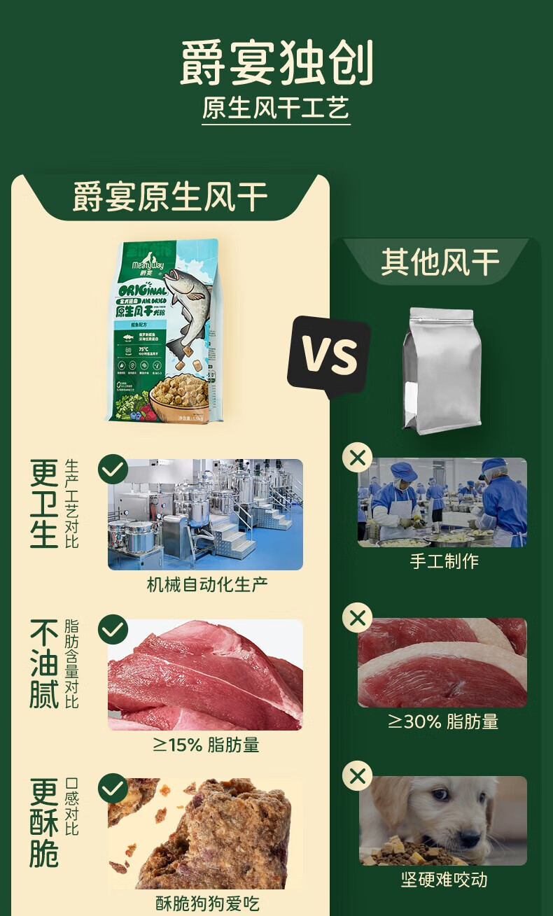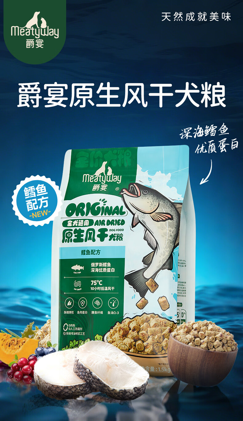 Meatyway爵宴狗粮全价主粮原生风干粮鸭肉味 大小型全犬粮通用 全价风干粮-鸭肉味 正装*3包