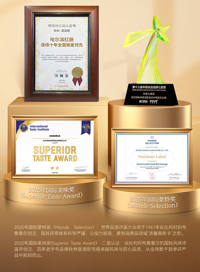 秋林里道斯哈尔滨红肠儿童肠80/支速食早餐瘦肉肠烤肠东北特产 猪肉牛肉香肠 儿童肠80g*10支