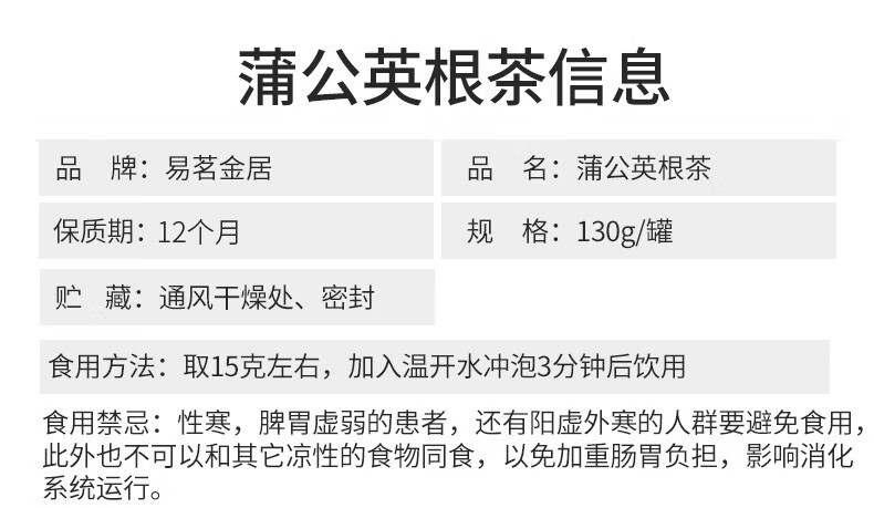 易茗金居 特选蒲公英根茶 130g/罐 长白山蒲公英根茶 【130g*2罐】