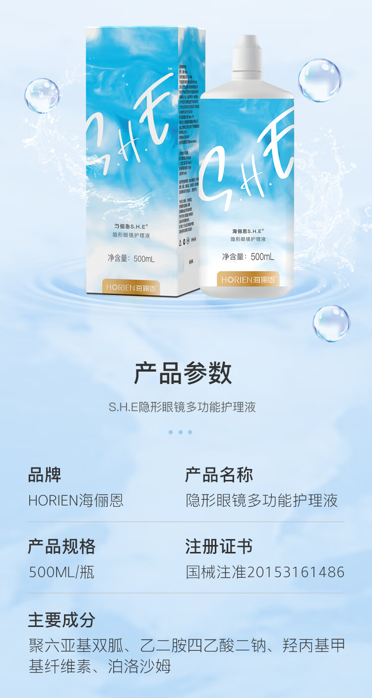 海俪恩美瞳 隐形眼镜多功能护理液 SHE500mL 清洁保湿