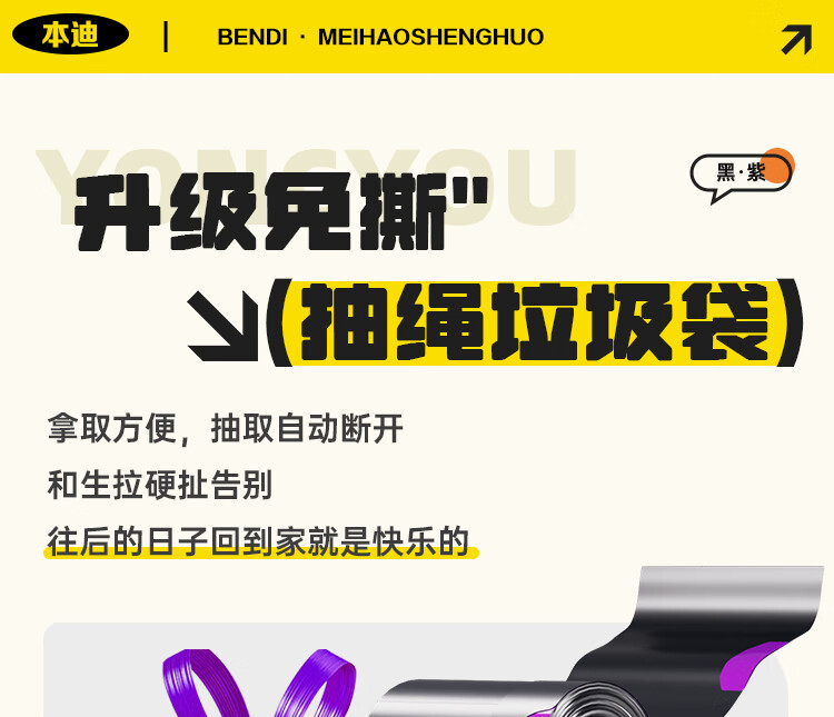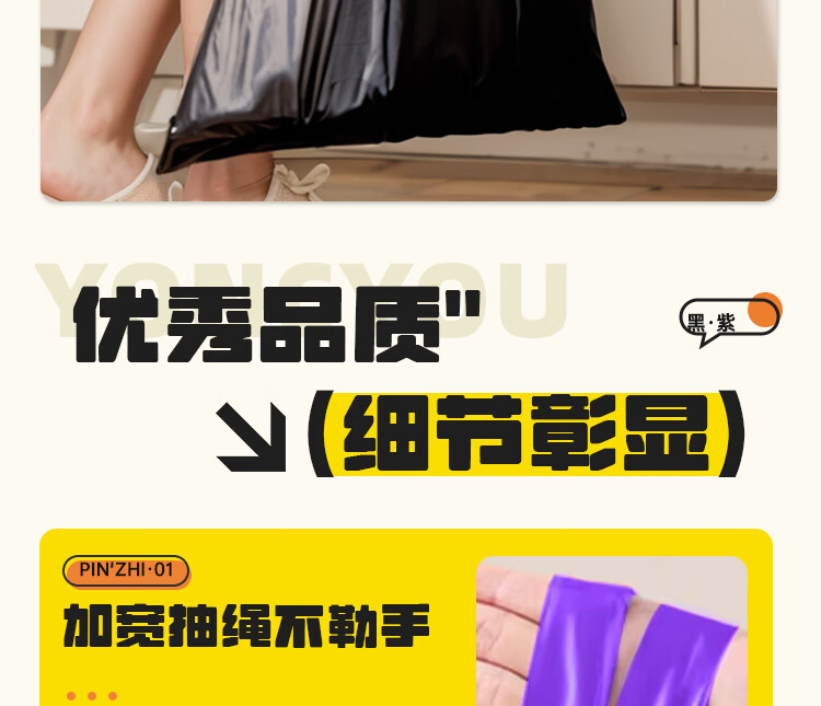 本迪抽绳垃圾袋黑色45*50cm*120只加厚1.4丝免撕客厅卫生间加厚塑料袋