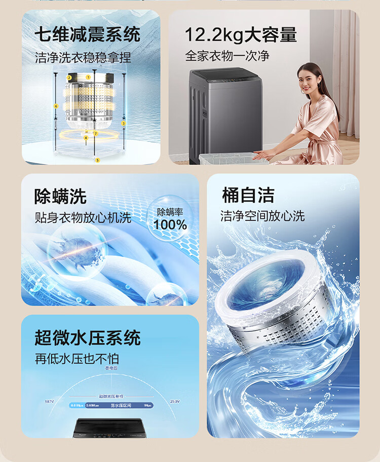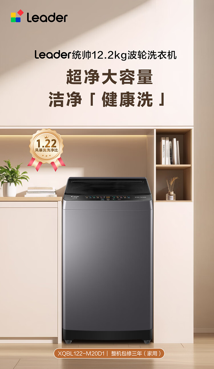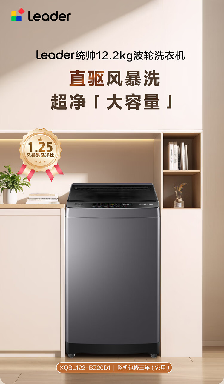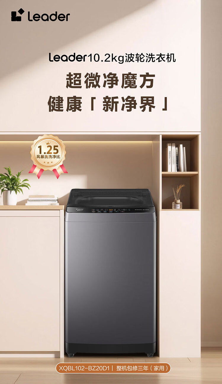 海尔出品统帅 公斤波轮全自动洗衣机 家用小型波轮 洗脱一体机大容量 公寓宿舍出租房 净魔方1.01洗净直驱BZ20D1 波轮 10.2kg