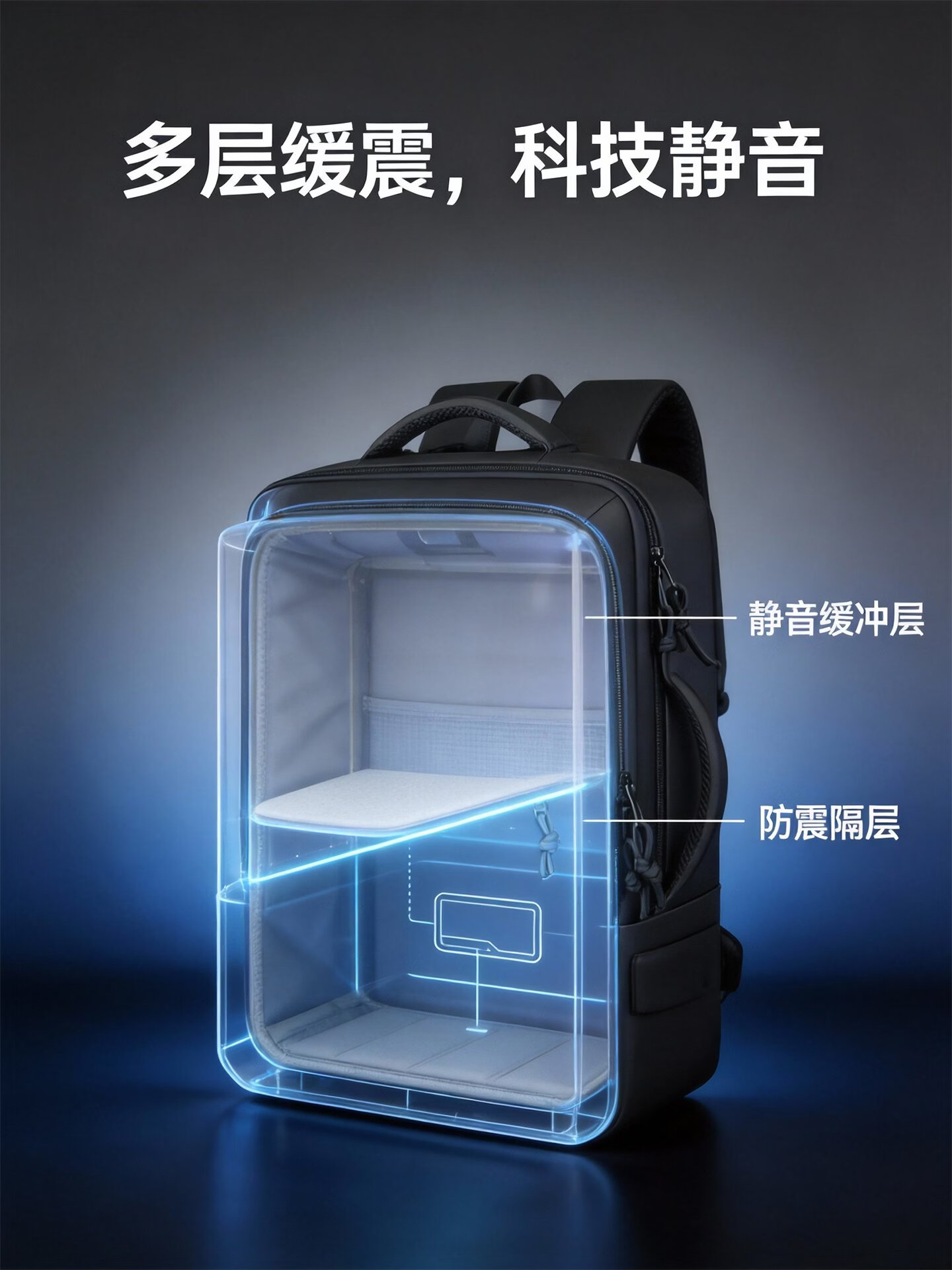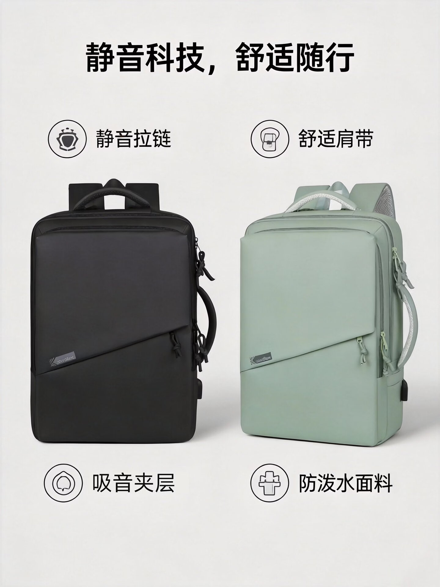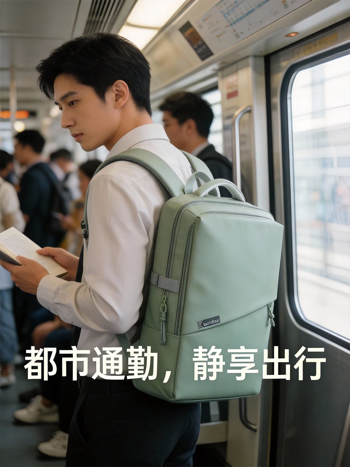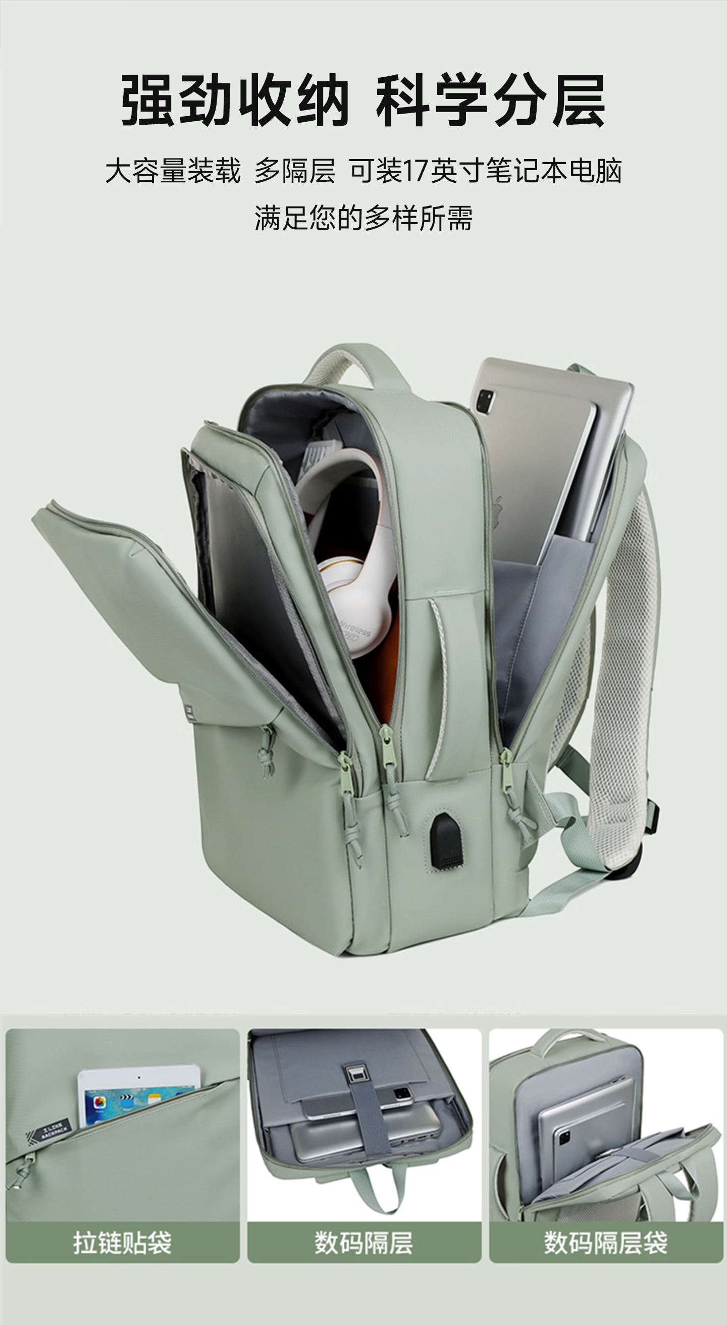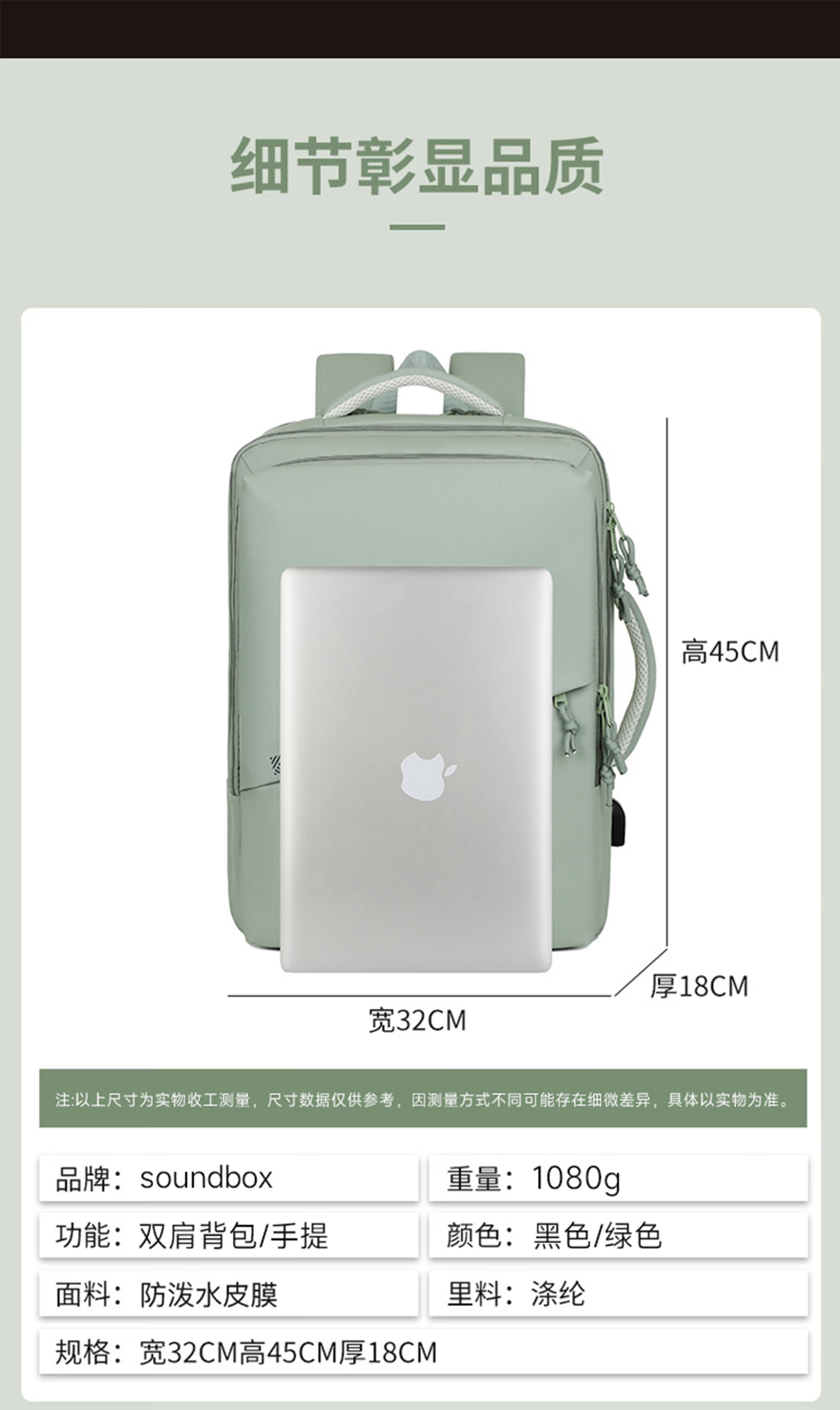 soundbox声博士静音背包双肩便携商务通勤分区电脑包多用途旅行包大容量 绿色