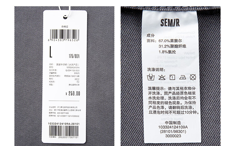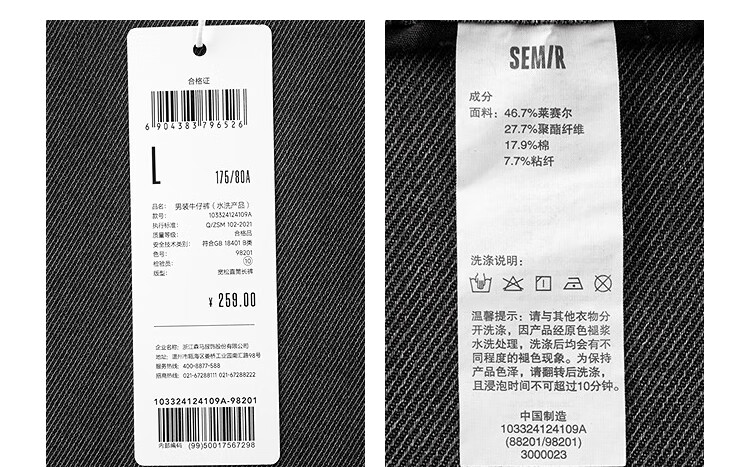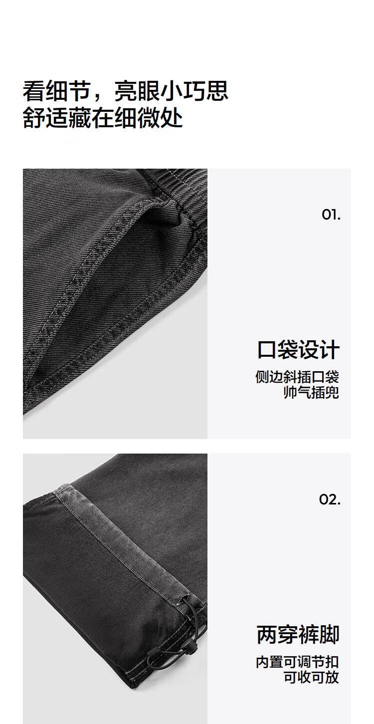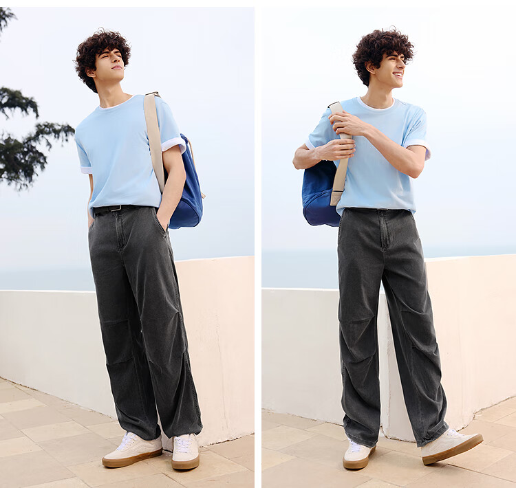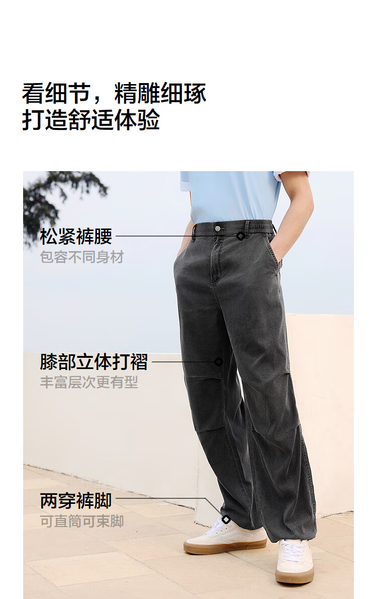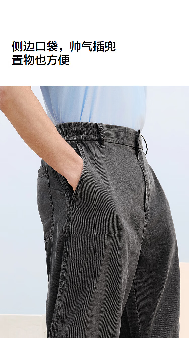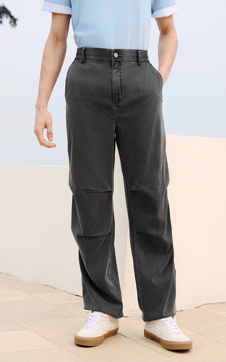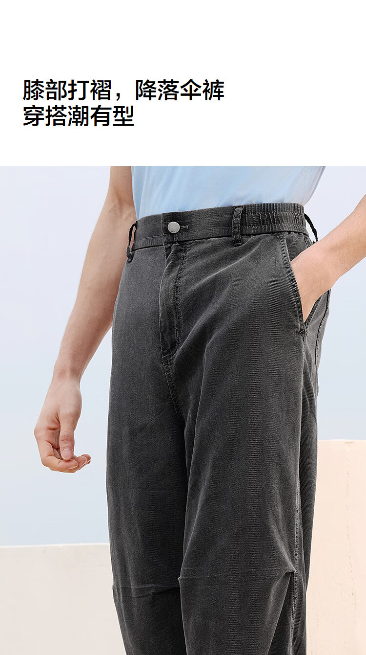 森马森柔牛仔|牛仔裤男直筒裤子夏季长裤伞兵裤黑色103324124109A