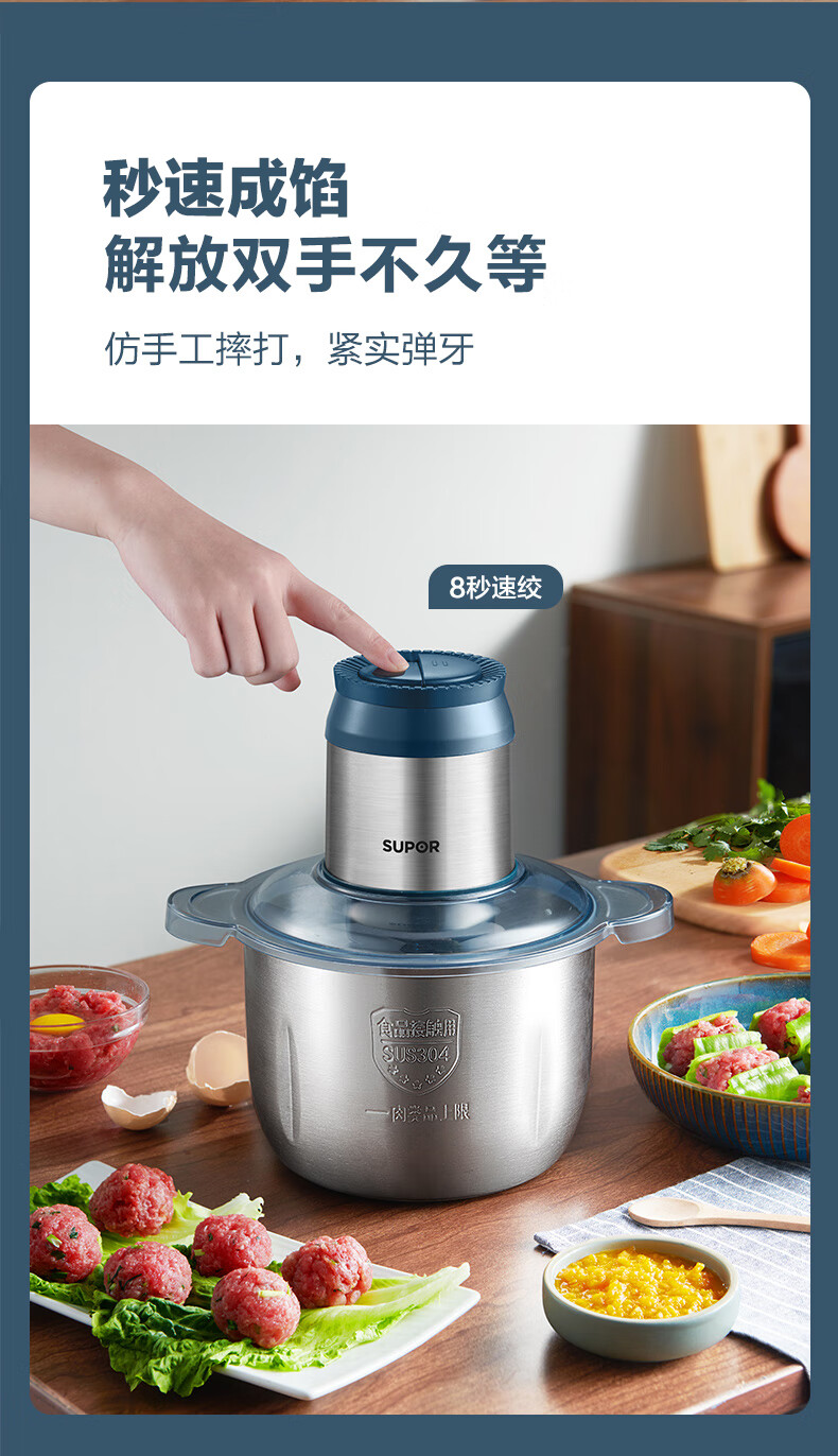 苏泊尔(SUPOR)绞肉机 家用多功能搅拌机不锈钢料理机3L大容量秒速绞馅婴儿辅食机绞馅机 JR51S