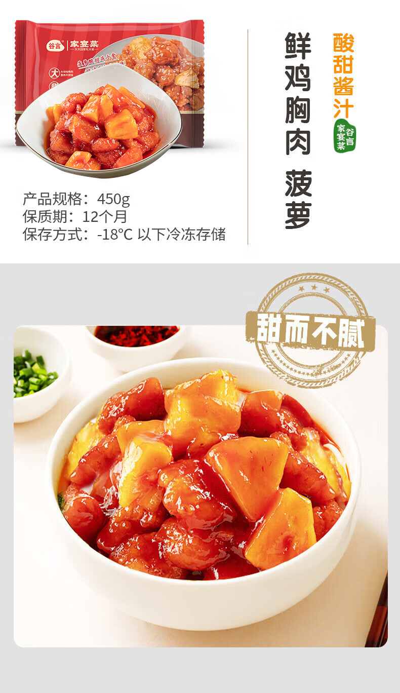 谷言年夜饭 预制菜 菠萝咕咾肉450g 咕噜肉 速冻菜肴 半成品菜 年货