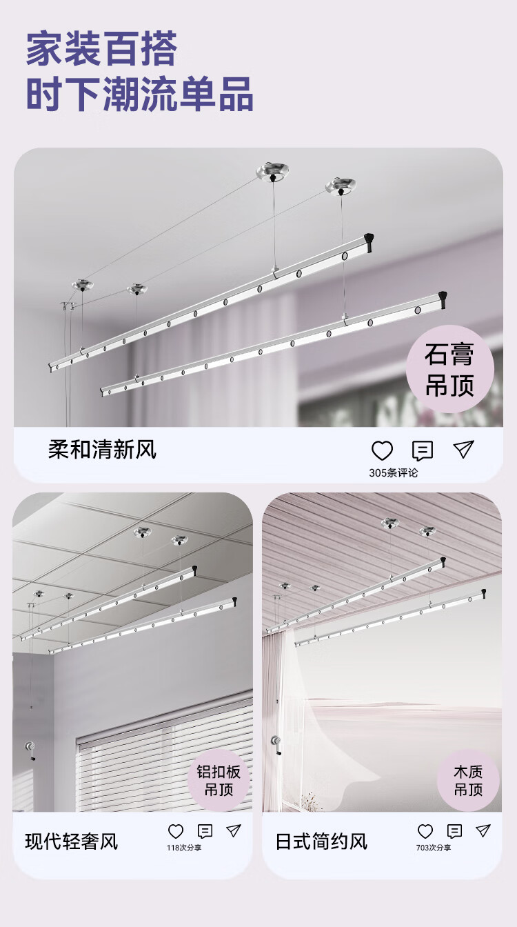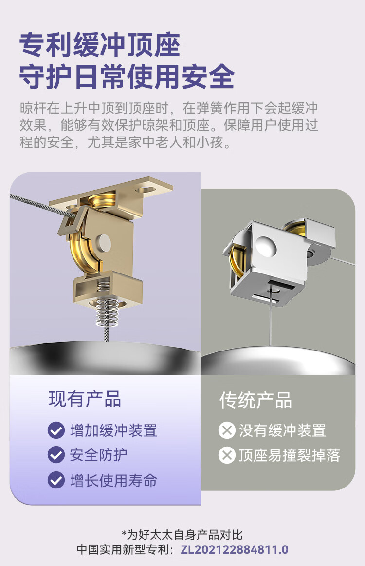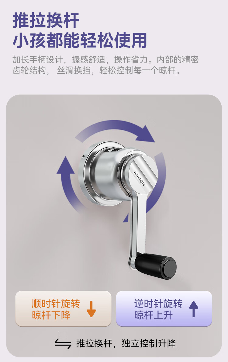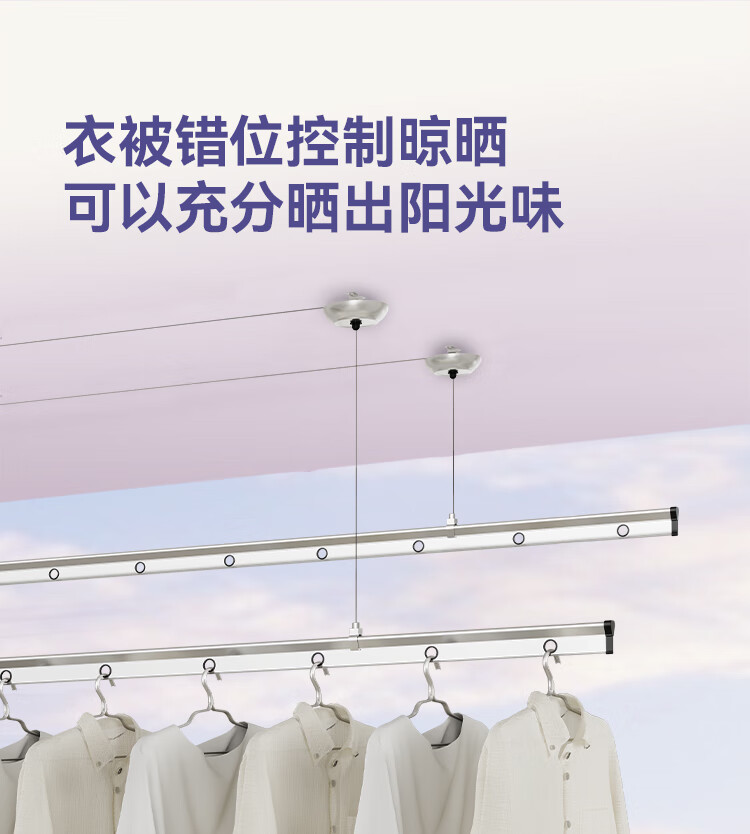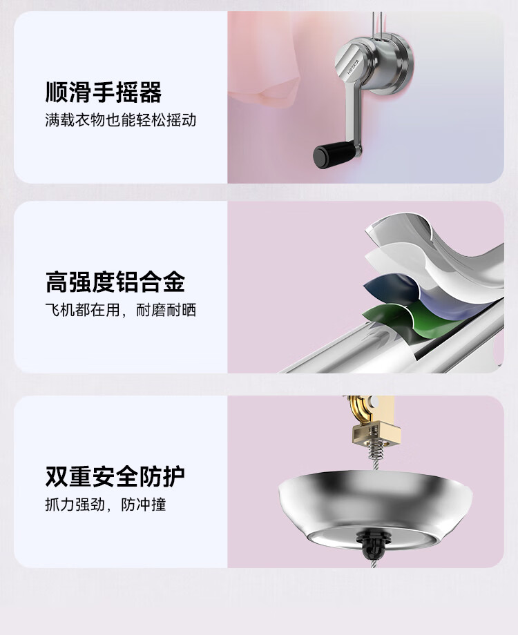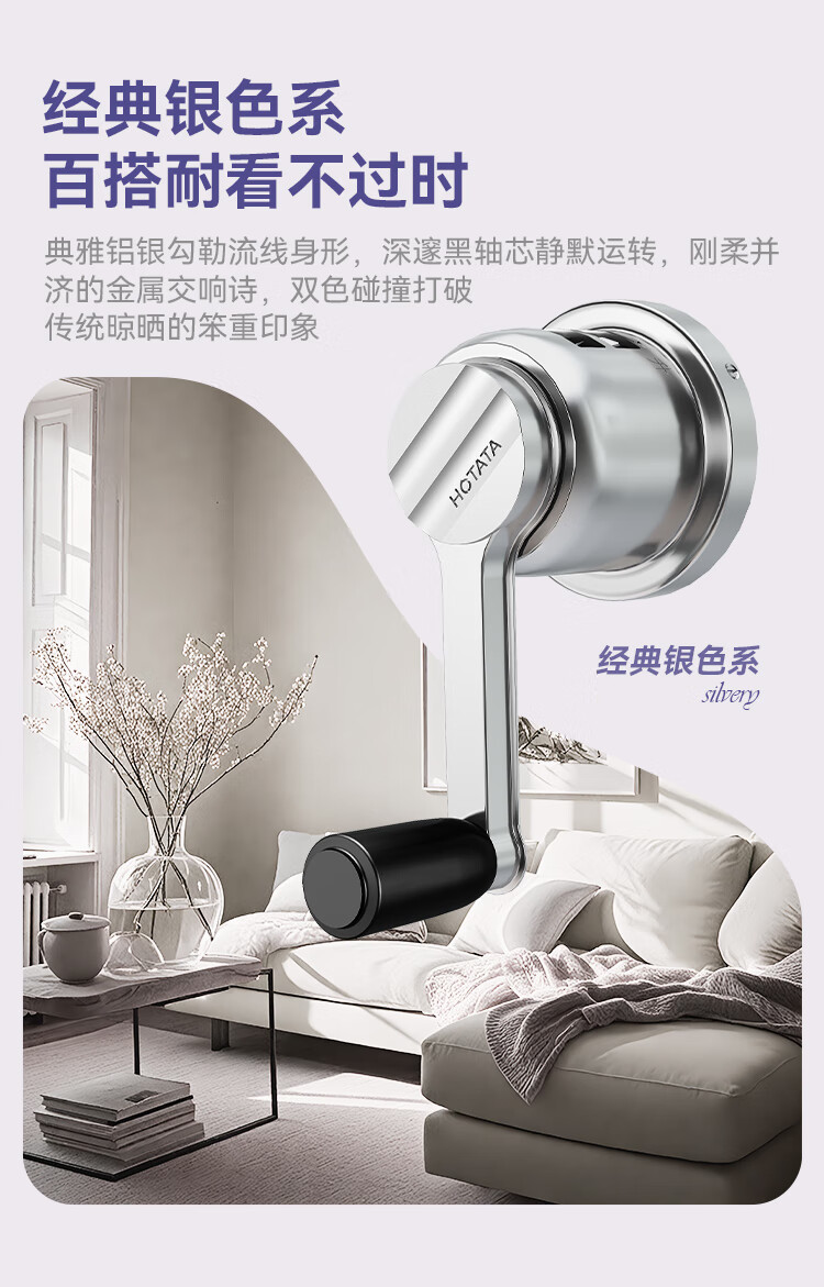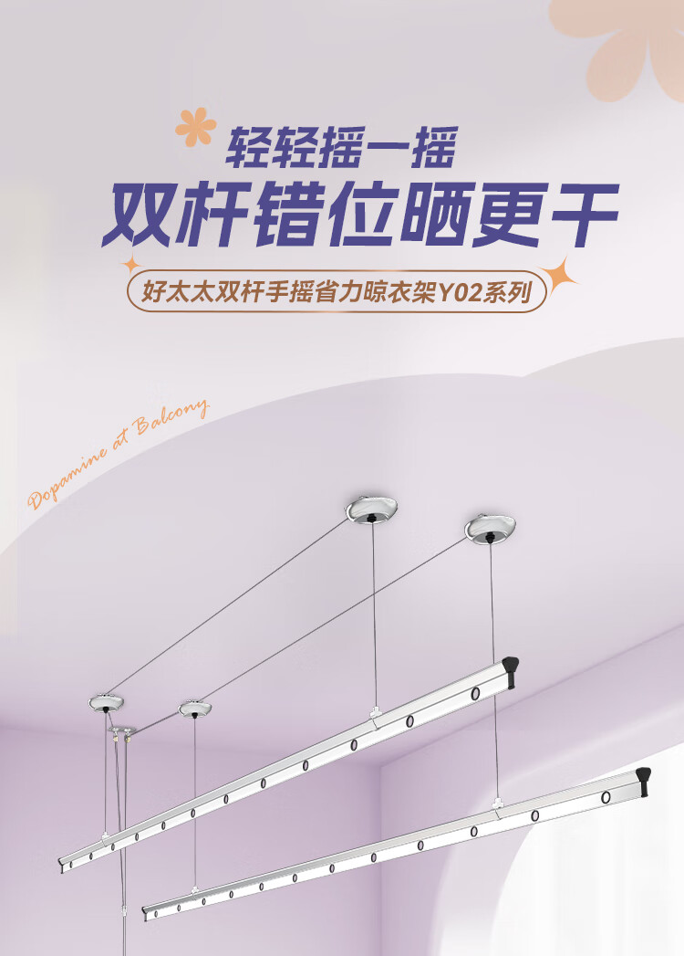 好太太(Hotata)双杆手摇晾衣架阳台室内升降晒衣架铝合金晾衣杆 Y022-银黑2米