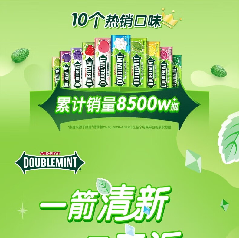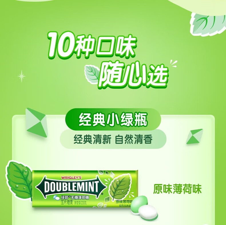 绿箭 (DOUBLEMINT)无糖薄荷糖清新口气糖混合口味约35粒/罐零食糖果 绿箭35粒混合口味 23.8g 5瓶