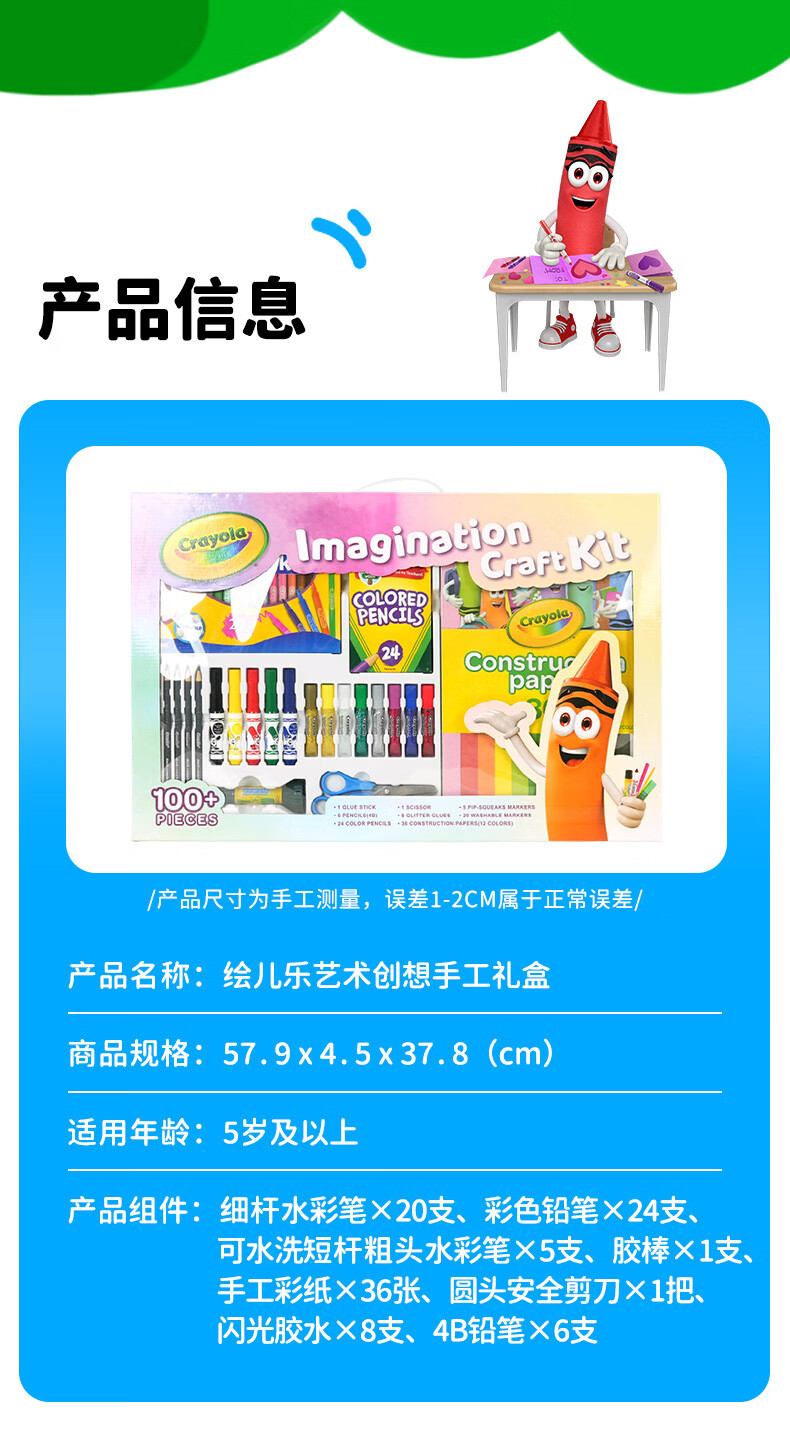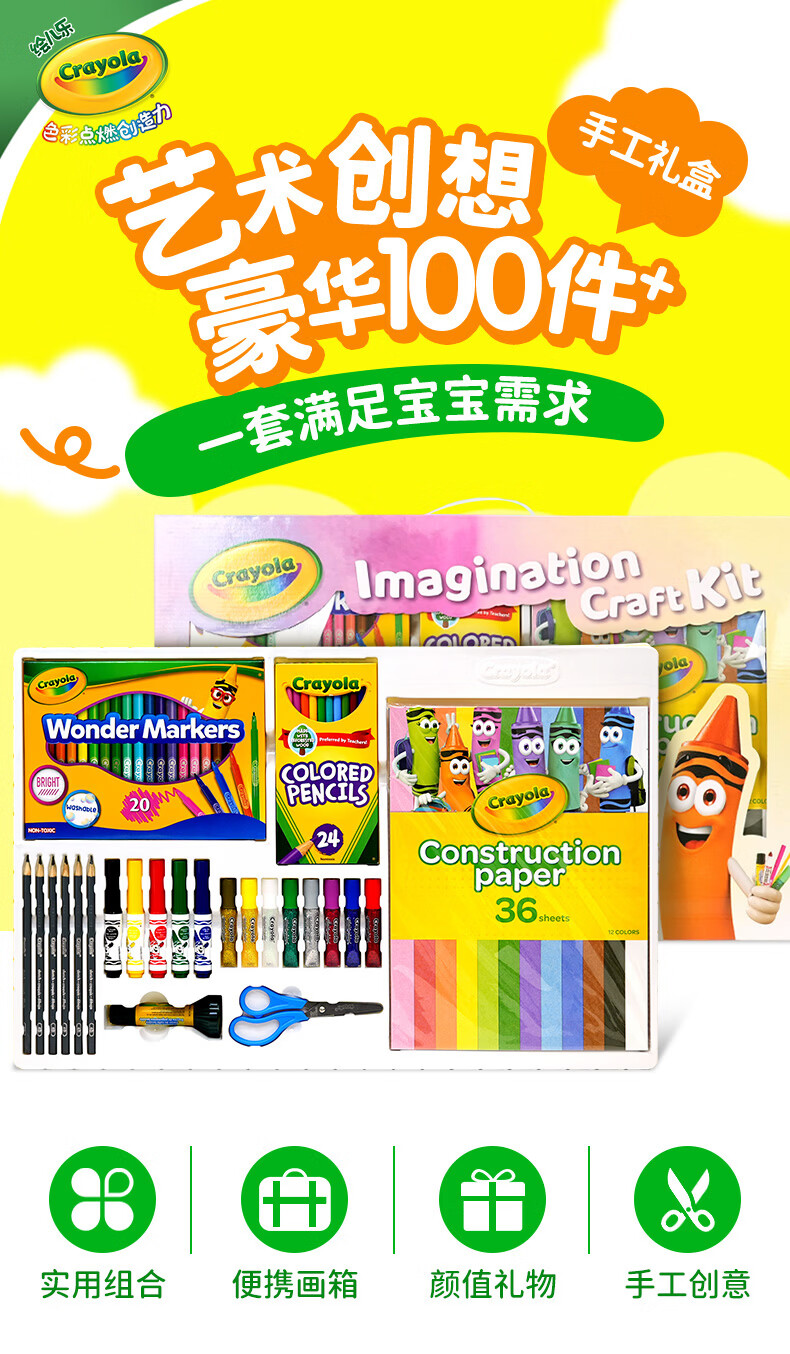 绘儿乐儿童小朋友绘画画套装美术用品水彩笔蜡笔礼盒小女孩儿实用元旦礼物(100件套) 100件装儿童开学大礼包