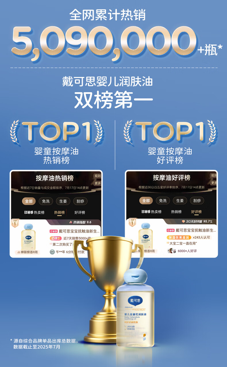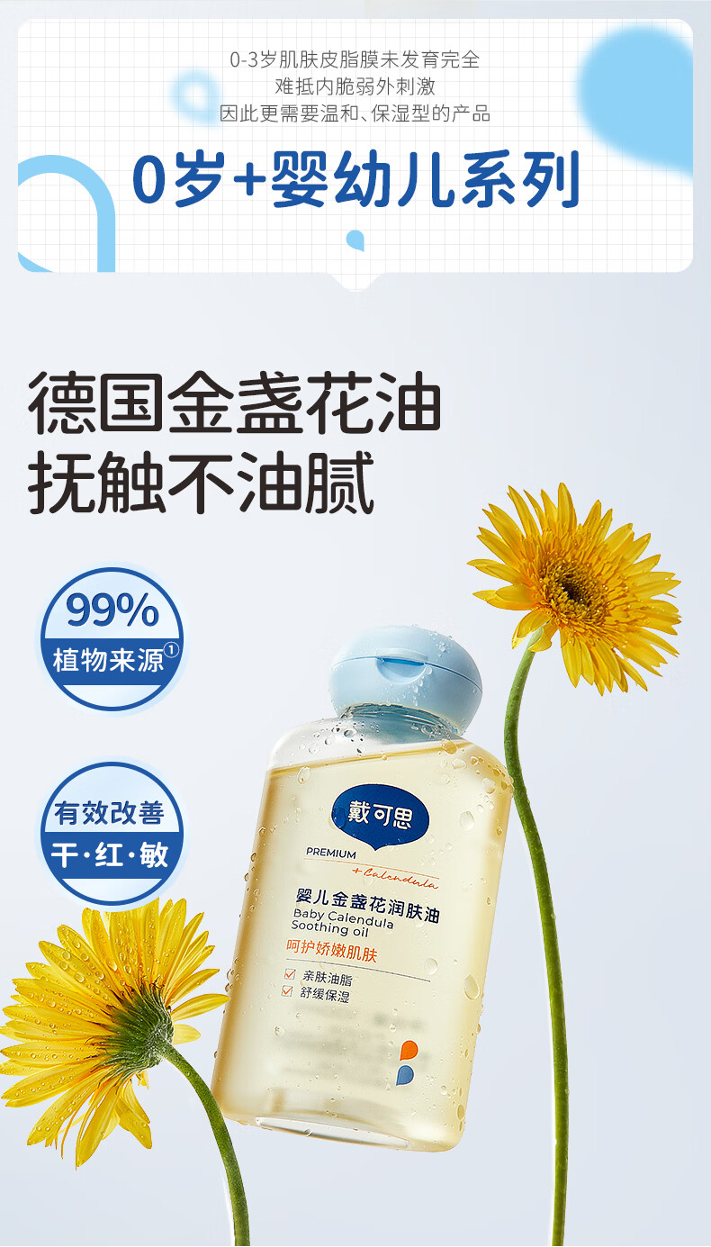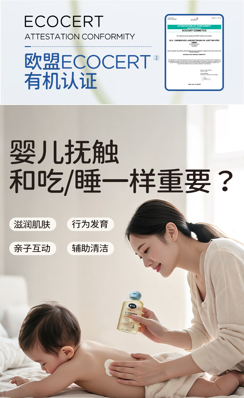 戴·可·思婴儿抚触油 宝宝润肤油 新生儿按摩油 好吸收不油腻100ml*2