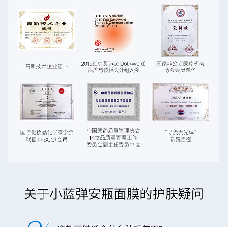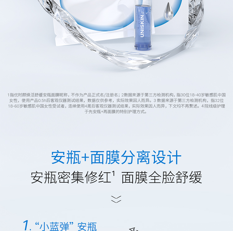 优时颜(UNISKIN)小蓝弹安瓶面膜25g*5片2盒装舒缓补水生日情人节礼物