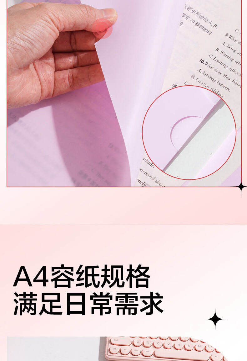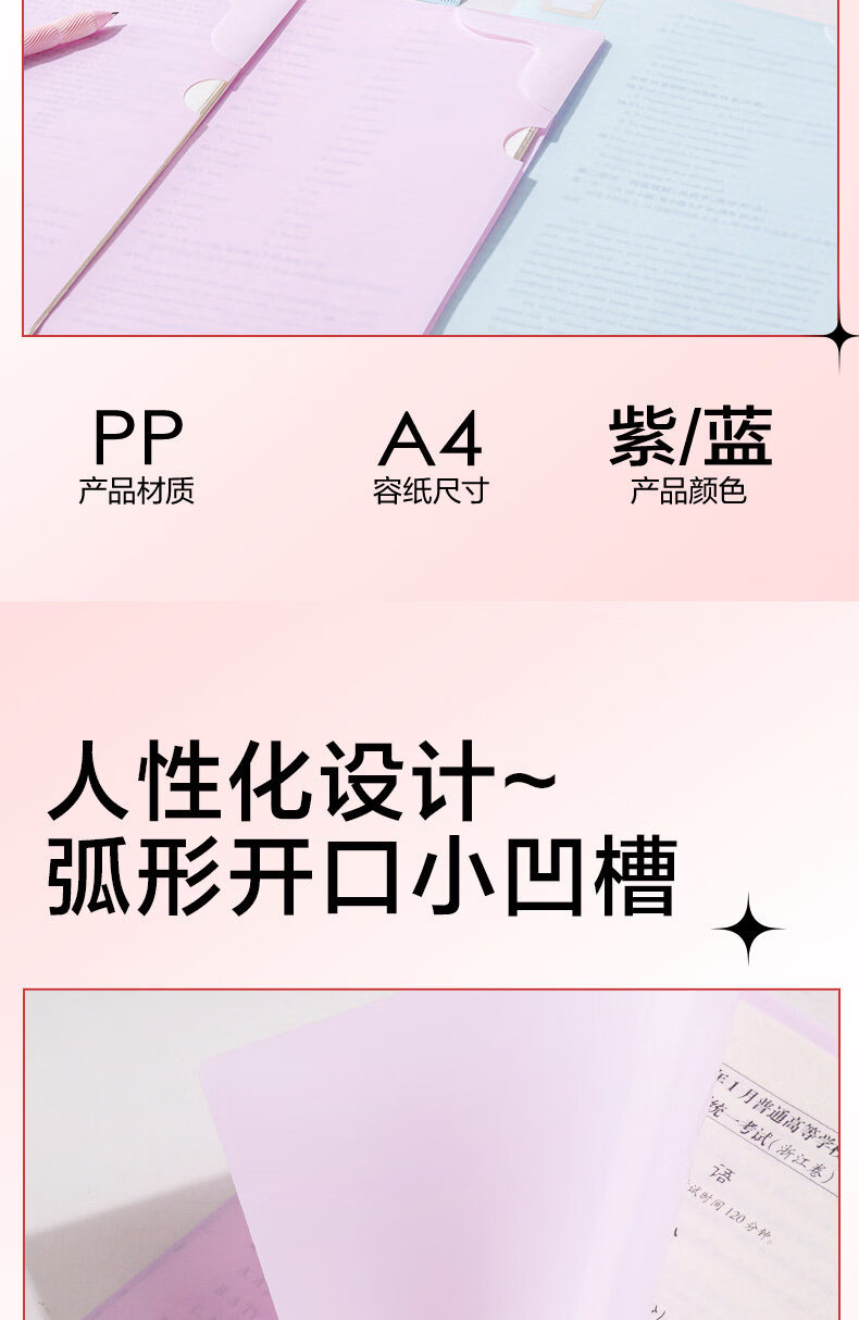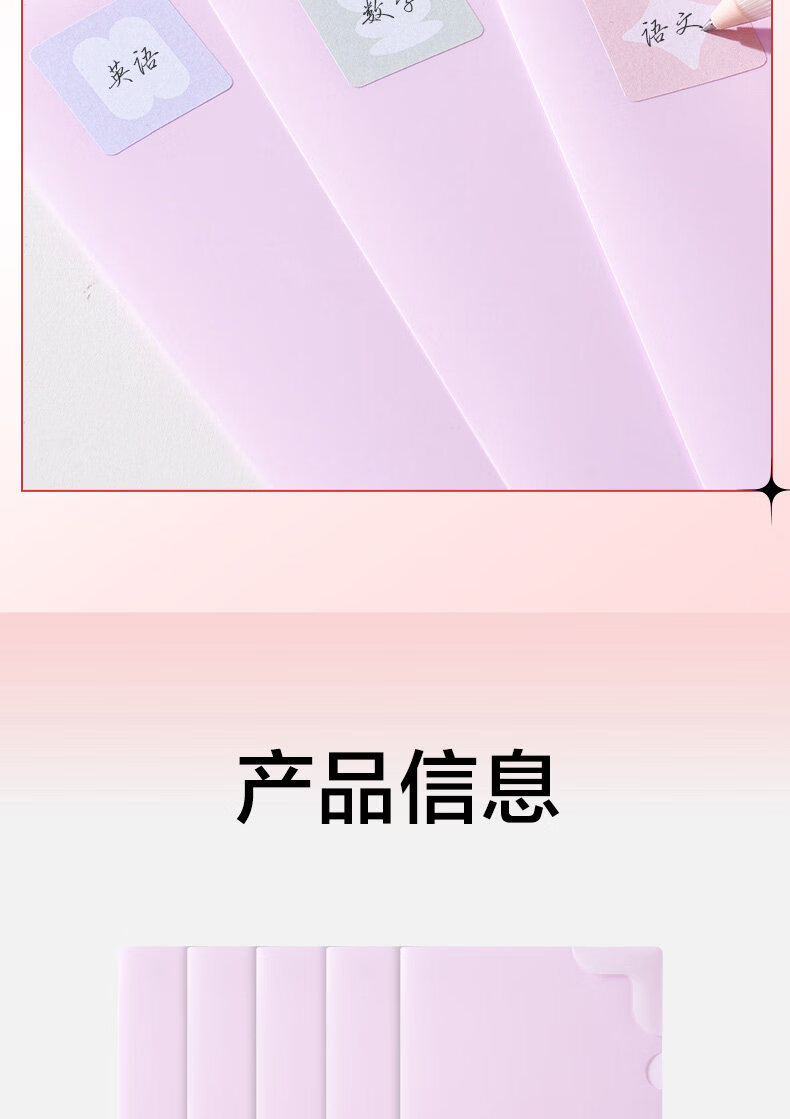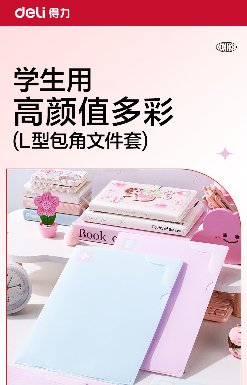 得力(deli)A4单页文件夹试卷收纳袋资料册L型挡角单夹小学初中生用多功能分类a4纸收纳整理高中大容量收纳夹 温柔紫【10个装】L型升级加固-档角设计(赠送标签