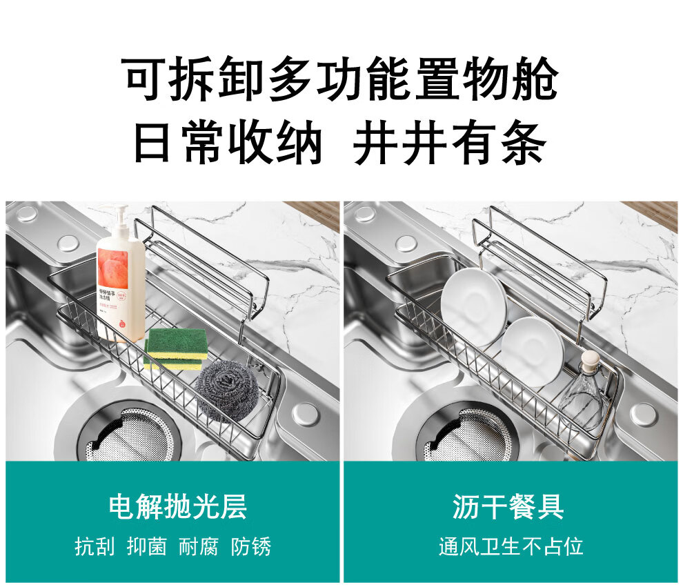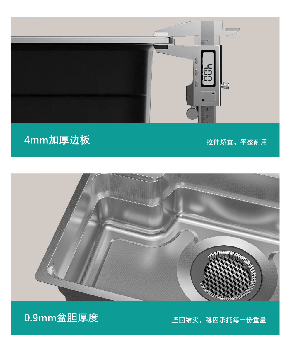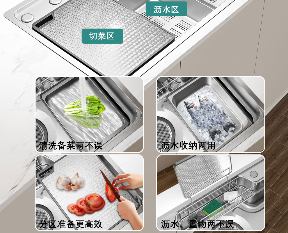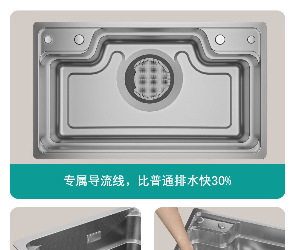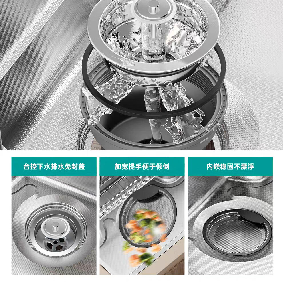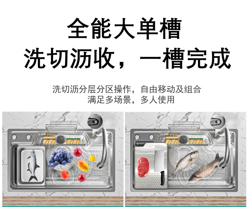 NOEO厨房洗菜盆一体盆304不锈钢厨房多功能洗碗水池加厚4mm水槽大单槽 【国标SUS304不锈钢】68x48:标准版全套