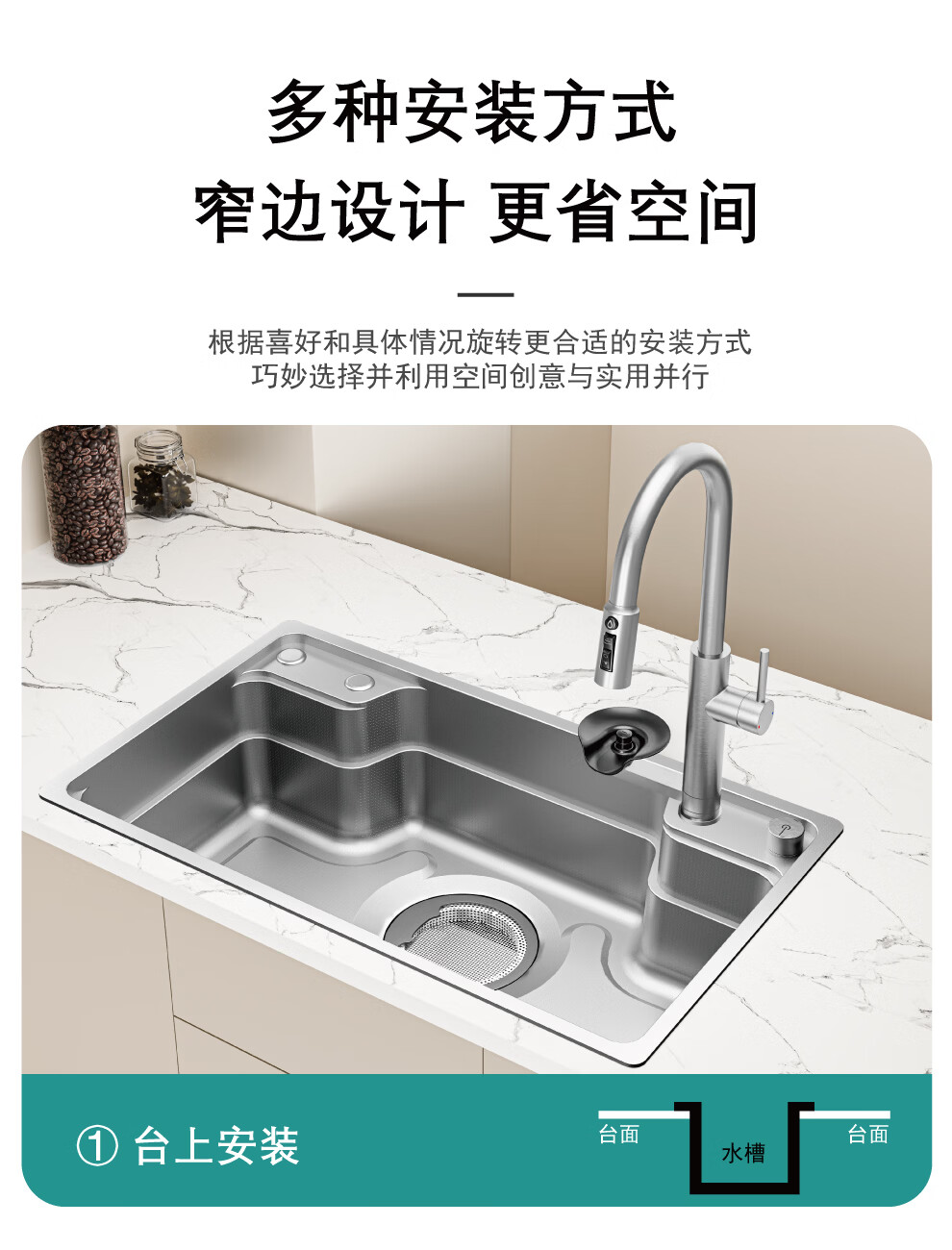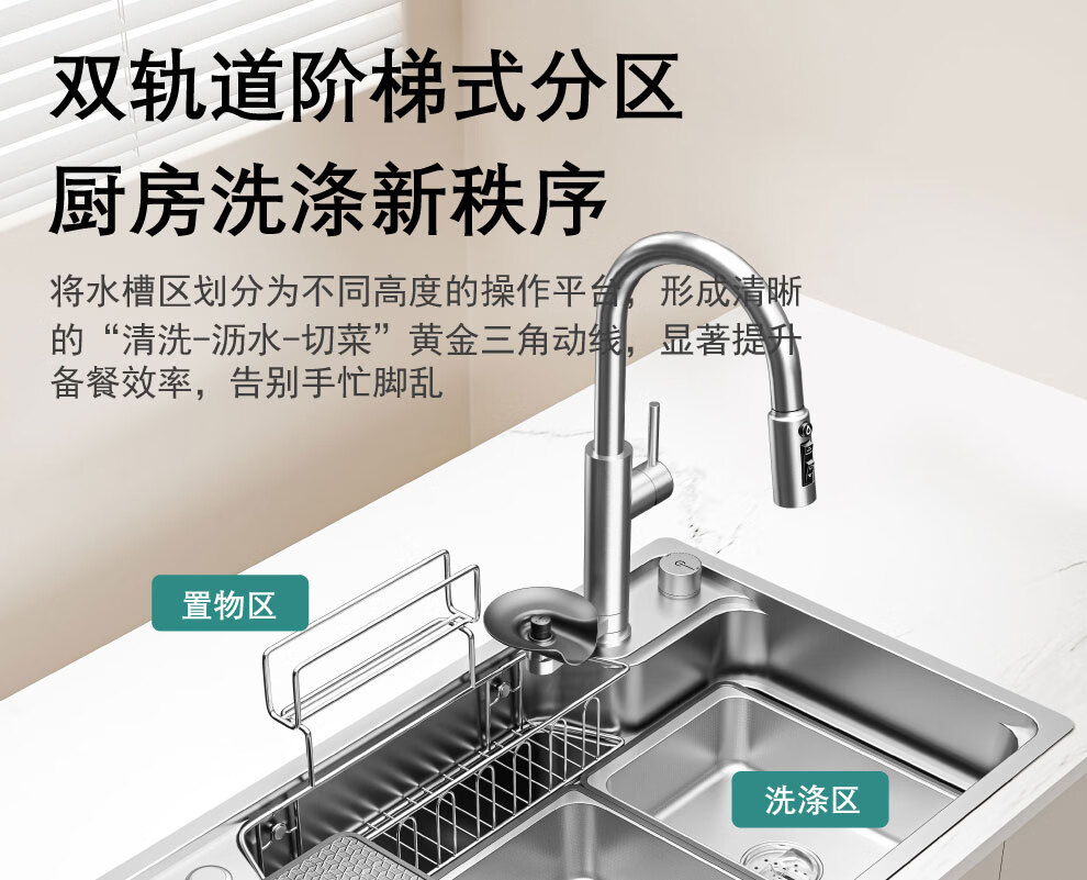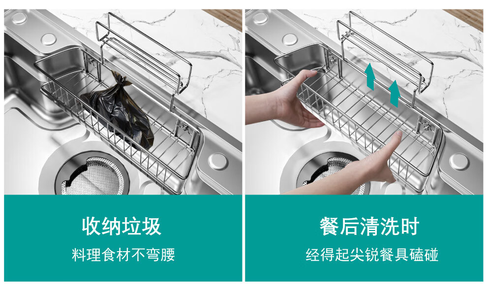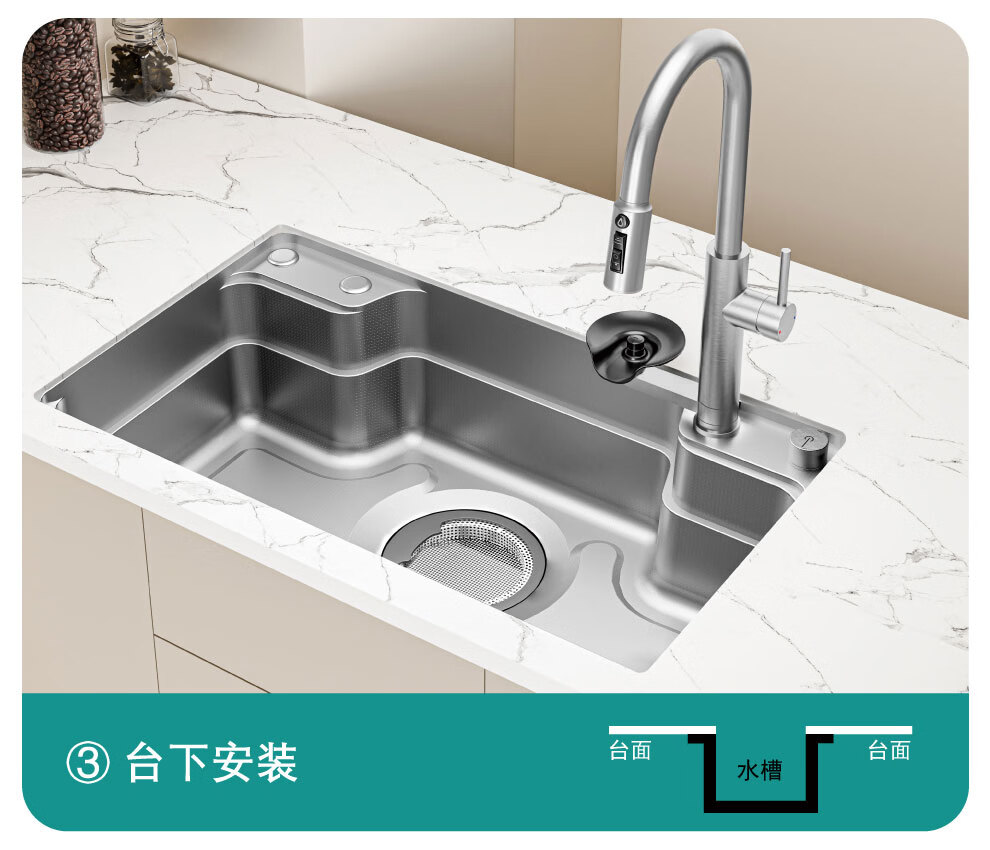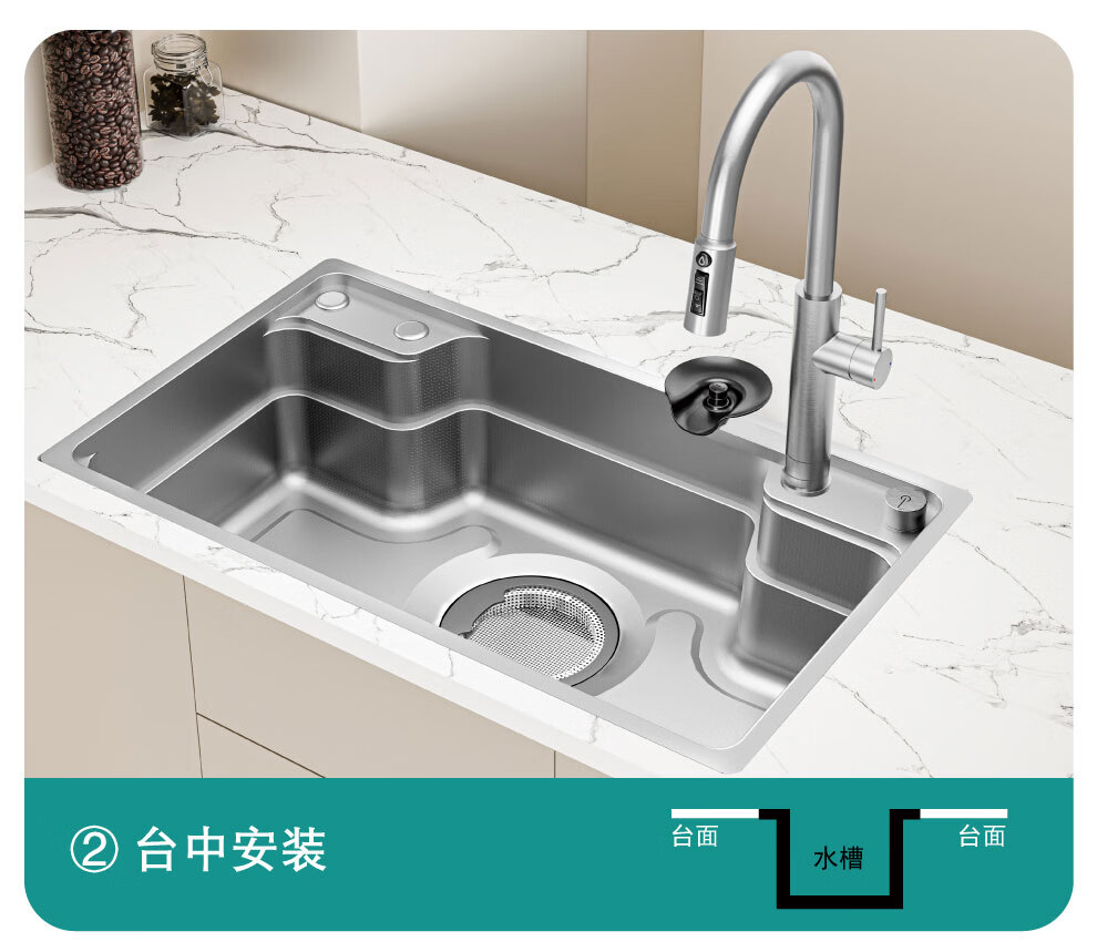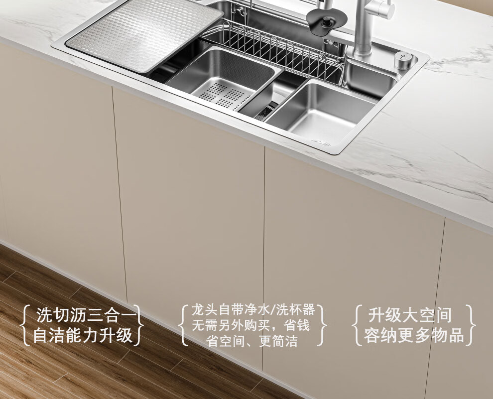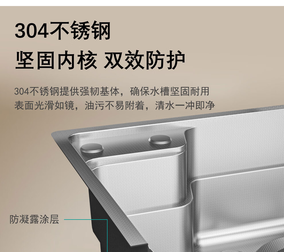 NOEO厨房洗菜盆一体盆304不锈钢厨房多功能洗碗水池加厚4mm水槽大单槽 【国标SUS304不锈钢】68x48:标准版全套