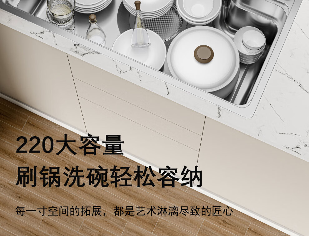 苏泊尔厨房碗碟置物架抽屉收纳盒分隔内置橱柜沥水碗架碗筷盘子拉篮配件 枪灰堆碟架46CM