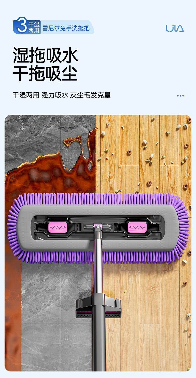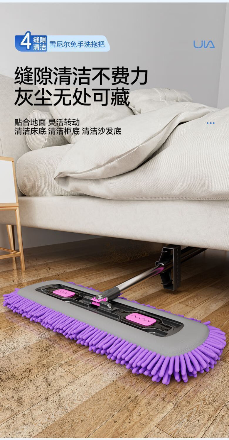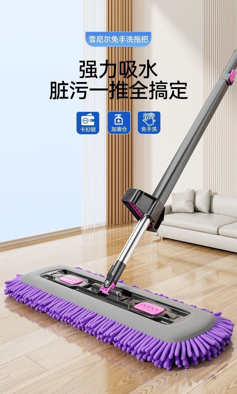 睦格优品加厚雪尼尔平板拖把干湿两用家用吸水一拖净免打孔挂衣钩 【45CM除螨仓面板】配2块雪尼尔布