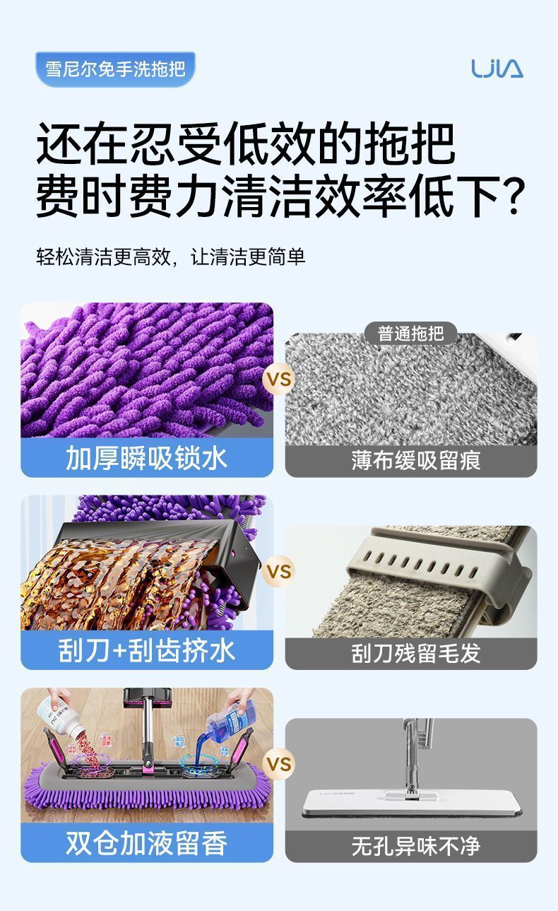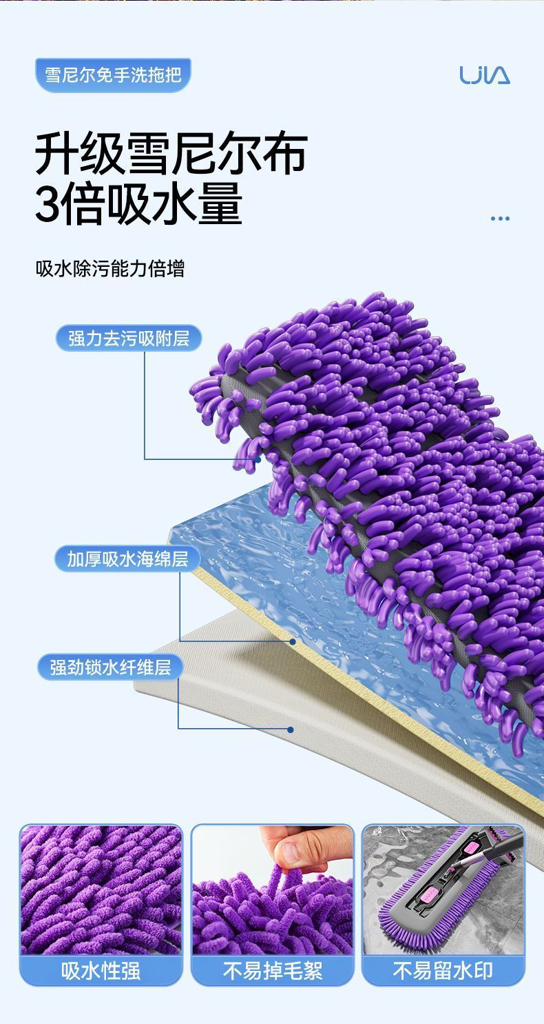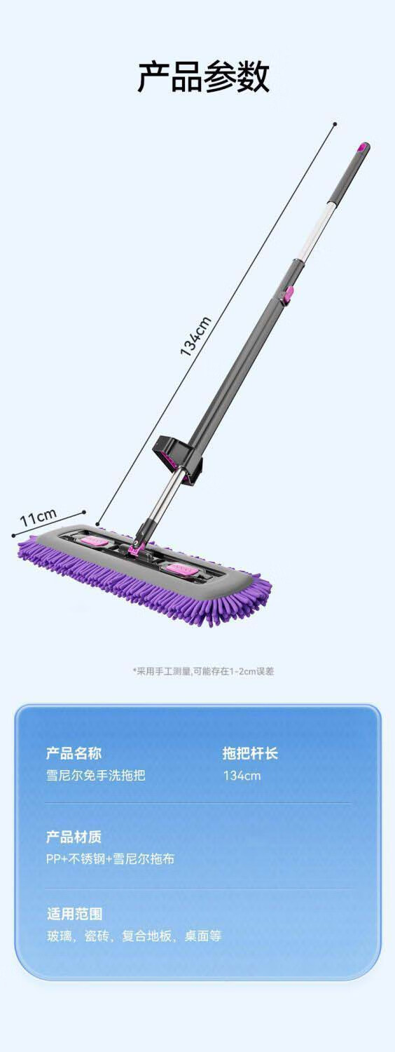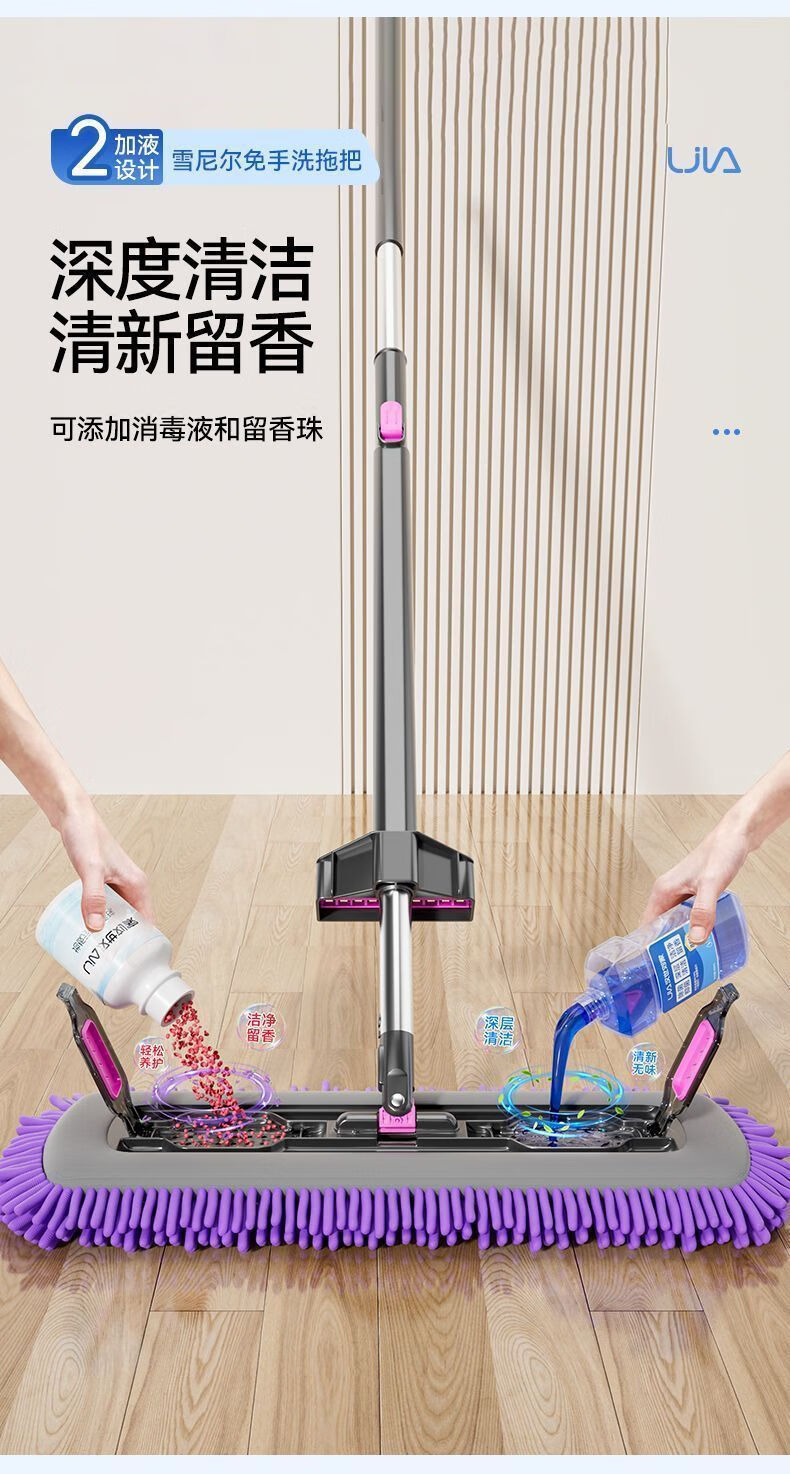 睦格优品加厚雪尼尔平板拖把干湿两用家用吸水一拖净免打孔挂衣钩 【45CM除螨仓面板】配2块雪尼尔布
