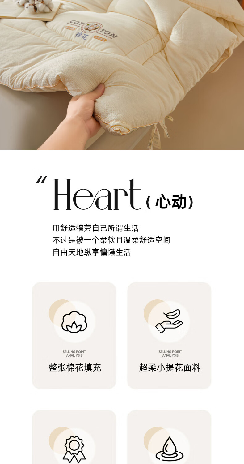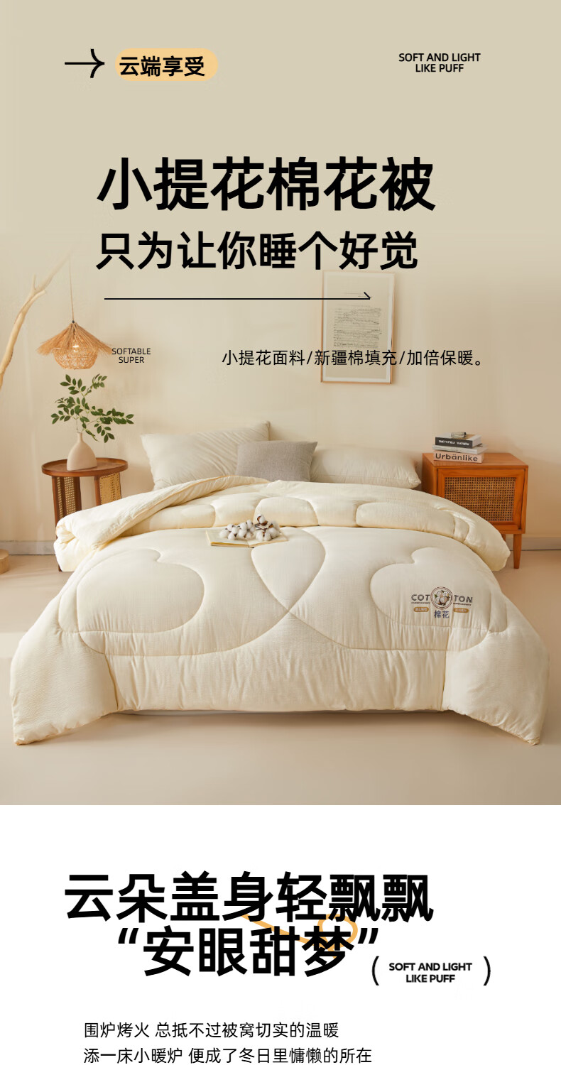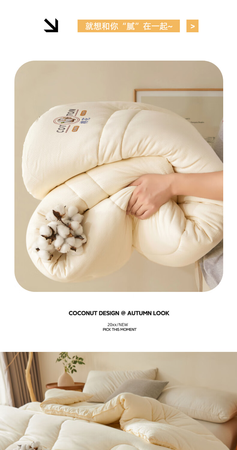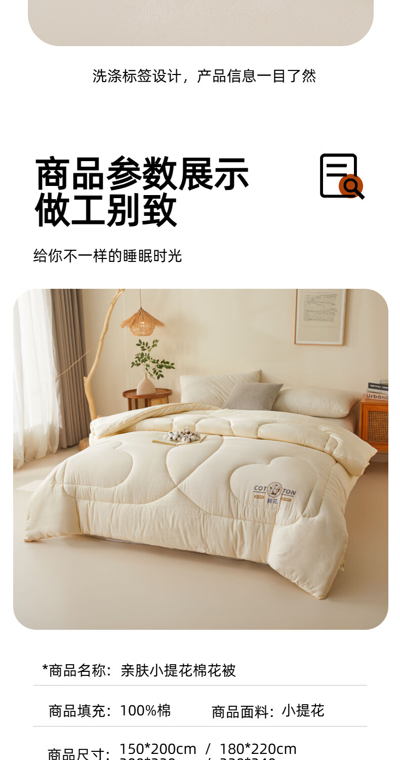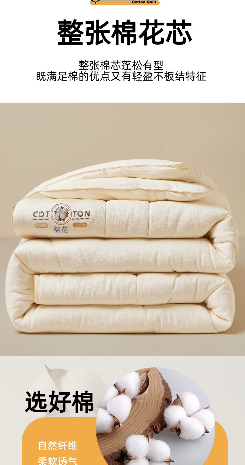 猫人(MiiOW)棉花被子被芯冬被 冬季加厚棉被单双人被褥春秋被 棉语提花被-白 春秋被:150*200cm【约4斤】