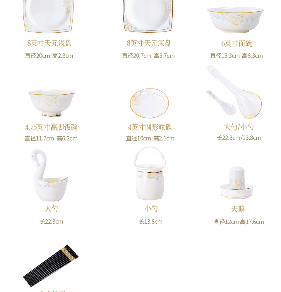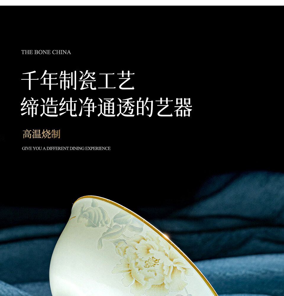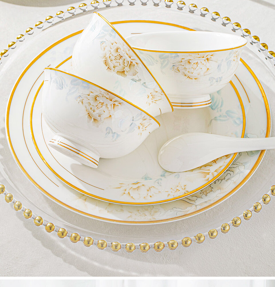 精缔陶瓷JINGDI 碗盘餐具整套景德镇高档中式骨瓷餐具套装陶瓷碗盘碟筷整套送礼 圆形标准配大汤碗 66件套