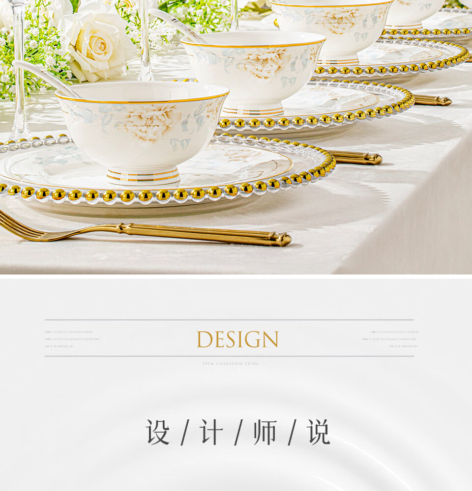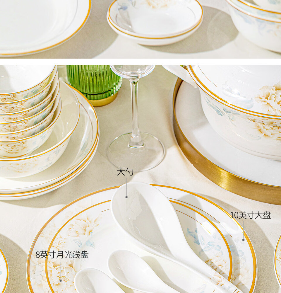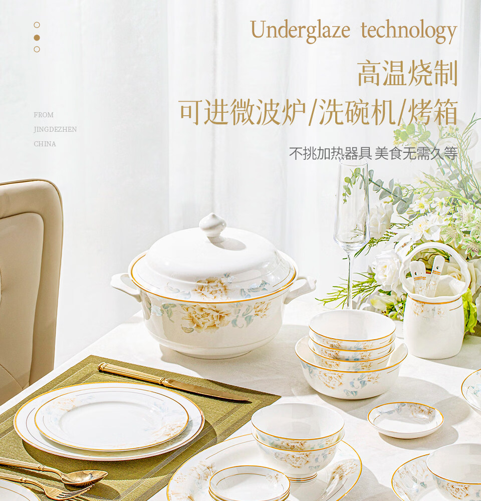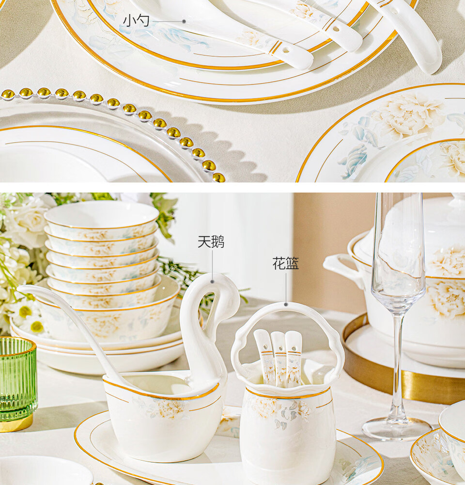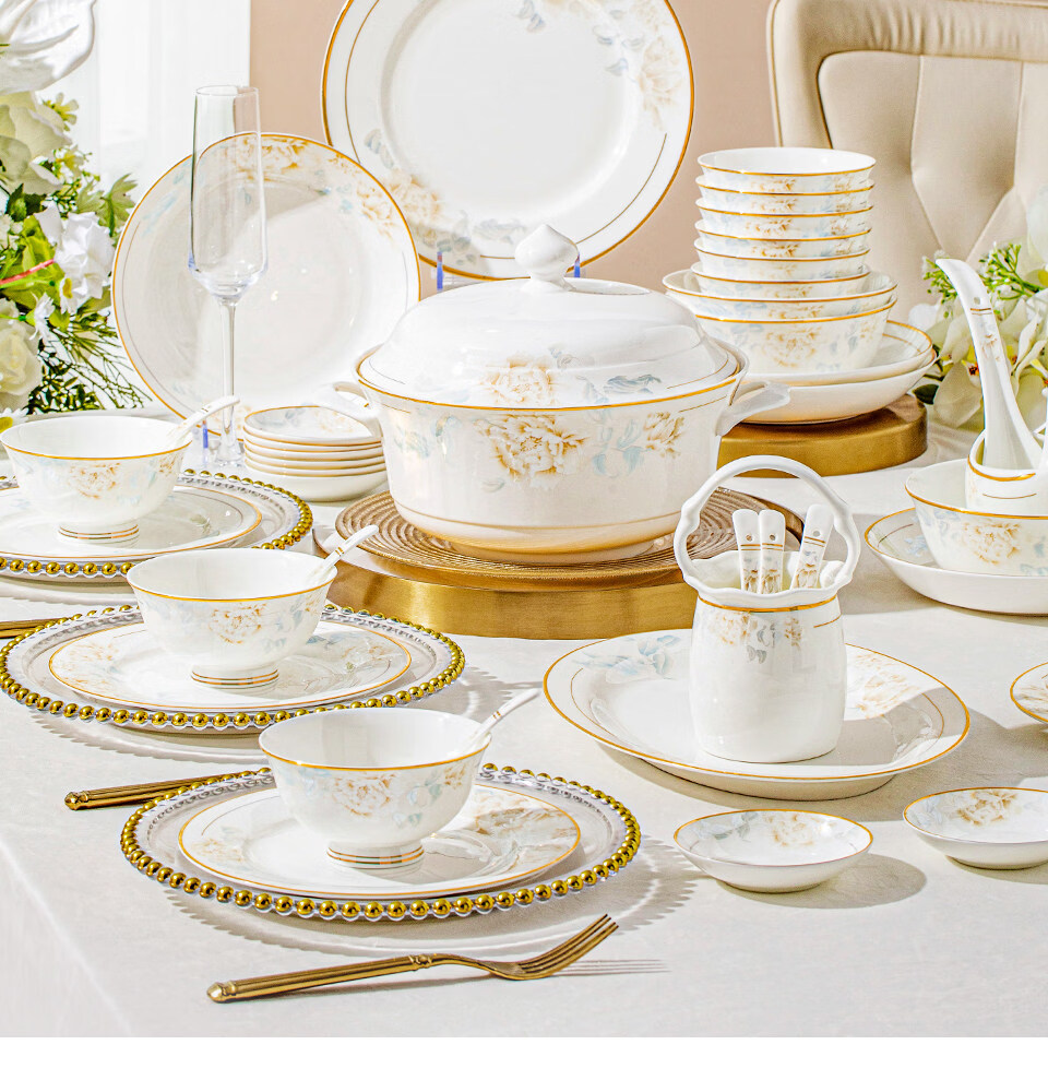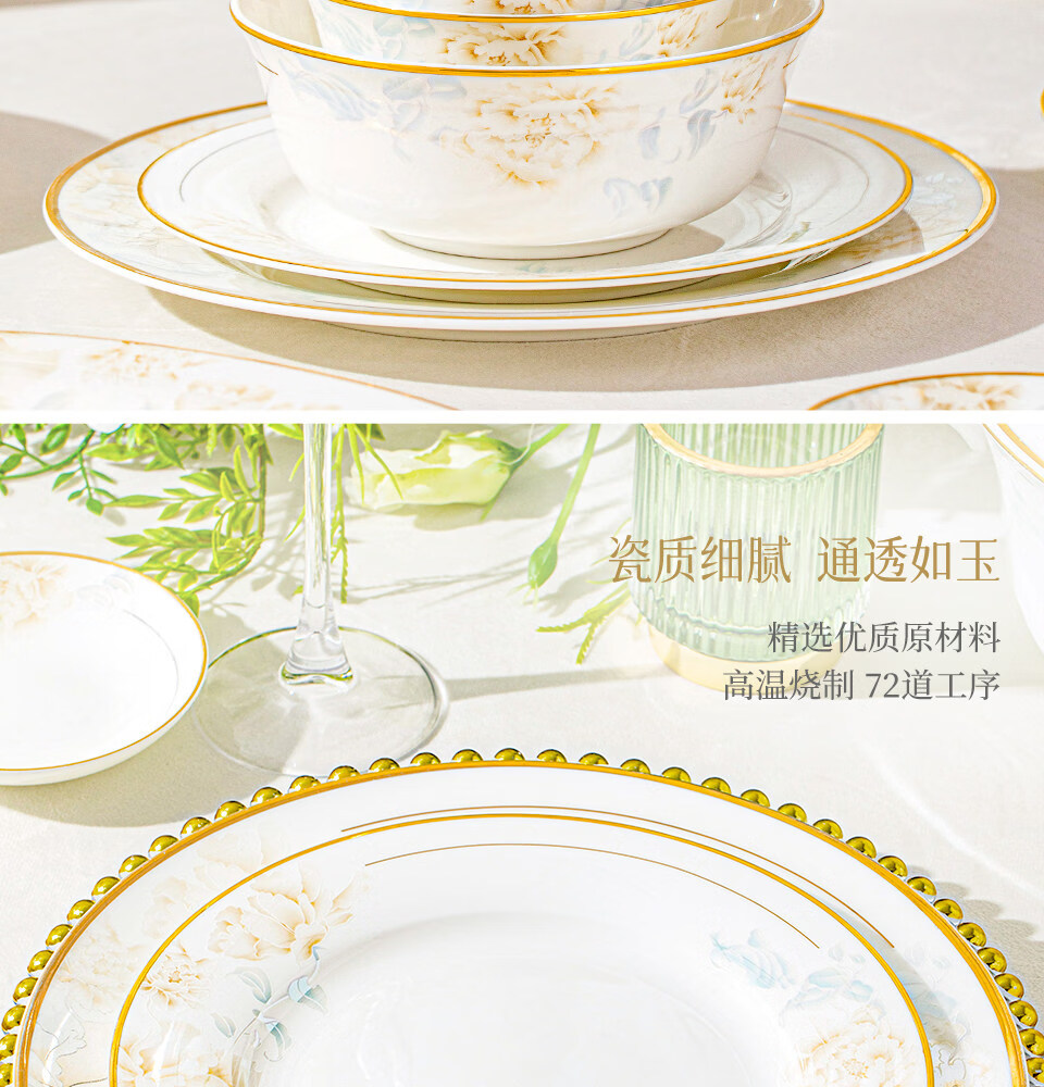 精缔陶瓷JINGDI2025新款碗碟套装家用碗筷乔迁高温骨瓷餐具套装景德镇陶瓷碗盘子 【店长推荐】66件升级配大汤碗 66件套