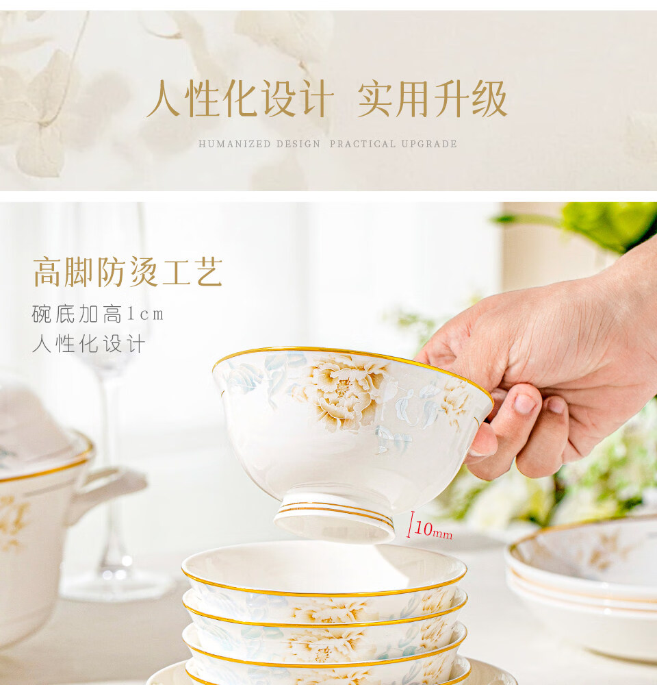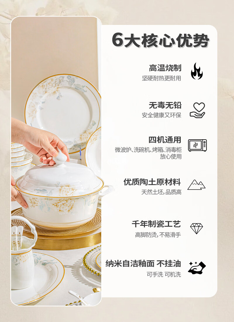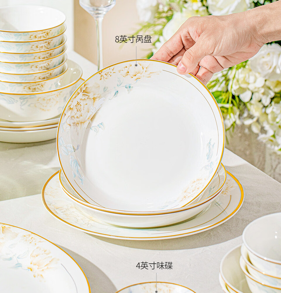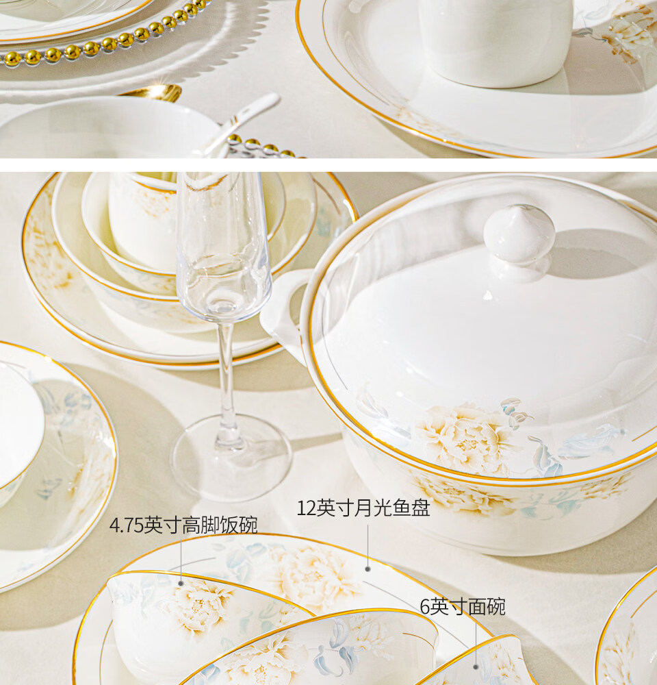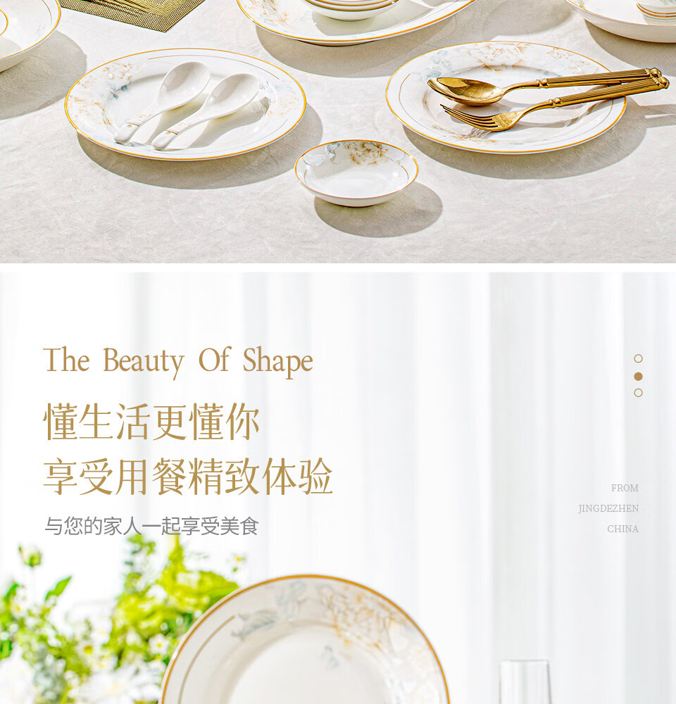 精缔陶瓷JINGDI2025新款碗碟套装家用碗筷乔迁高温骨瓷餐具套装景德镇陶瓷碗盘子 【店长推荐】66件升级配大汤碗 66件套