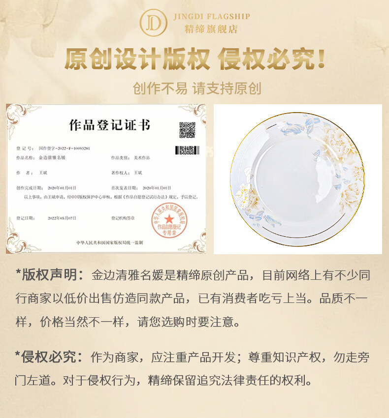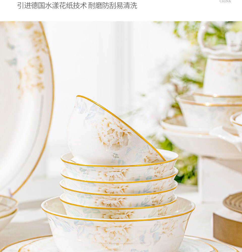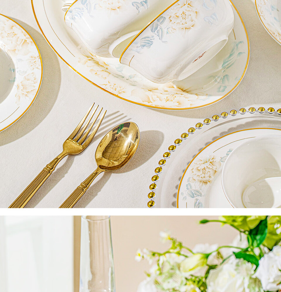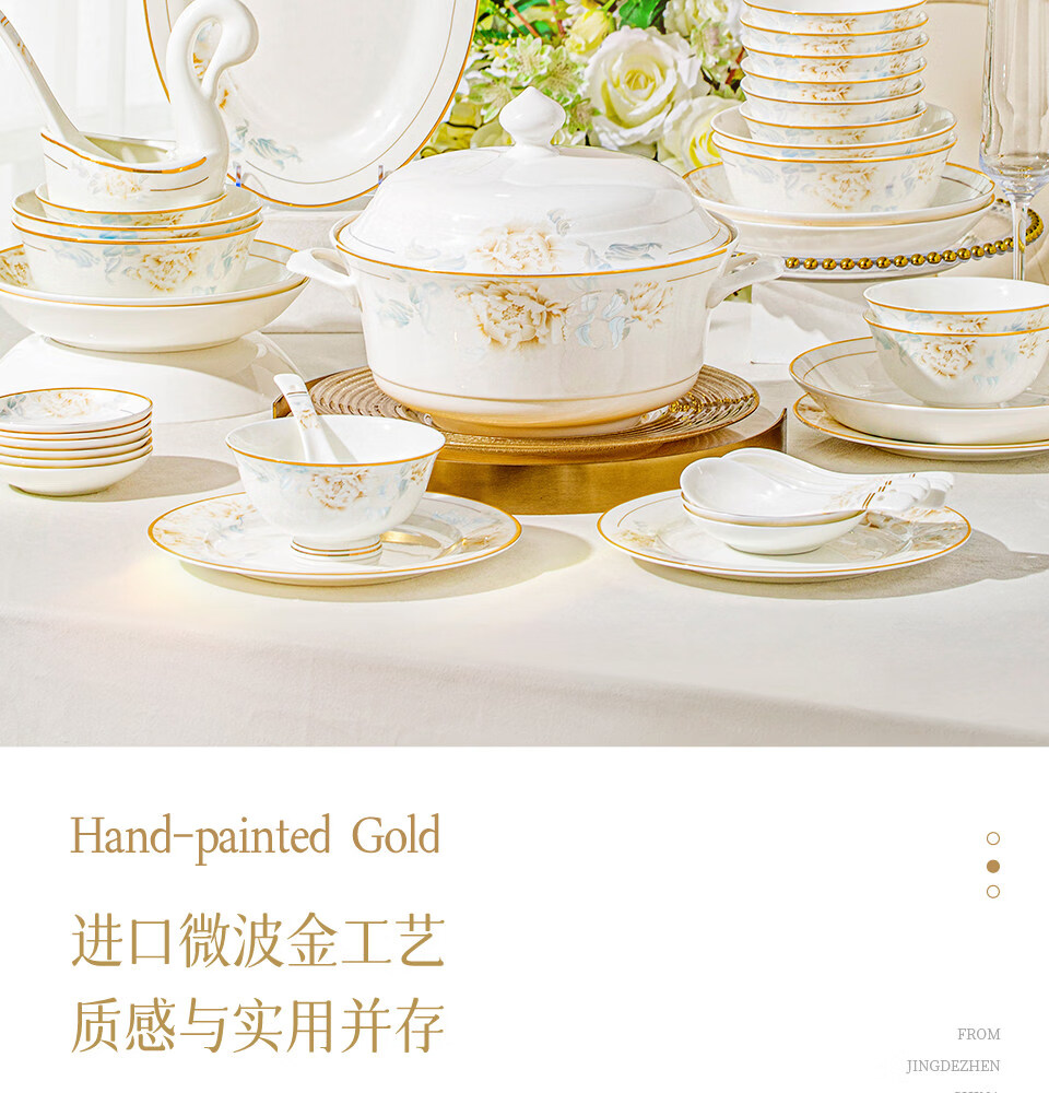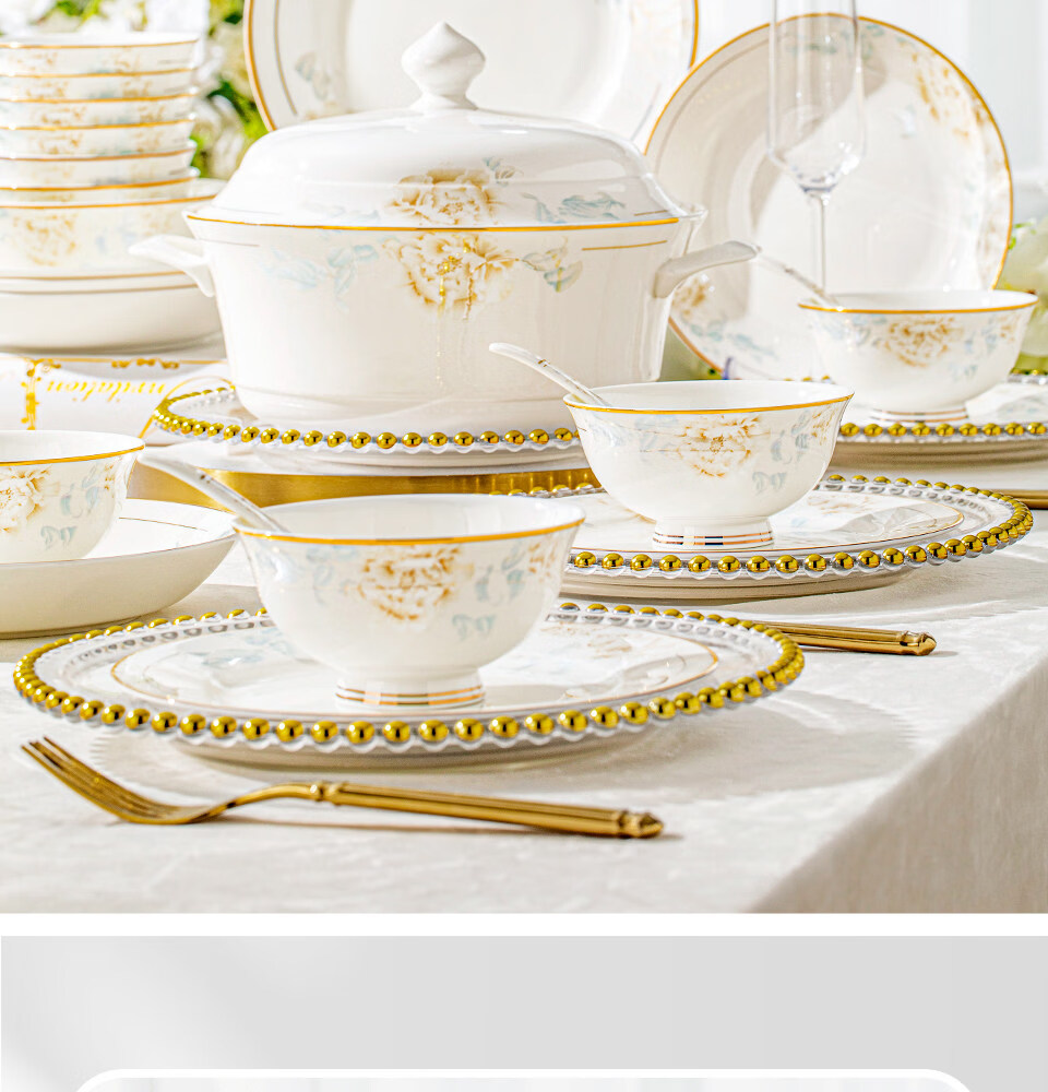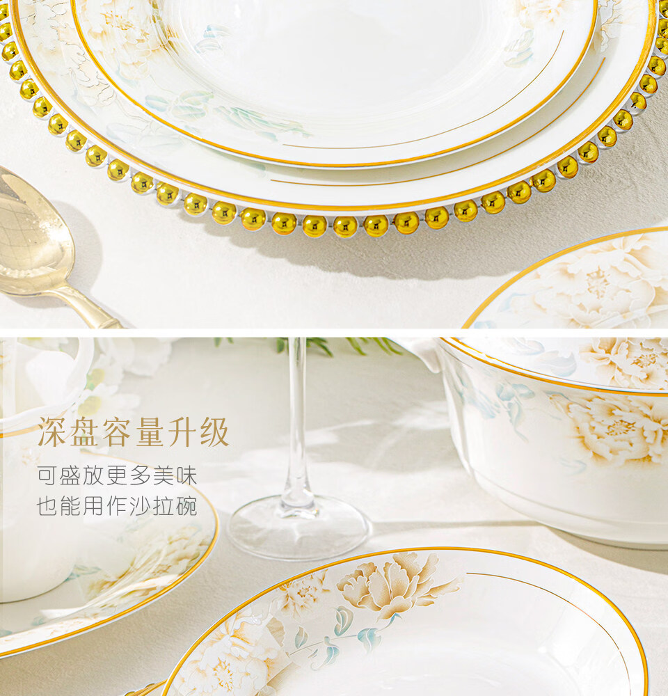 精缔陶瓷JINGDI2025新款碗碟套装家用碗筷乔迁高温骨瓷餐具套装景德镇陶瓷碗盘子 【店长推荐】66件升级配大汤碗 66件套