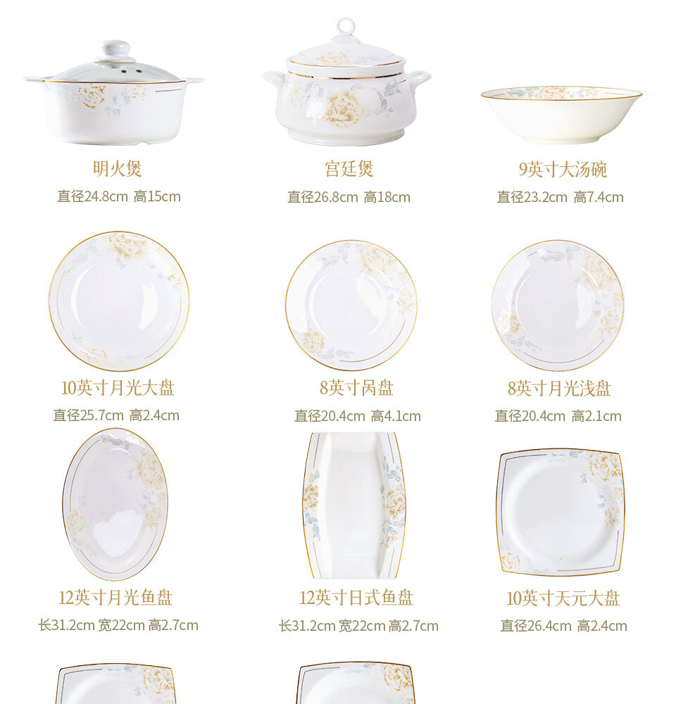 精缔陶瓷JINGDI景德镇碗家用2025新款轻奢高颜值碗碟套装家用陶瓷餐具乔迁新居 【店长推荐】升级配富贵煲 66件套