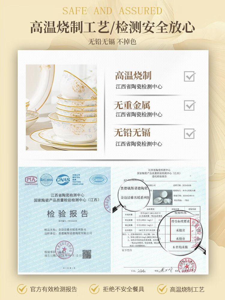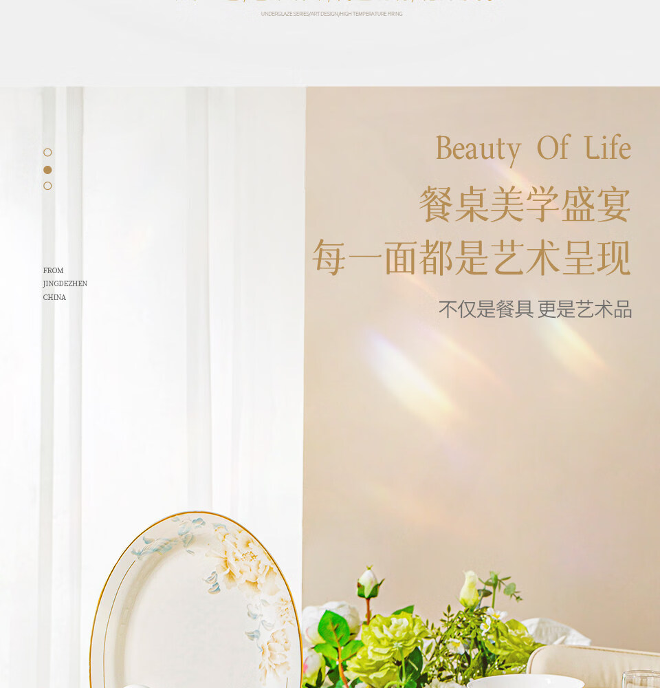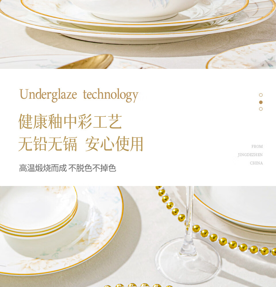 精缔陶瓷JINGDI碗家用2026新款碗筷景德镇骨瓷碗碟套装家用陶瓷餐具套装碗盘乔迁 【景德镇正品】绿瑾31件配大汤碗原创正品保障 31件套