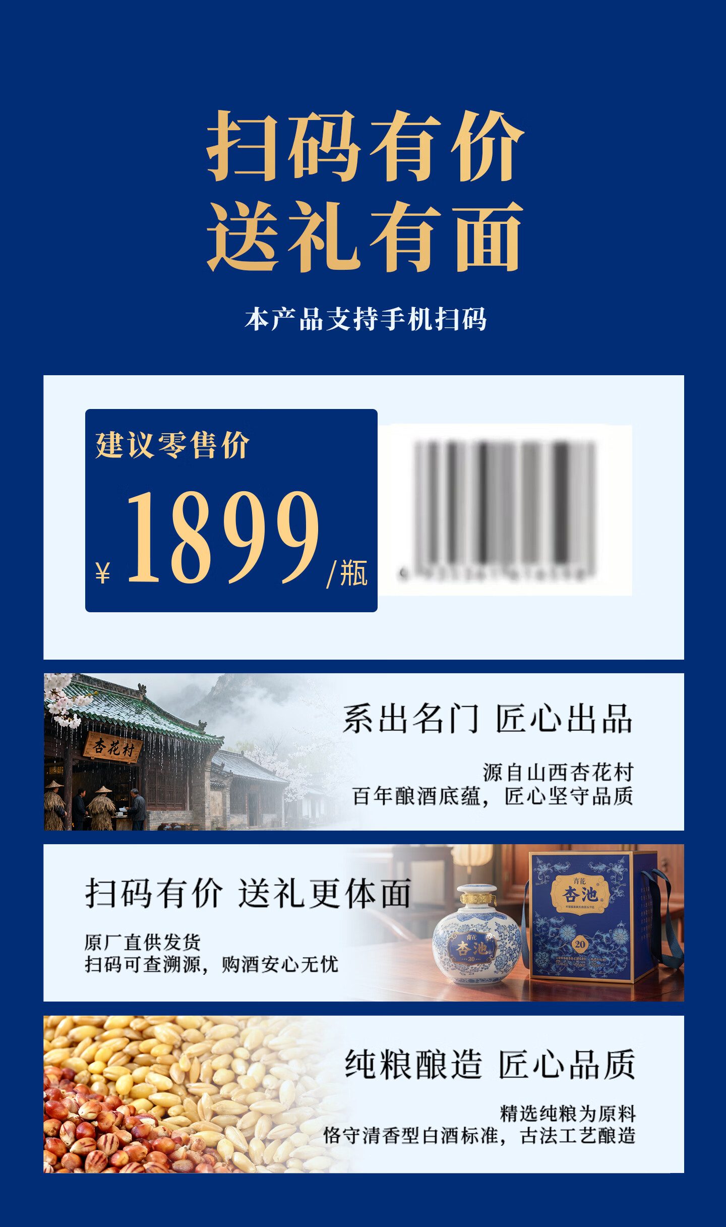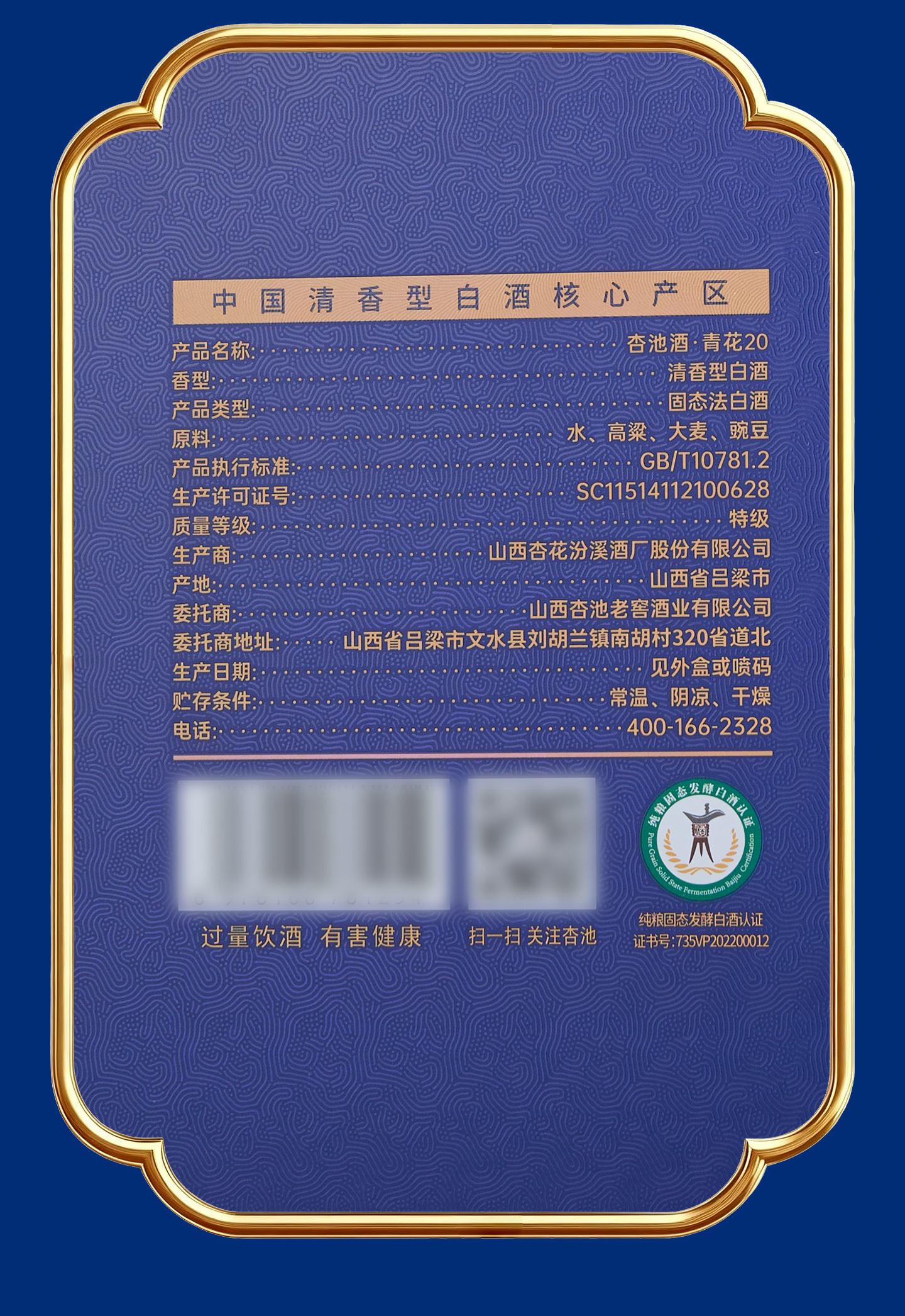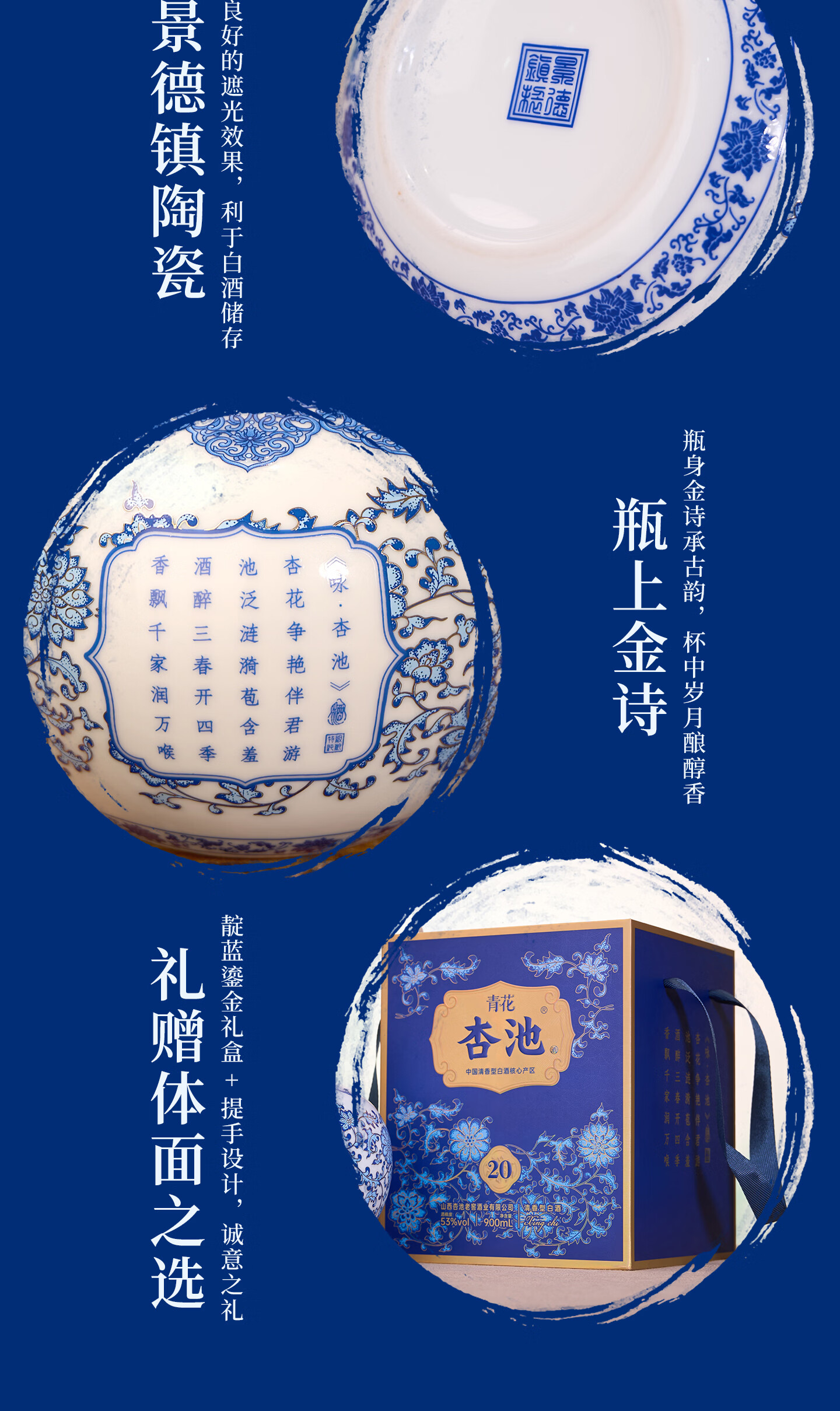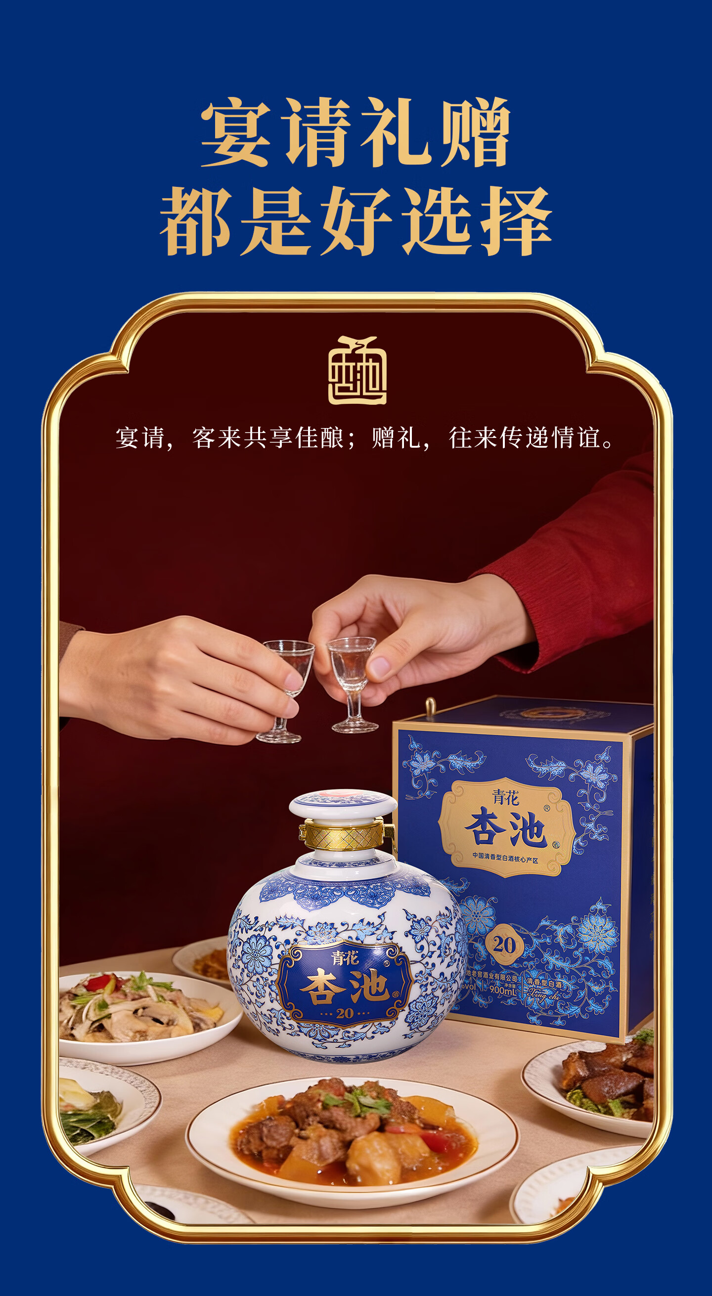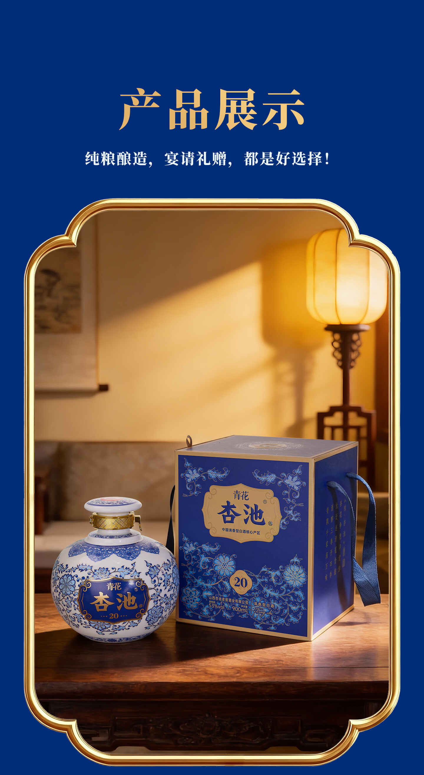 杏池青花20白酒清香型53度900ml固态纯粮酒 商务宴请送礼收藏马年白酒 53度 900mL 2瓶 青花20适合送礼