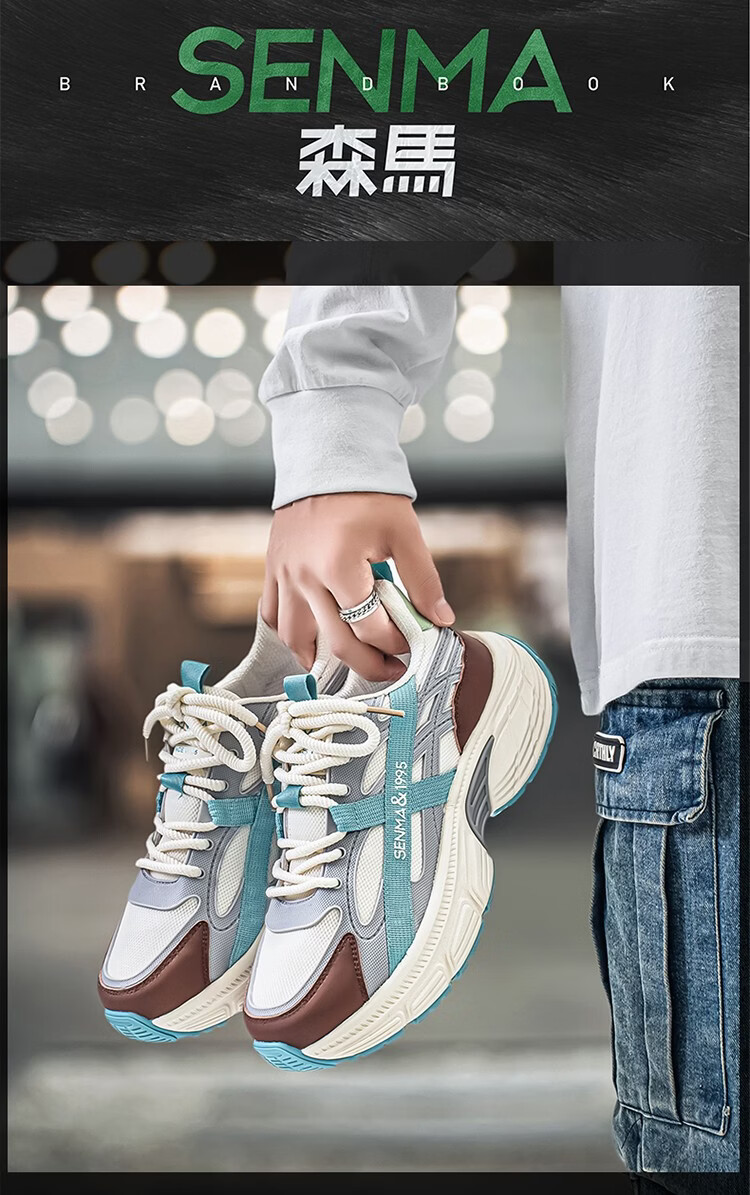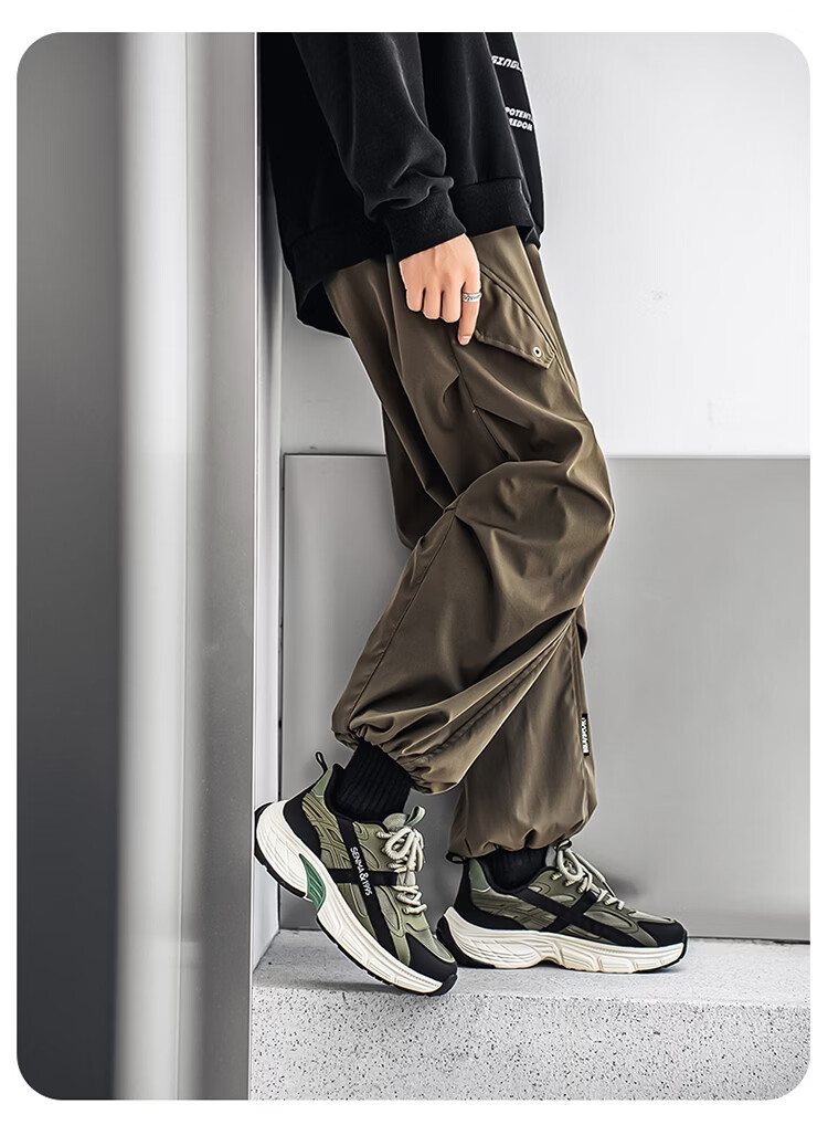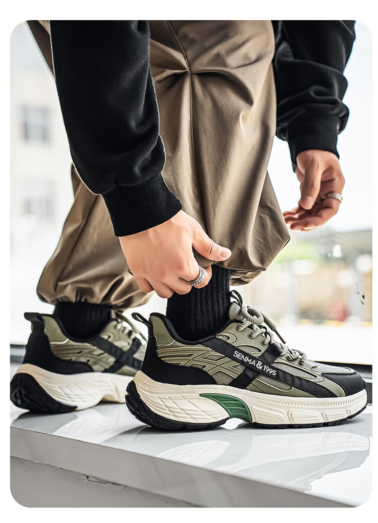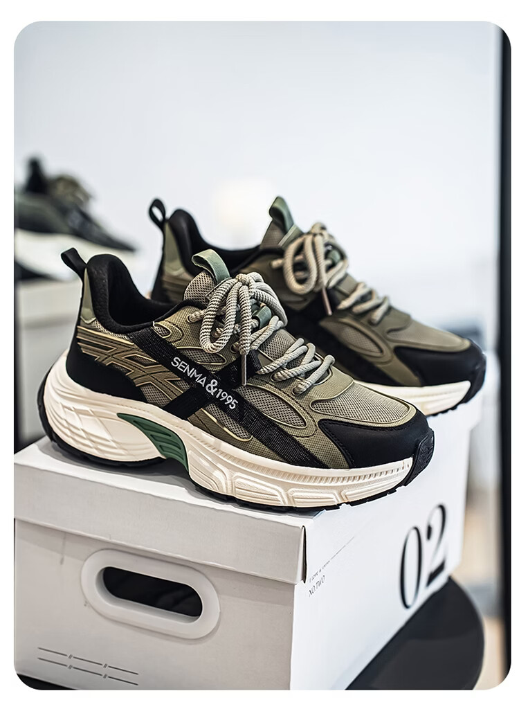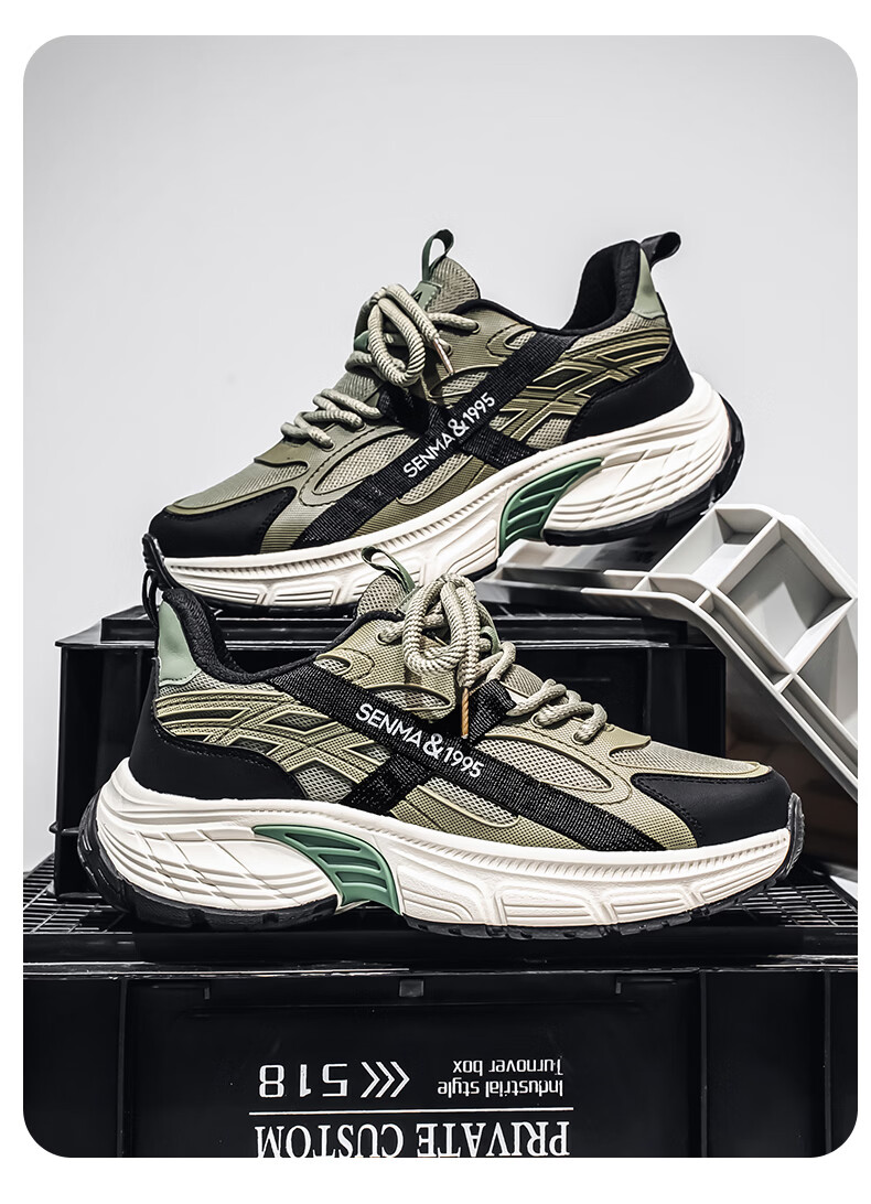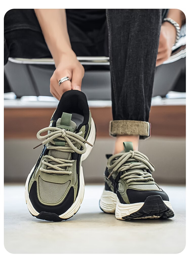 森馬男鞋春季2026年新款户外休闲运动登山鞋男士厚底防滑耐磨老爹潮鞋 军绿【基础款】 39 标准码数/现货秒发