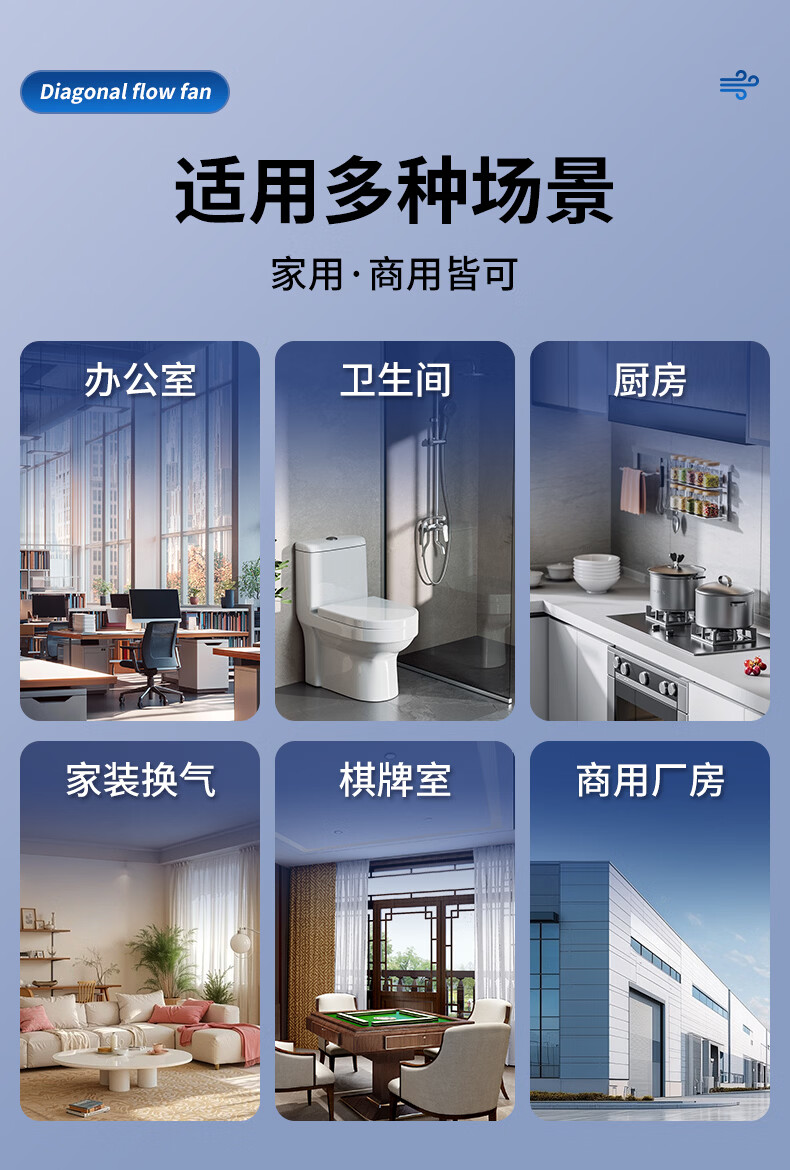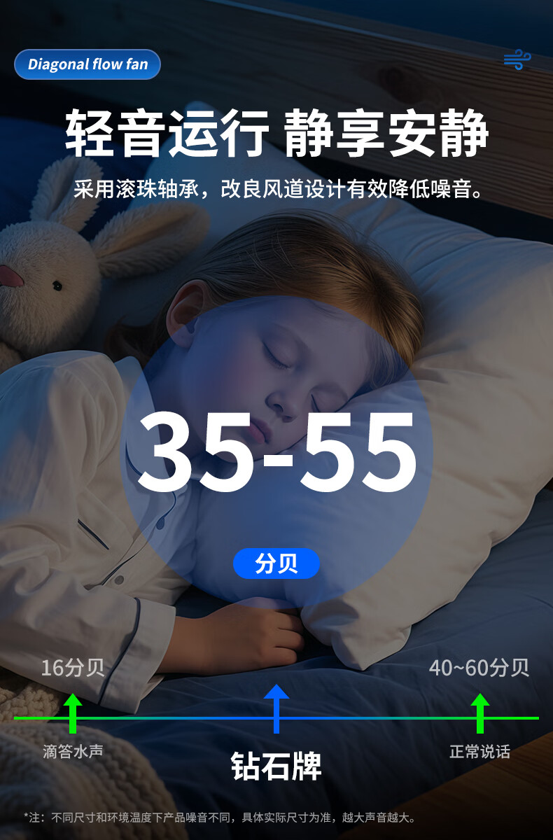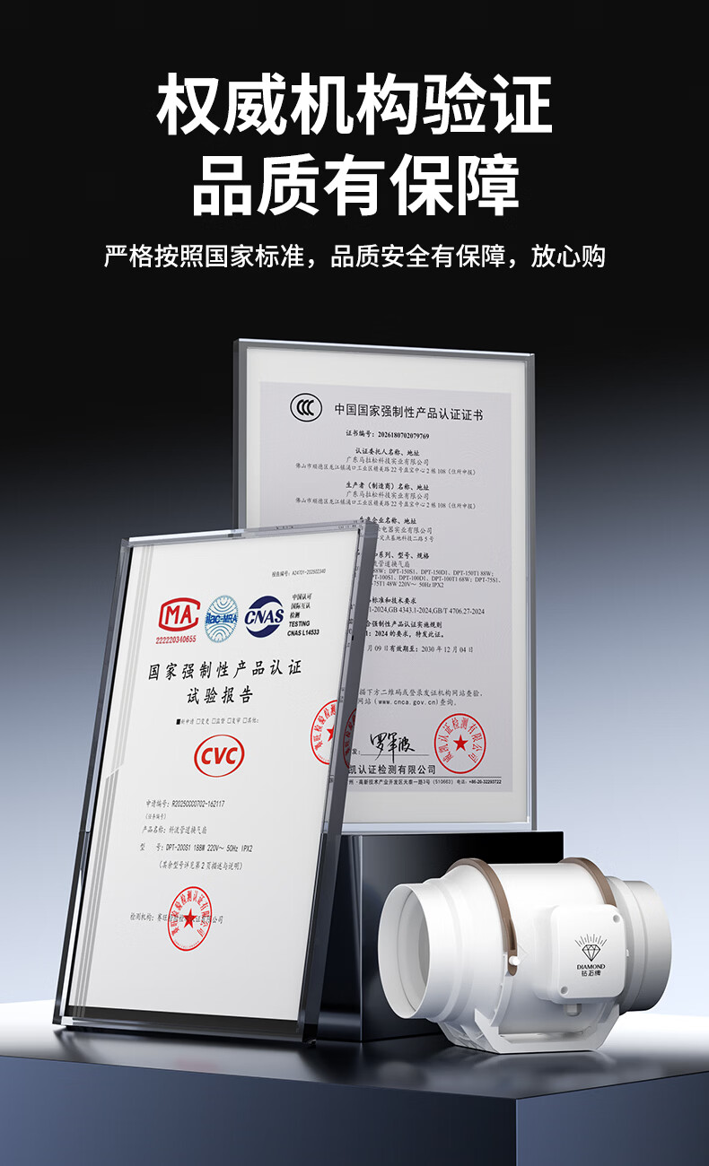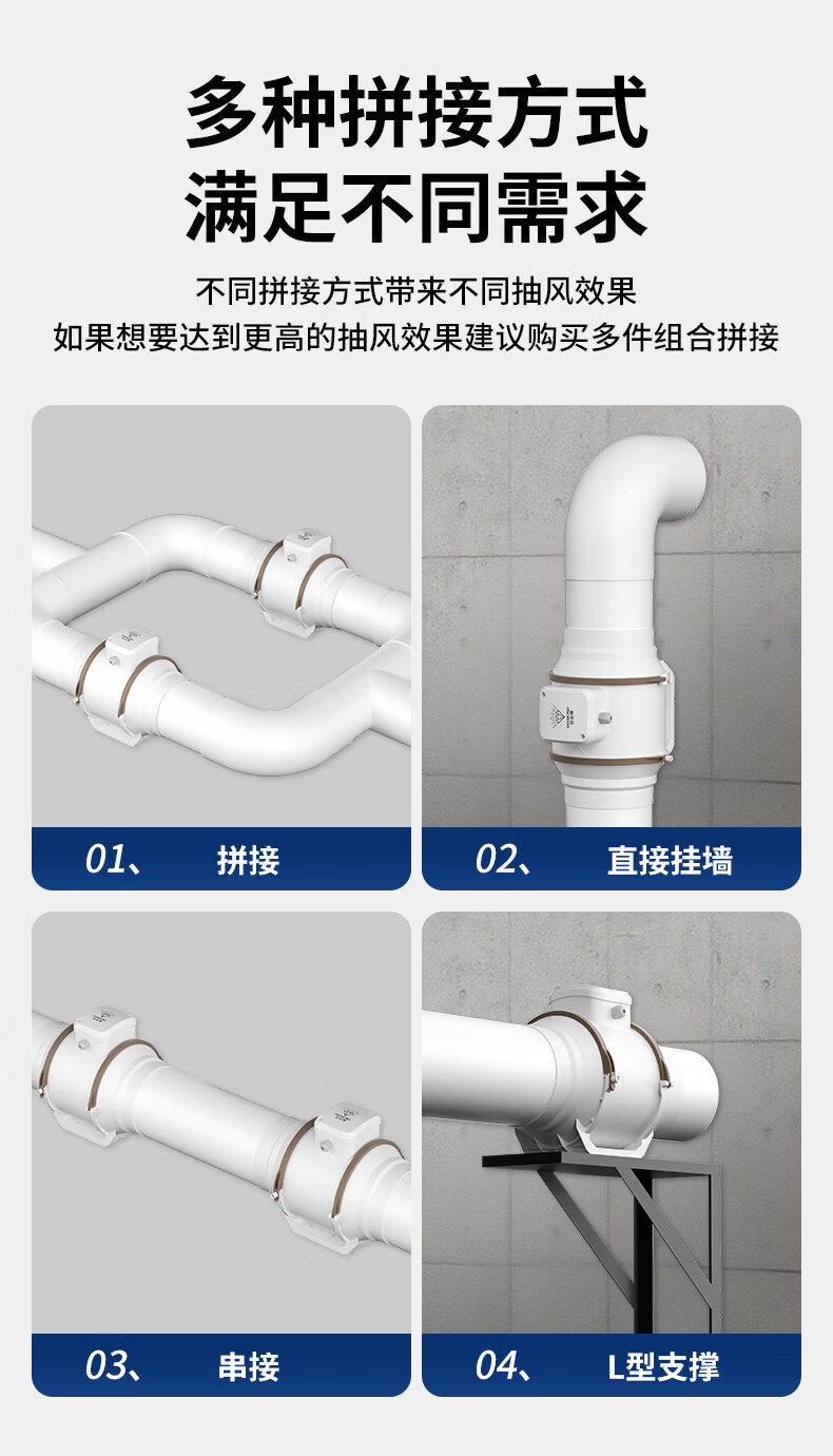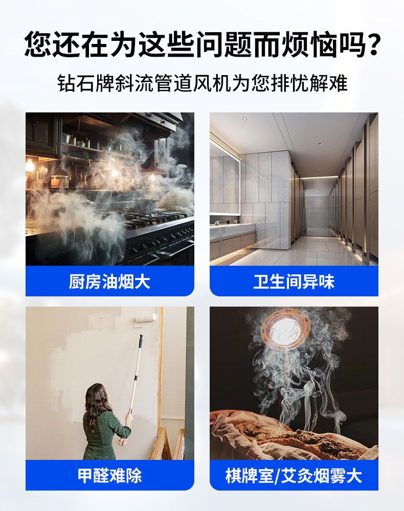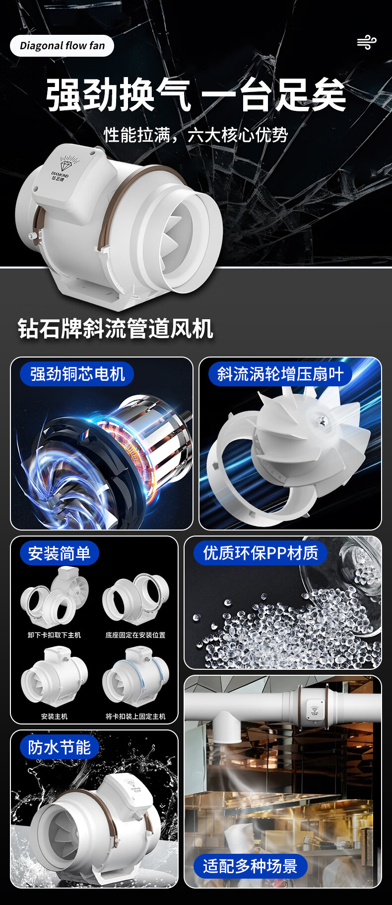 钻石牌管道抽风机排风扇超强大吸力轴流风机排风机斜流涡轮通风厨房专用 4寸棕白色 单速插电款
