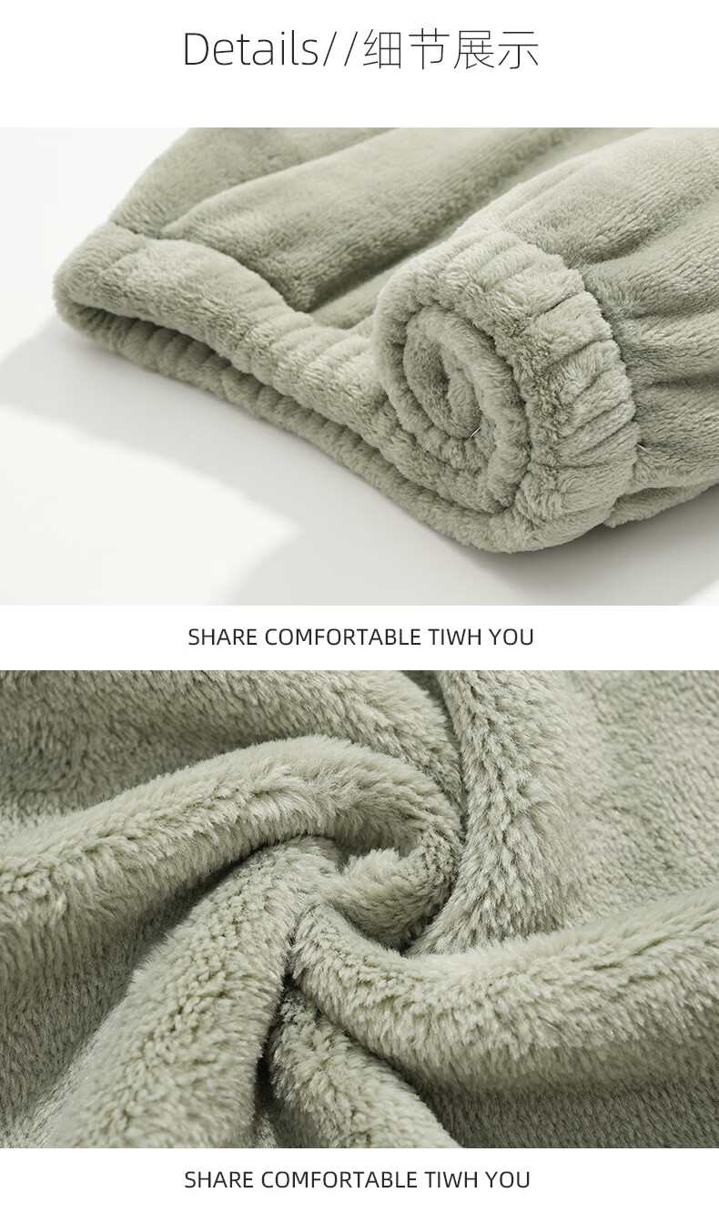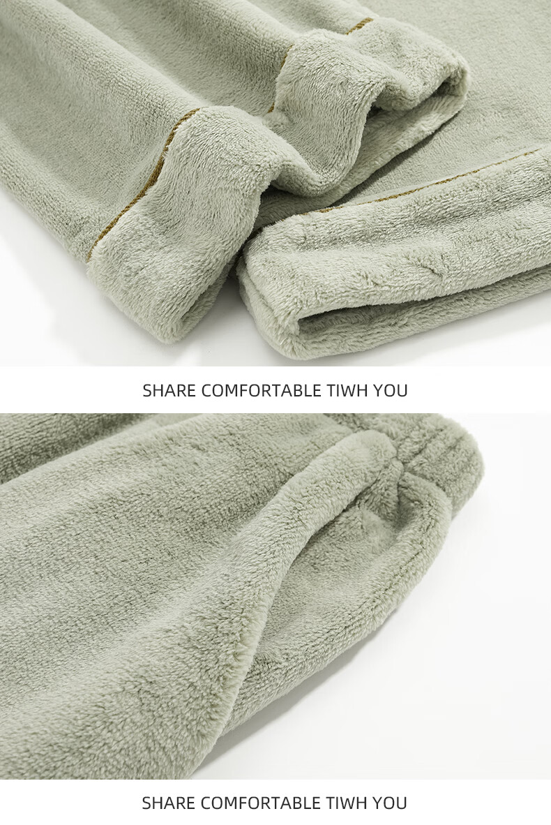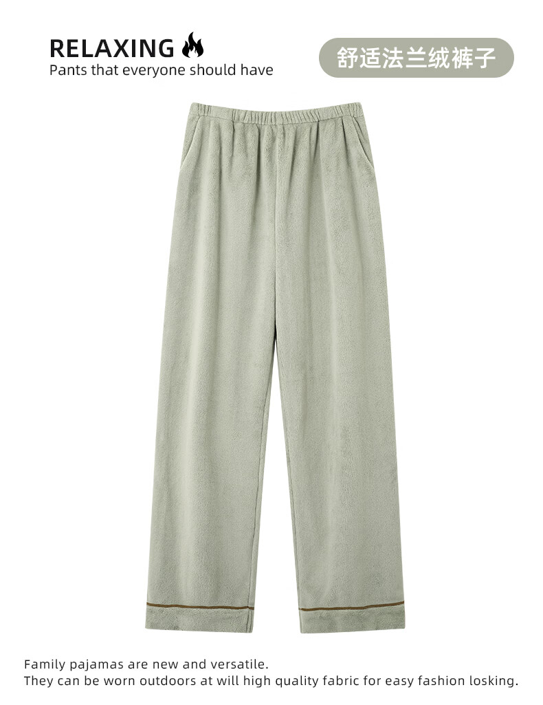 允织法兰绒睡裤男冬季加厚加绒宽松大码冬天家居珊瑚绒裤子单件可外穿 3901-松霜绿 L (165) :建议110-140斤穿着