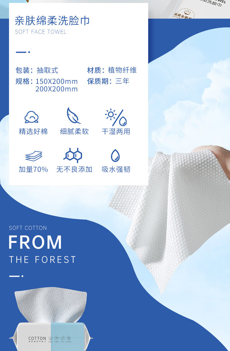 【精选】棉柔巾面巾洗脸巾一次性棉加厚抽取式院擦脸卸妆纯洁面巾 1包【家用装】15*20cm