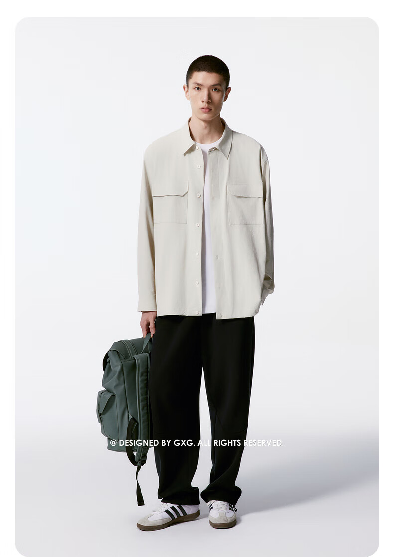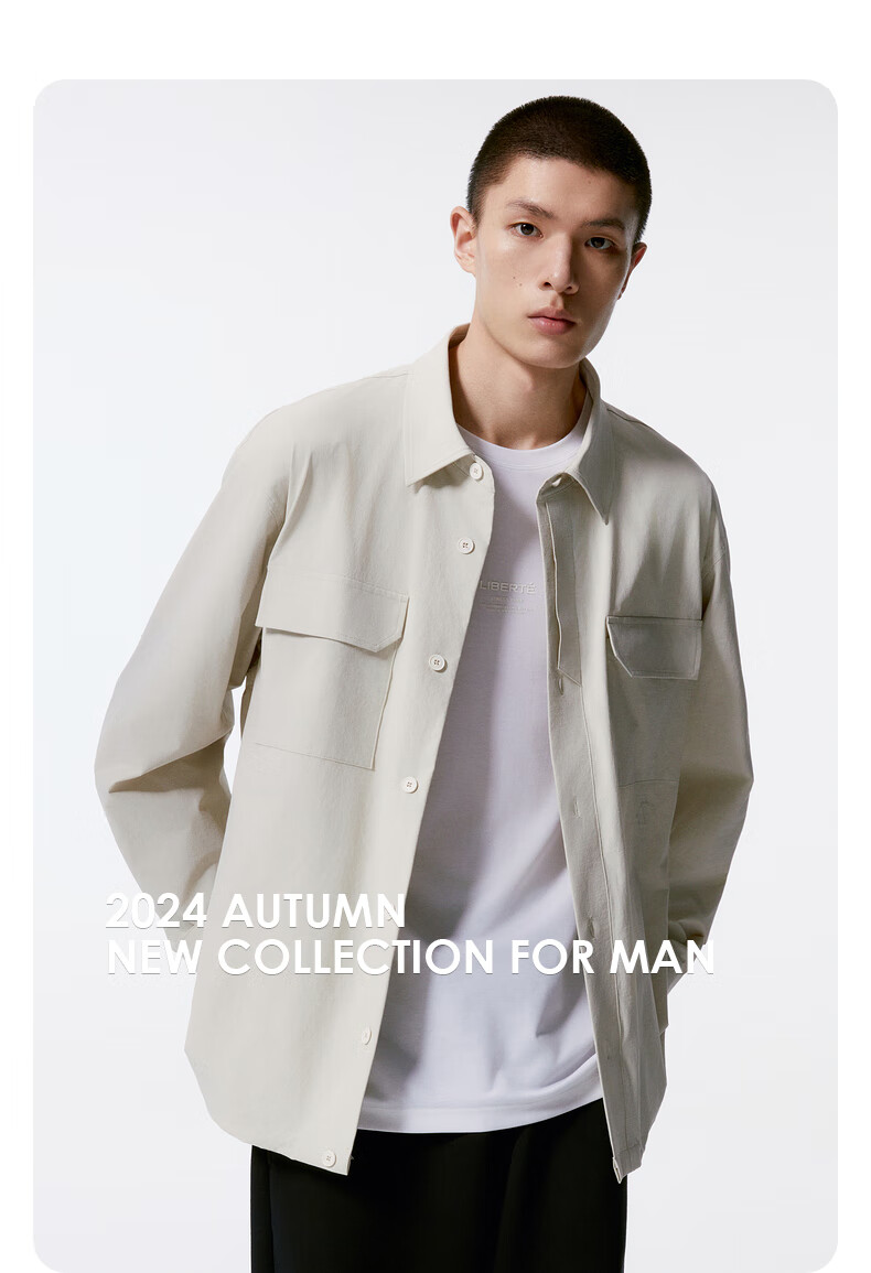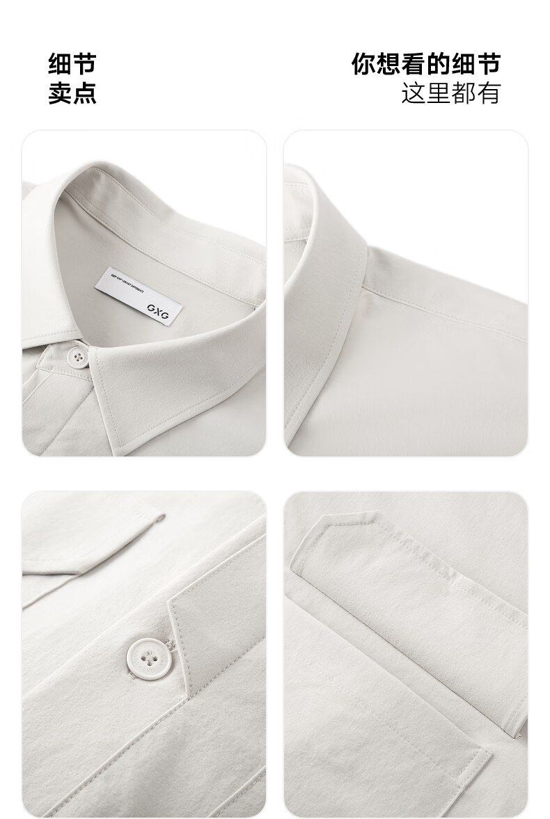 GXG男装米白色翻领长袖衬衫外套男24秋新品 米白 170/M