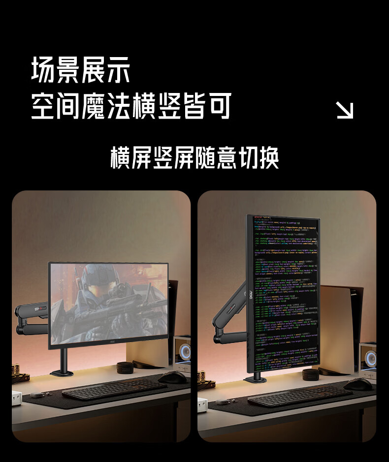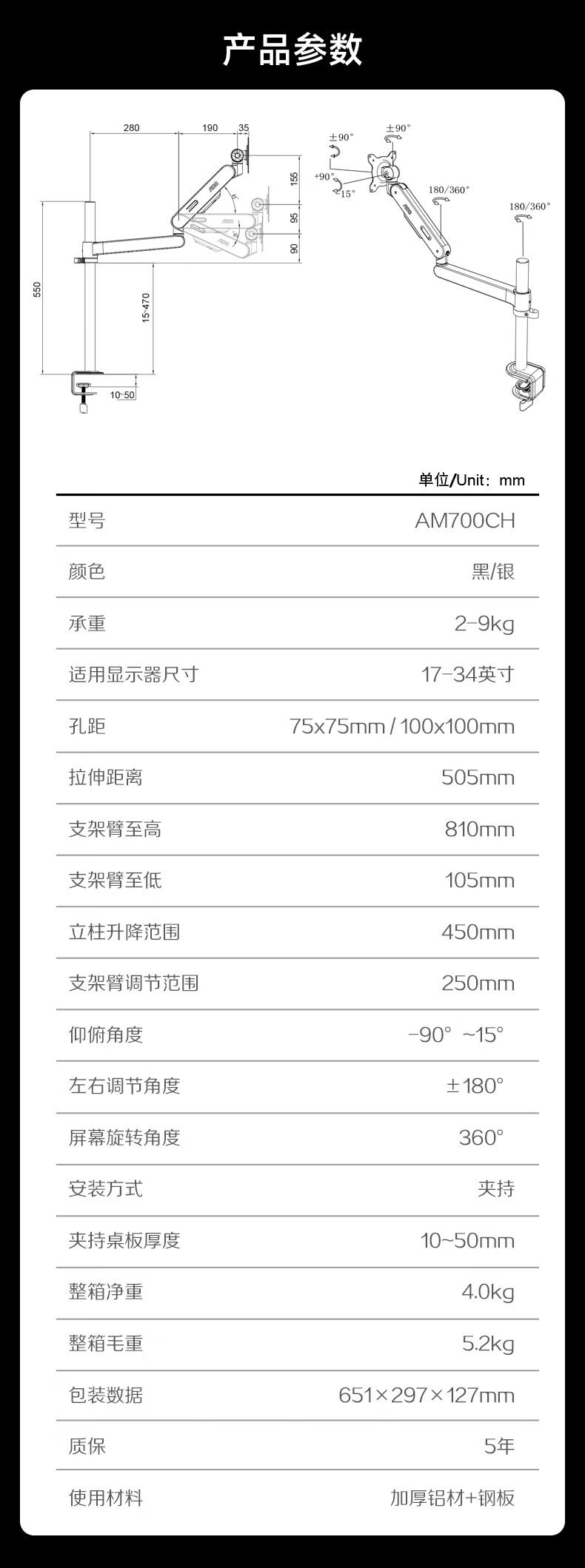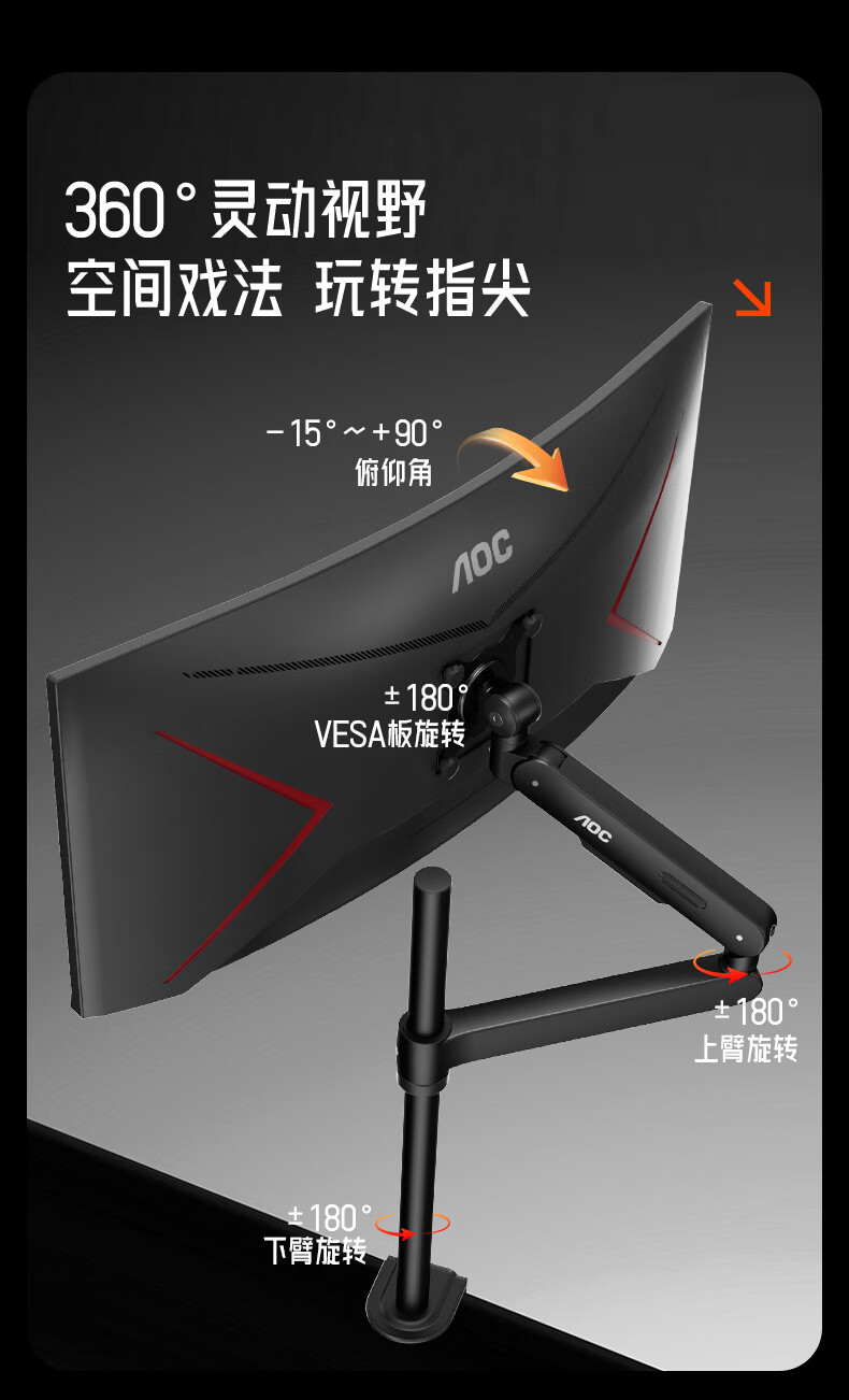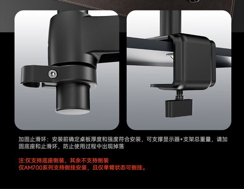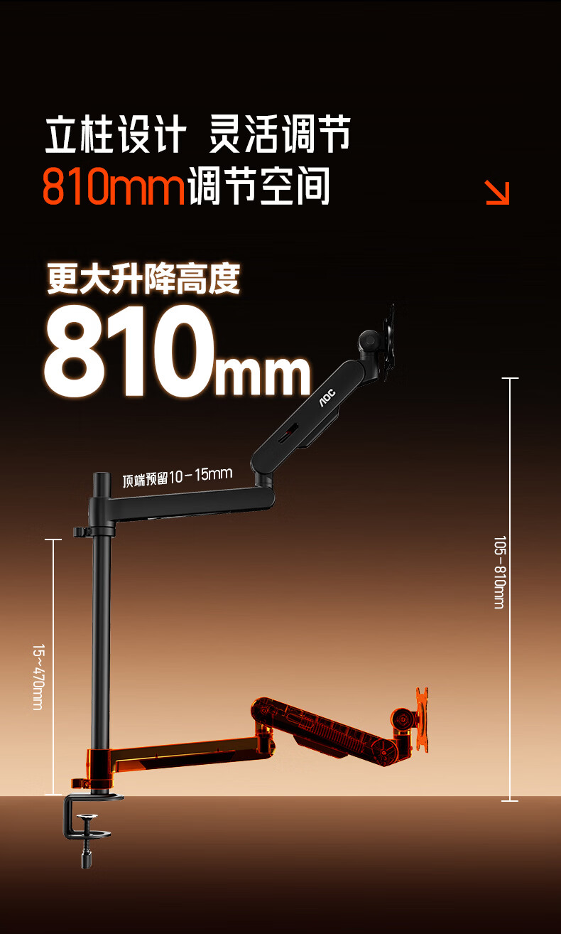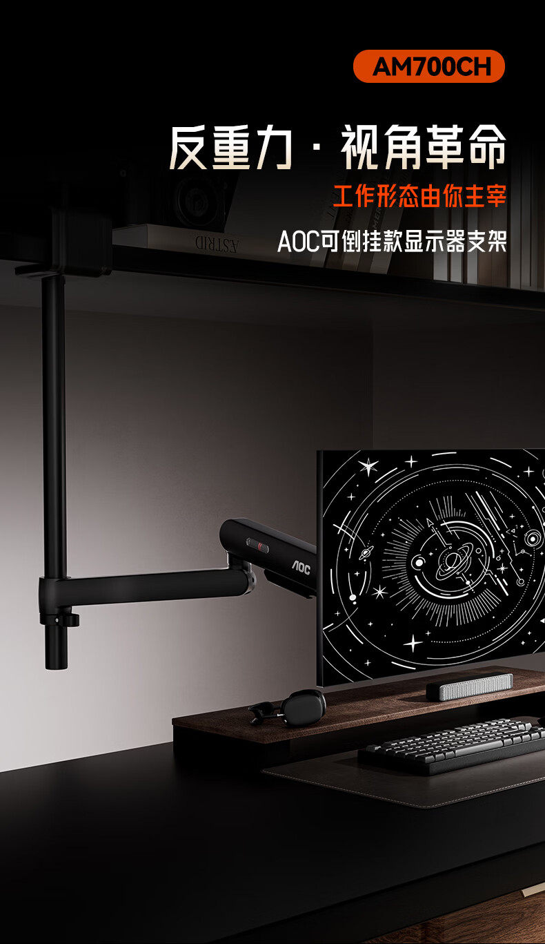 AOC显示器支架臂加长立柱机械臂可倒挂电脑增高架桌面机械臂电脑桌支架机械弹簧显示屏支架AM700CHB黑